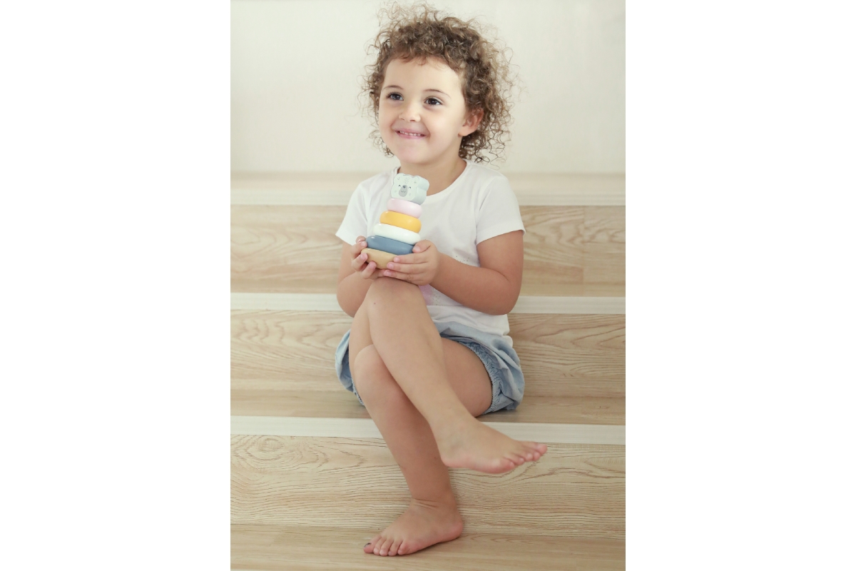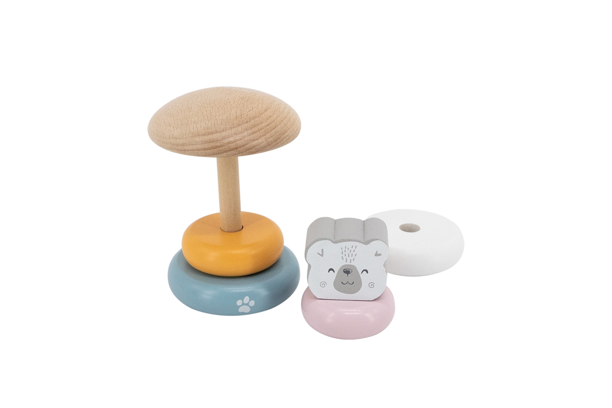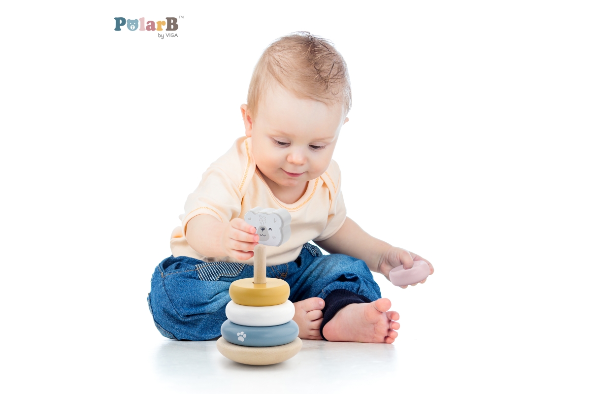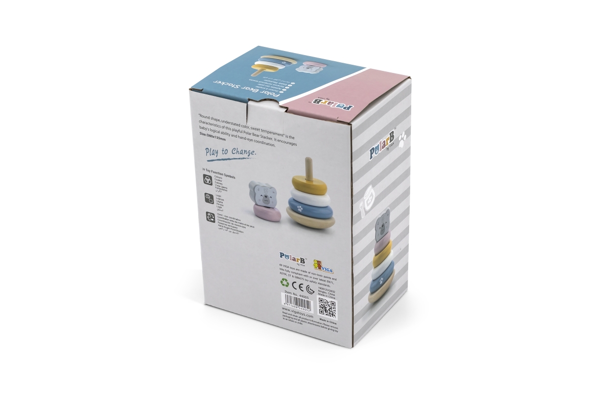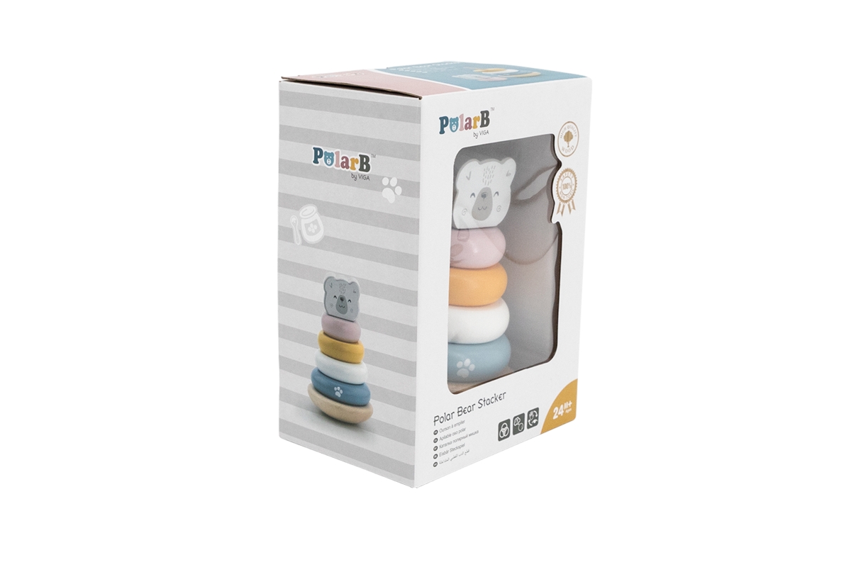 Dřevěné kroužky lední medvěd. Rozměry cca 8 x 8 x 13,5 cm. Rozměry balení cca 12,5 x 18 x 9 cm. Věk 24m+..