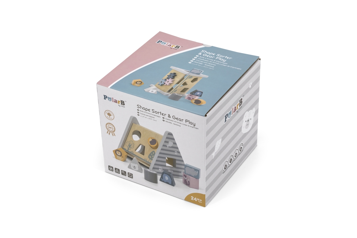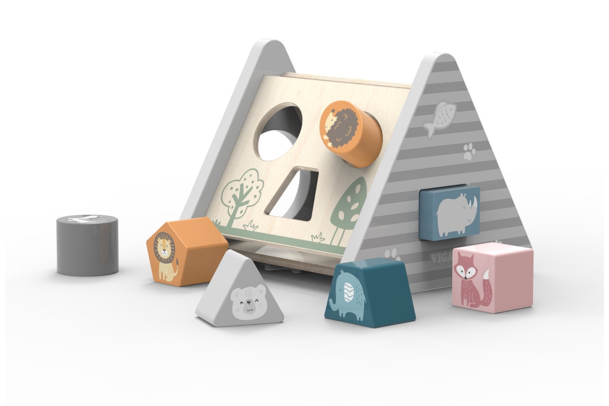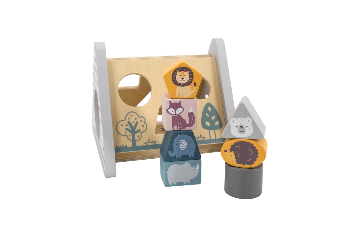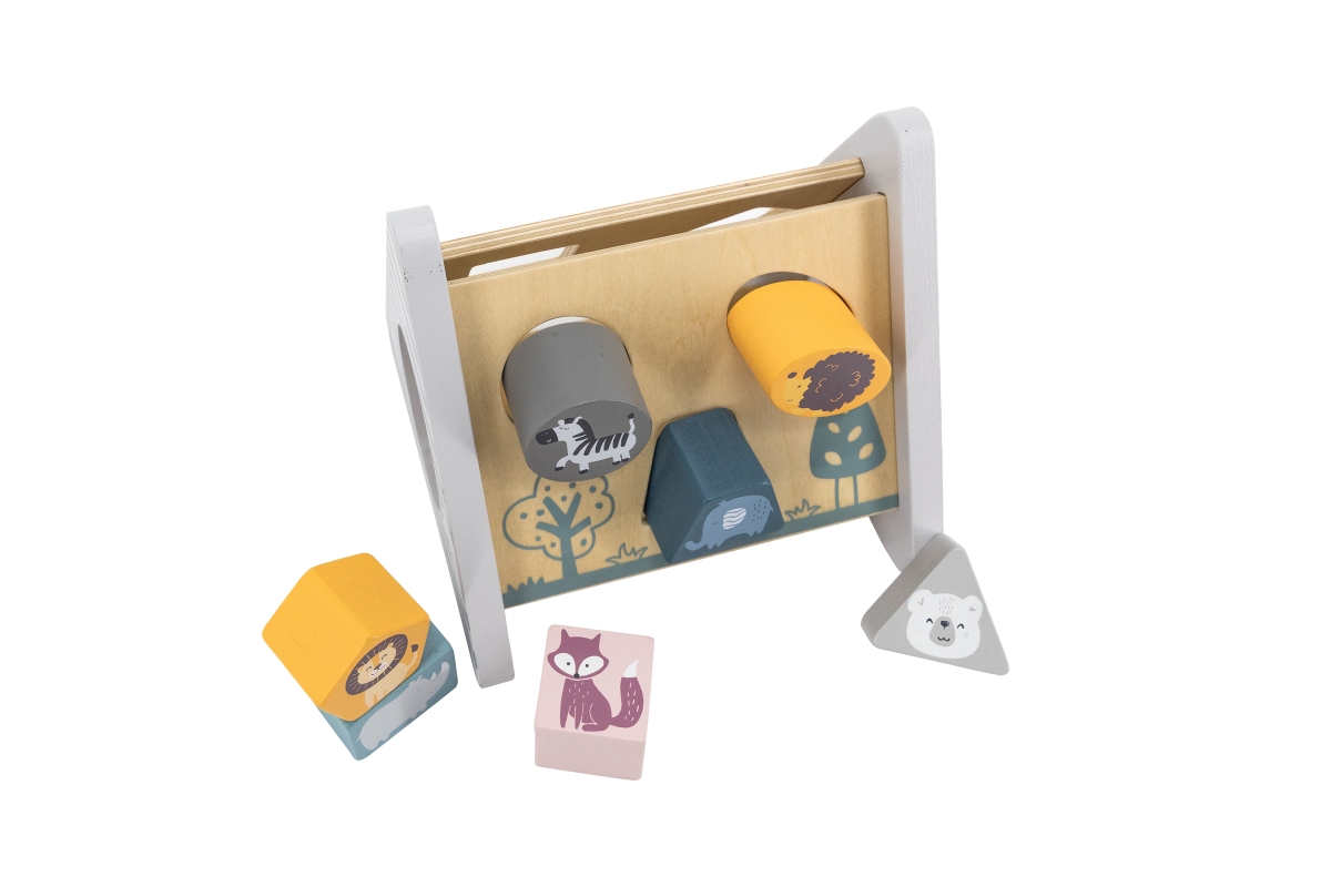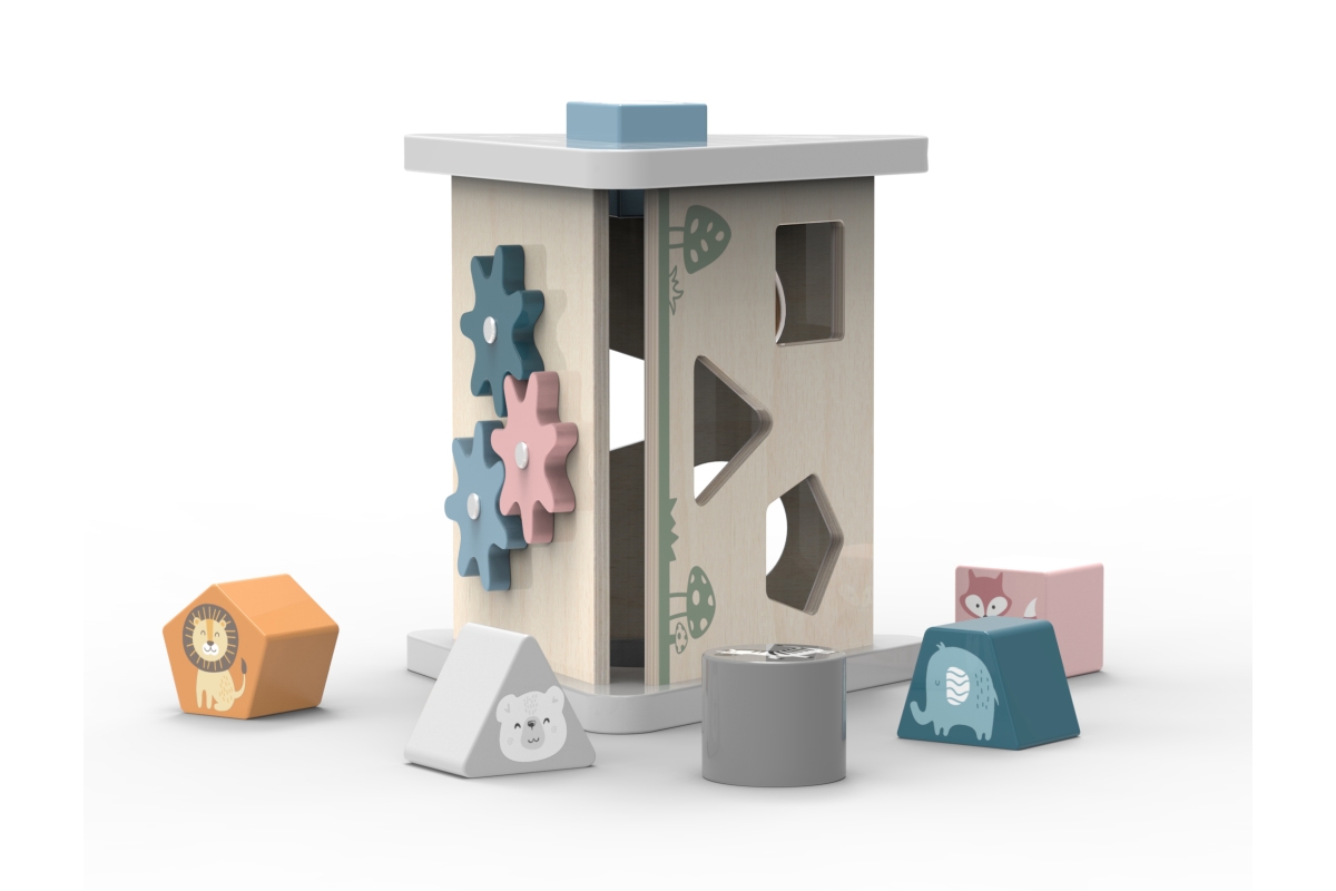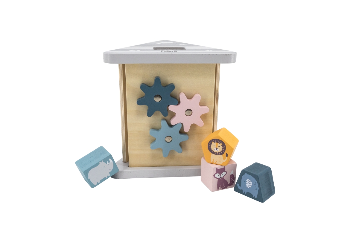 Dřevěná vkládačka s ozubenými kolečky. Balení obsahuje 7 různých tvarů na vkládání. Rozměry vkládačky cca 16,2 x 16 x 14 cm. Rozměry balení cca 17 x 1..