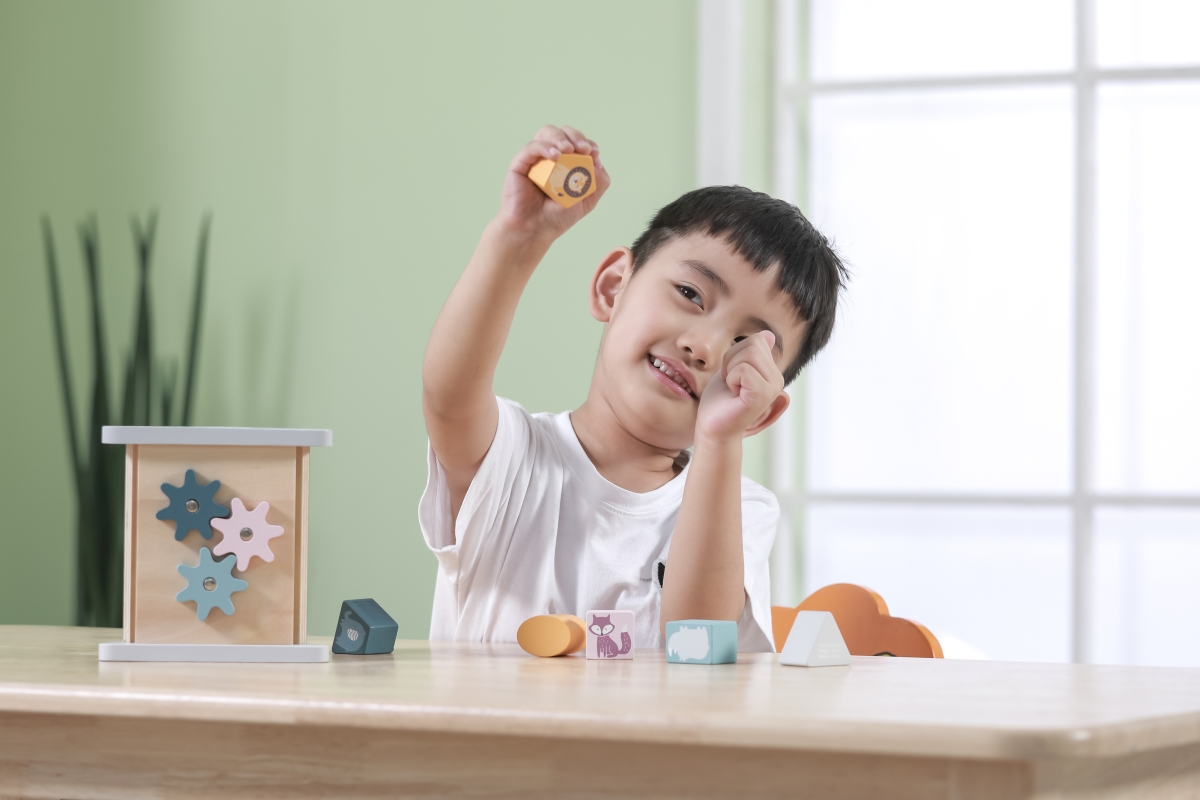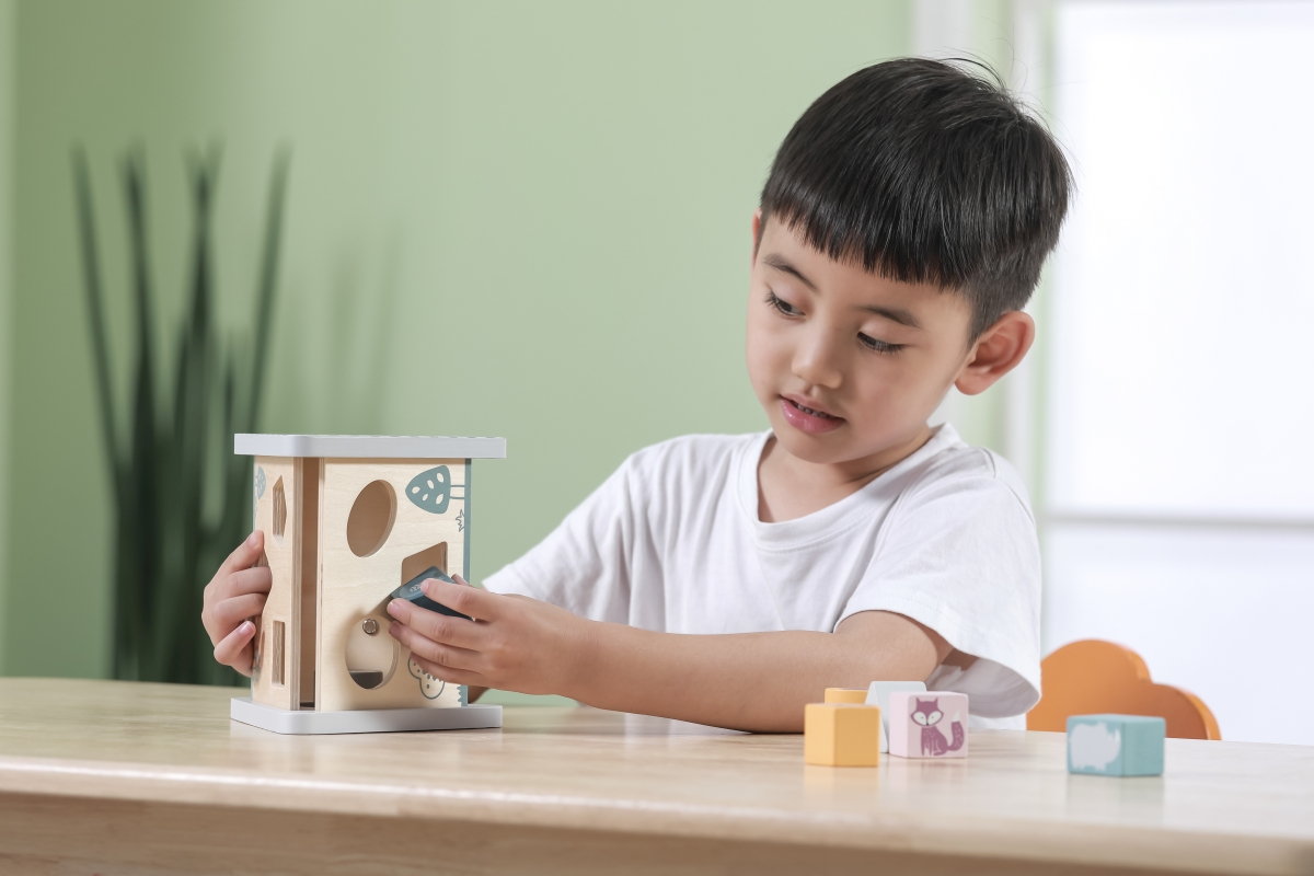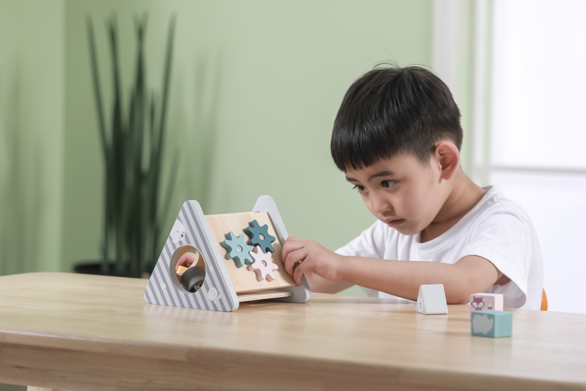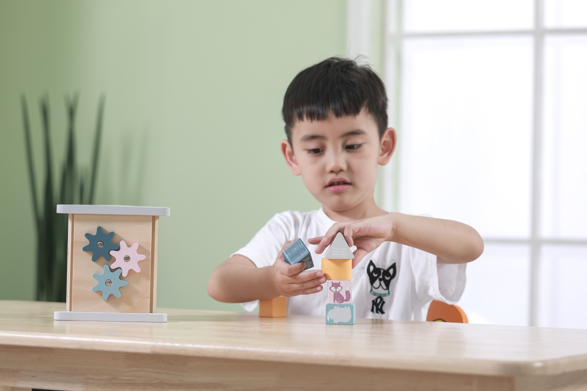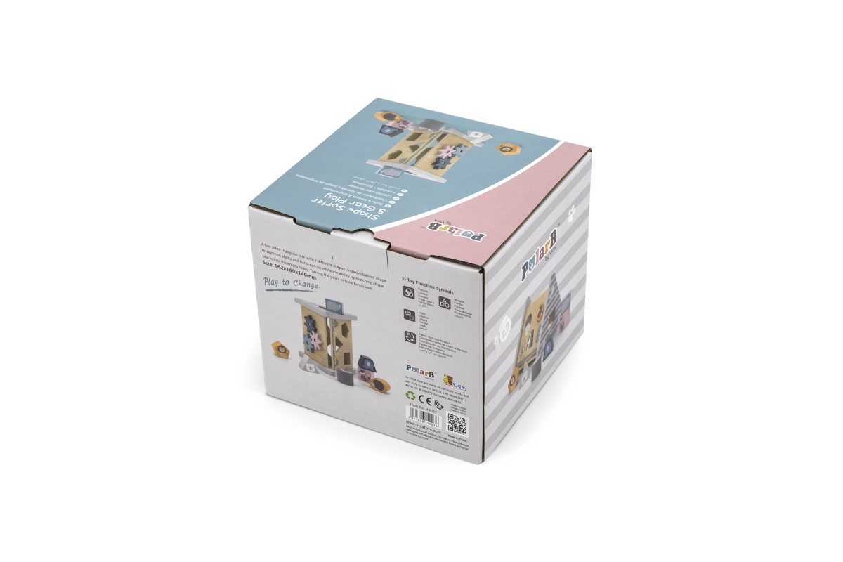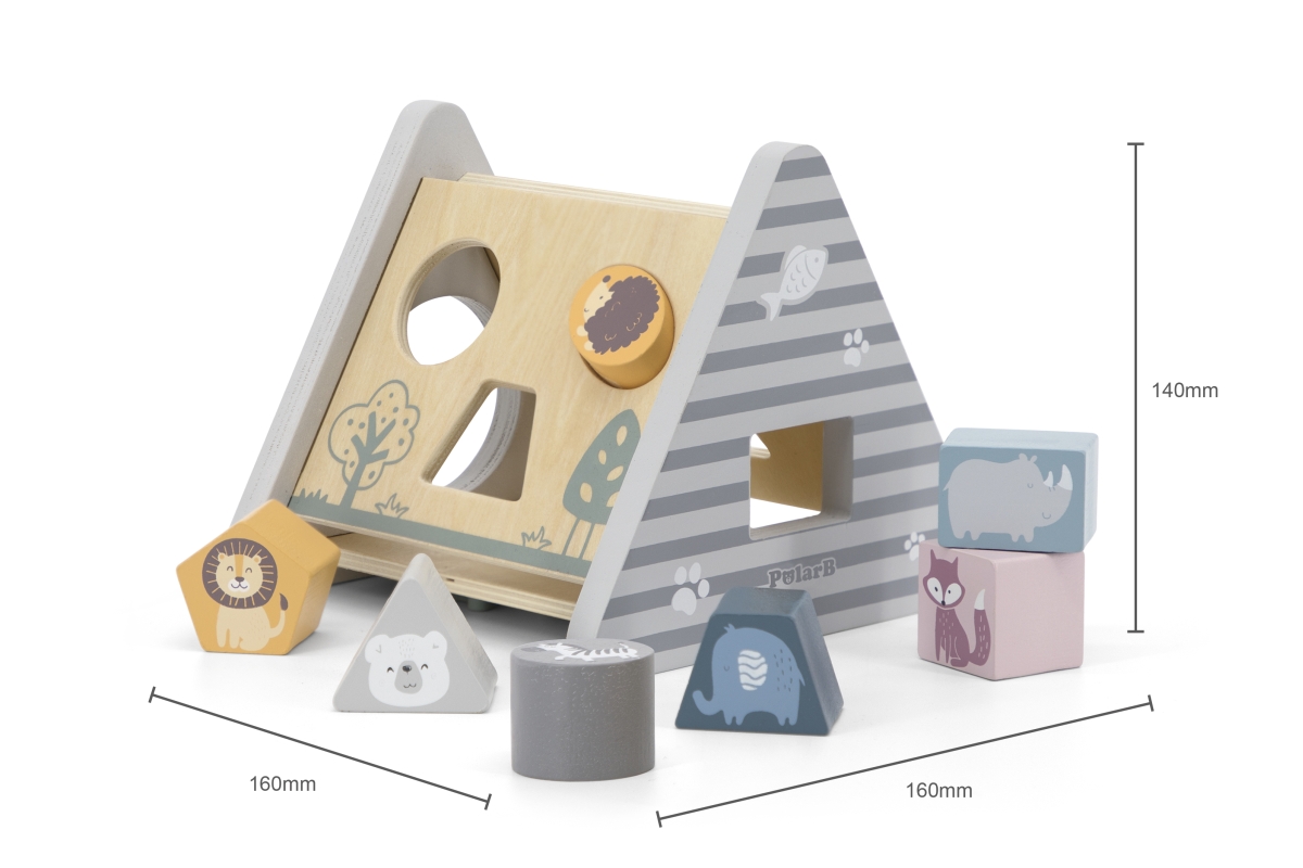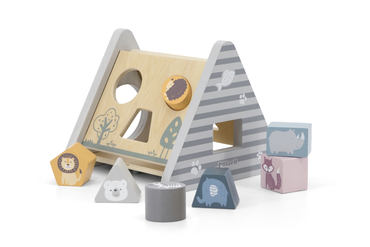 Dřevěná vkládačka s ozubenými kolečky. Balení obsahuje 7 různých tvarů na vkládání. Rozměry vkládačky cca 16,2 x 16 x 14 cm. Rozměry balení cca 17 x 1..