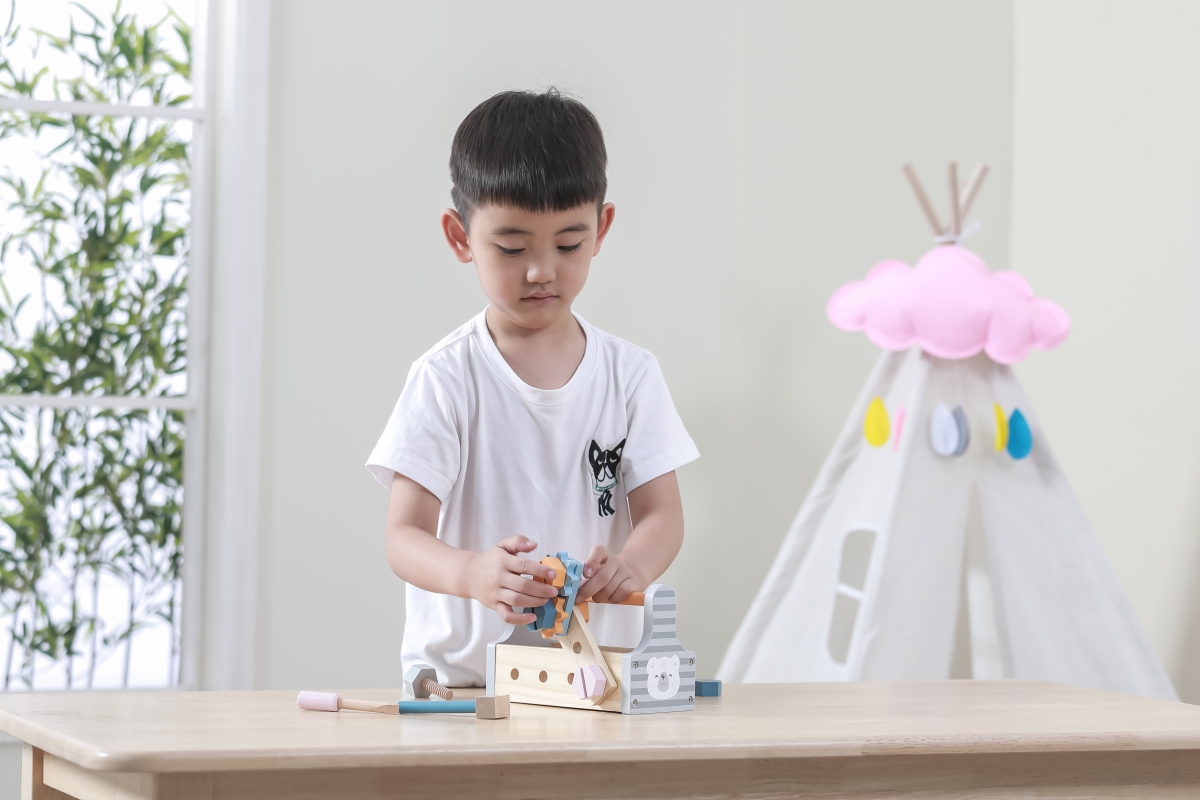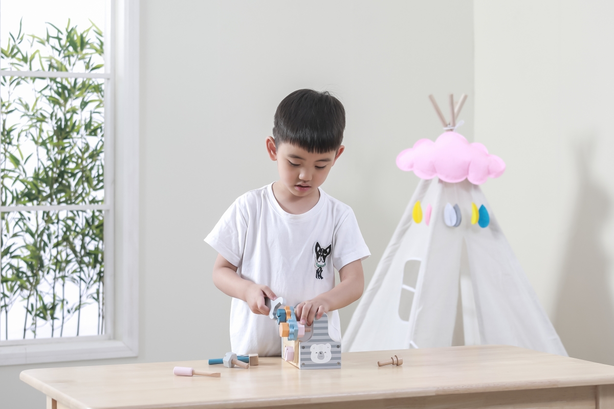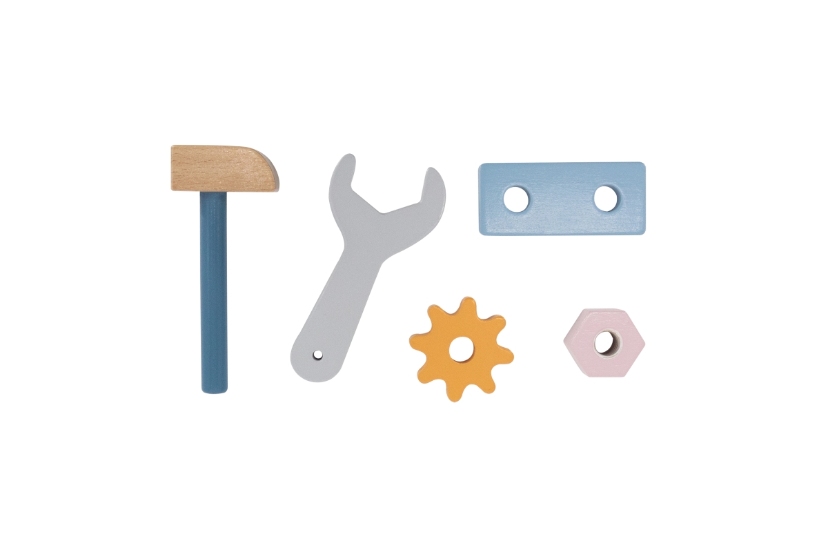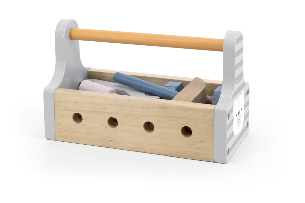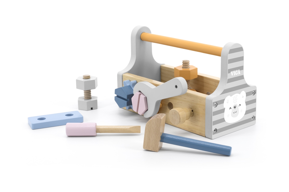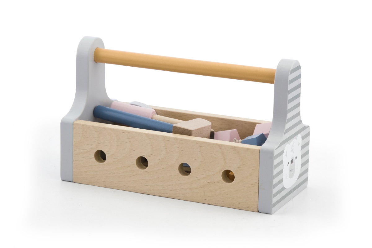 Dřevěná basa s nářadím. Obsahuje šroubovák, kladívko, klíč, šrouby, matice a destičky pro šroubování. Rozměry přepravky cca 20 x 12,5 x 9 cm. Rozměry ..