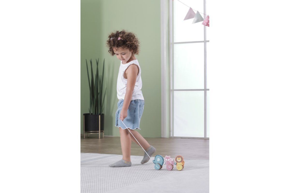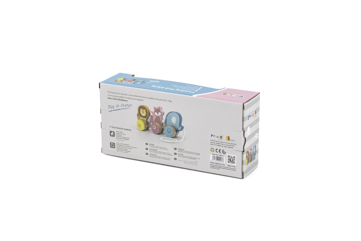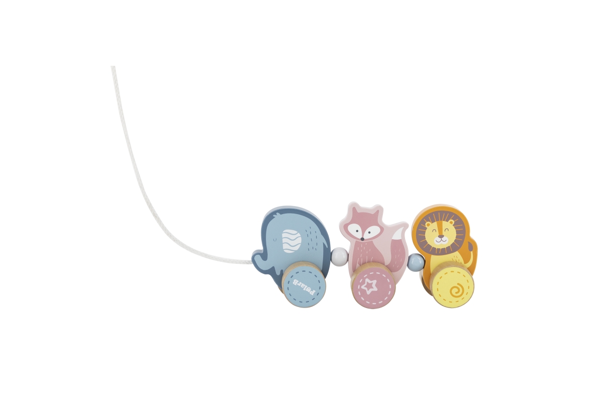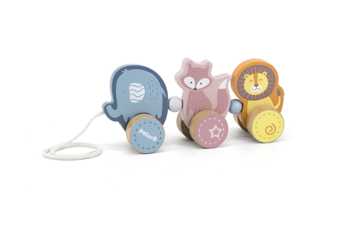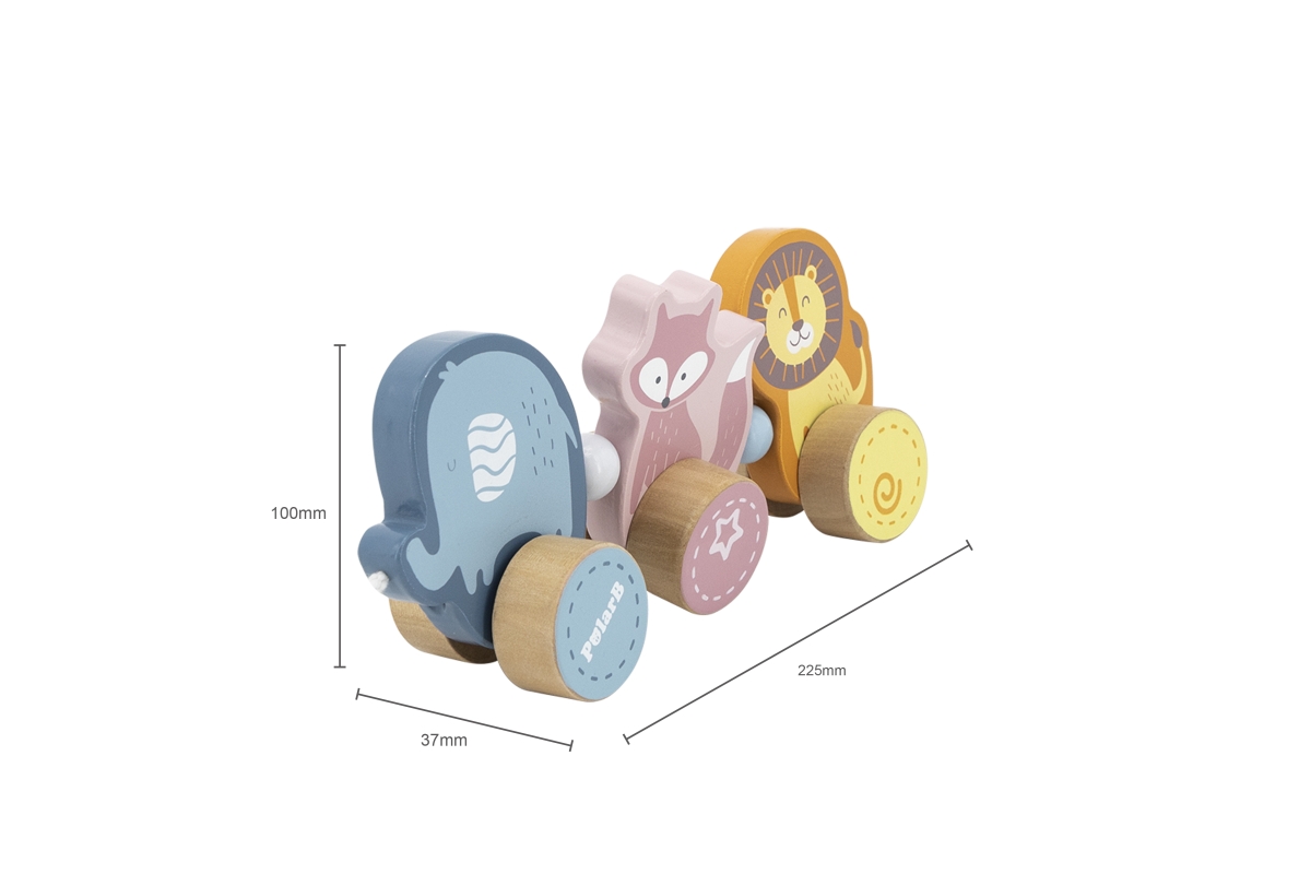 Dřevěná tahačka se zvířátky. Rozměry cca 22,5 x 10 x 6 cm. Rozměry balení cca 27 x 13 x 7 cm. Věk 18m+..