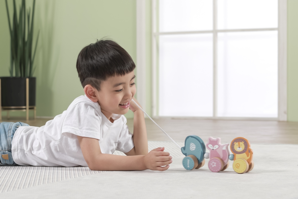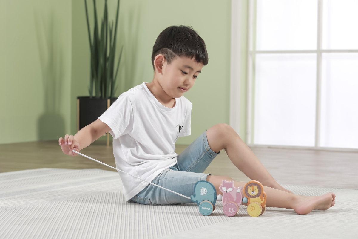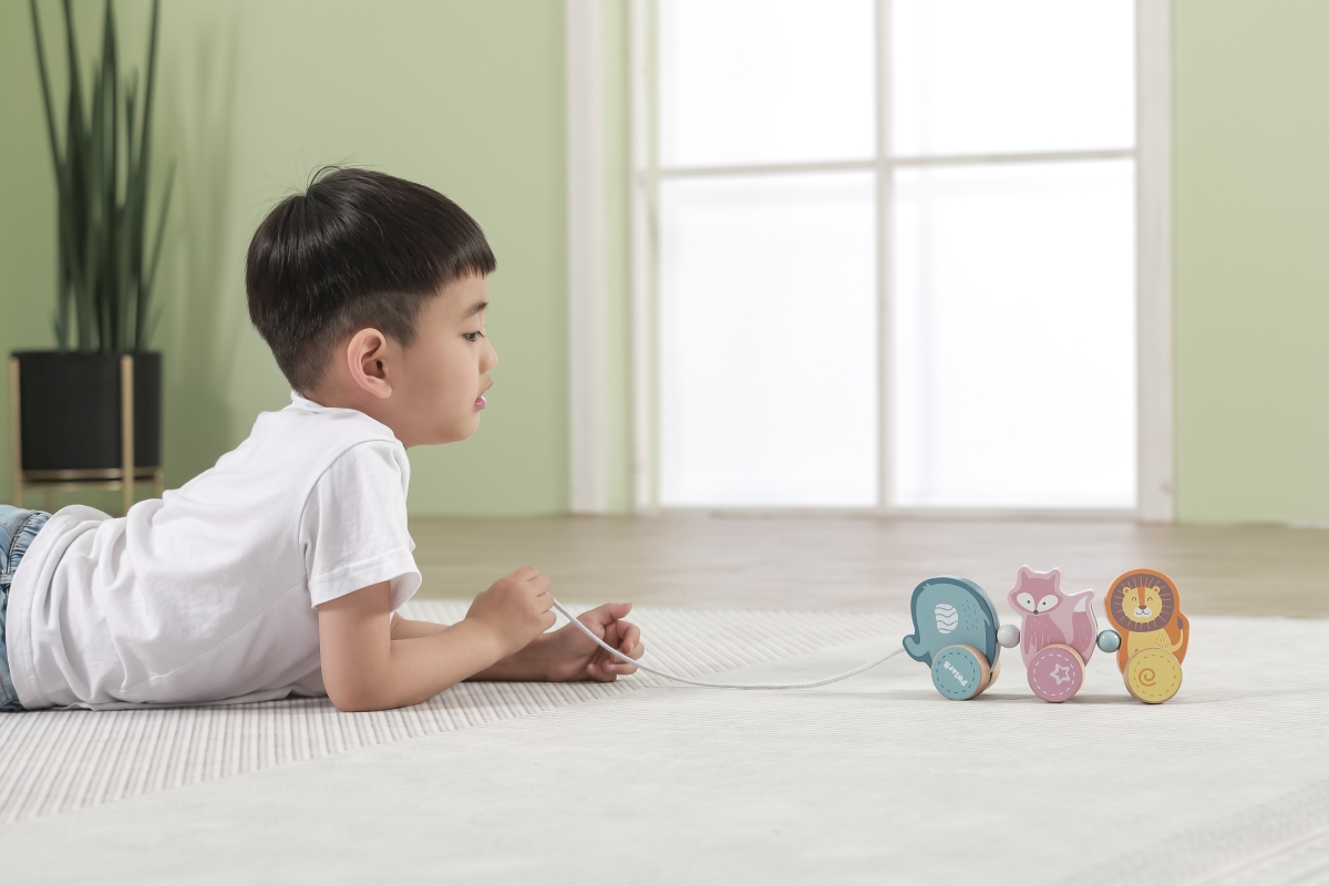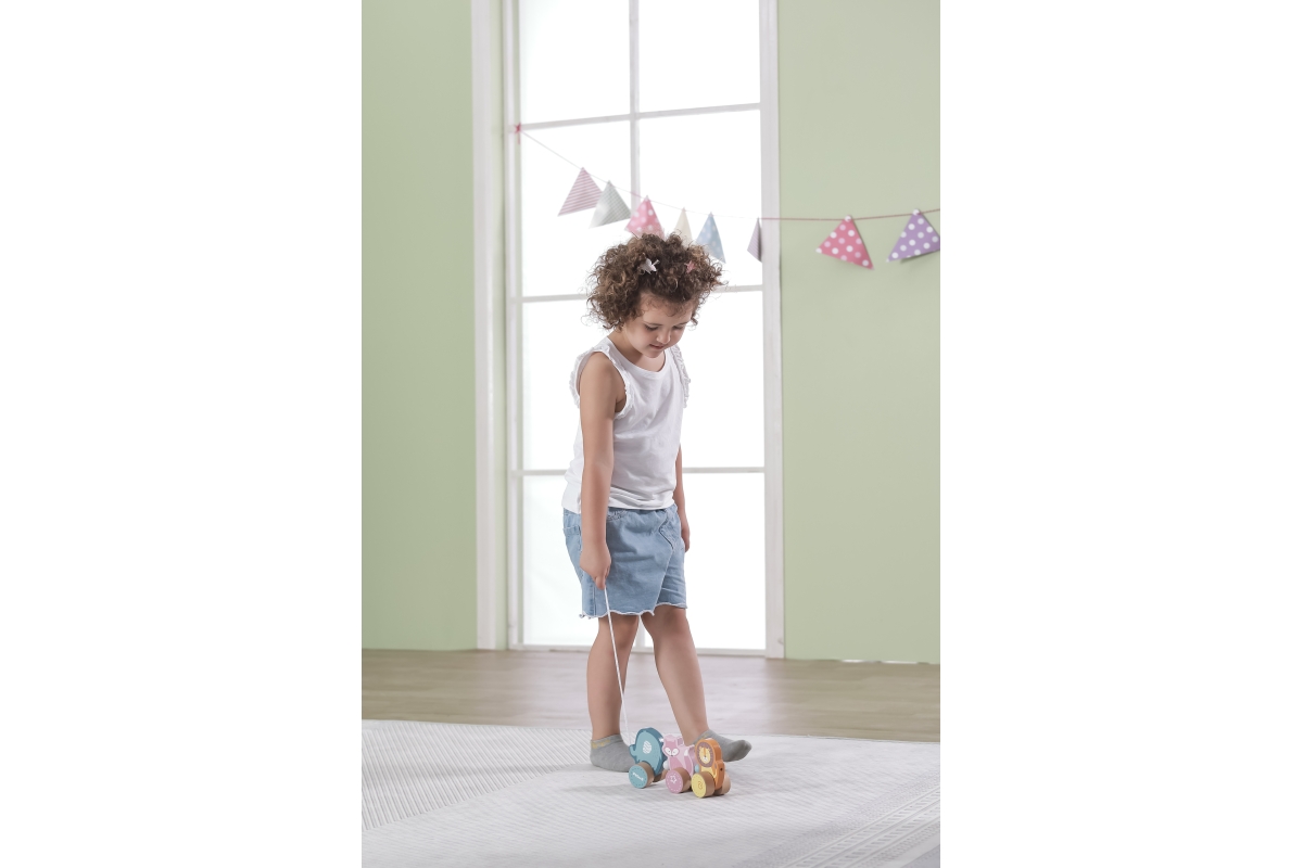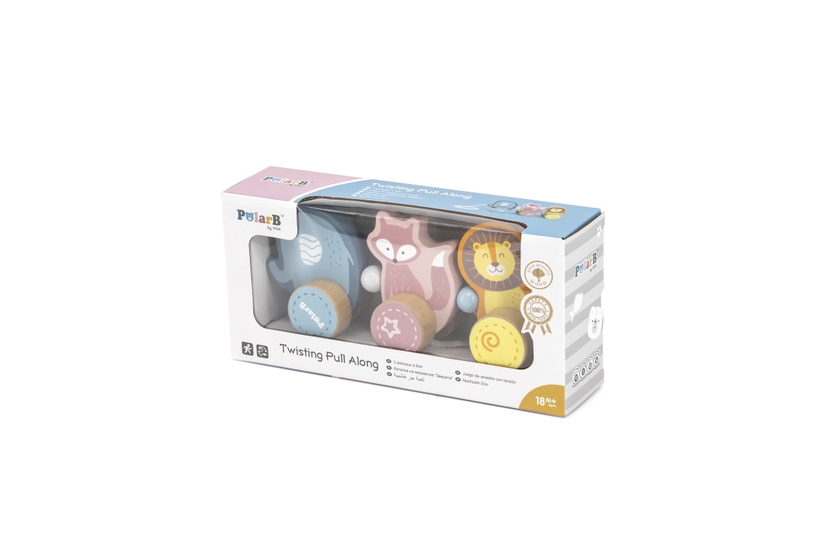Dřevěná tahačka se zvířátky. Rozměry cca 22,5 x 10 x 6 cm. Rozměry balení cca 27 x 13 x 7 cm. Věk 18m+..