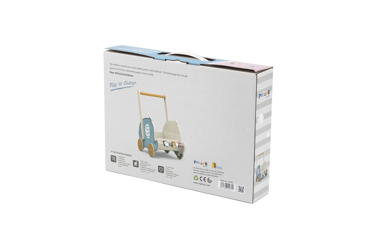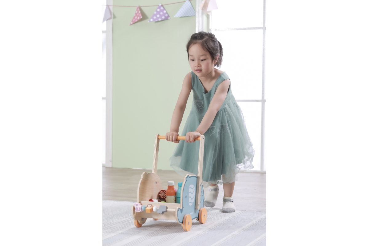 Dřevěné chodítko s herními prvky pro rozvíjení dětské chůze a motoriky. Rozměry cca 43,5 x 25,5 x 35 cm. Rozměry balení cca 36,5 x 26,5 x 7 cm. Věk 12..