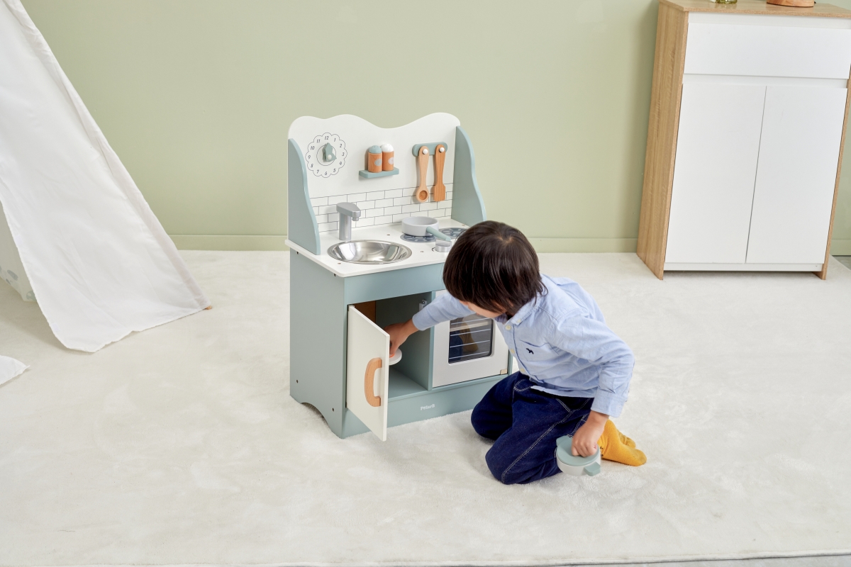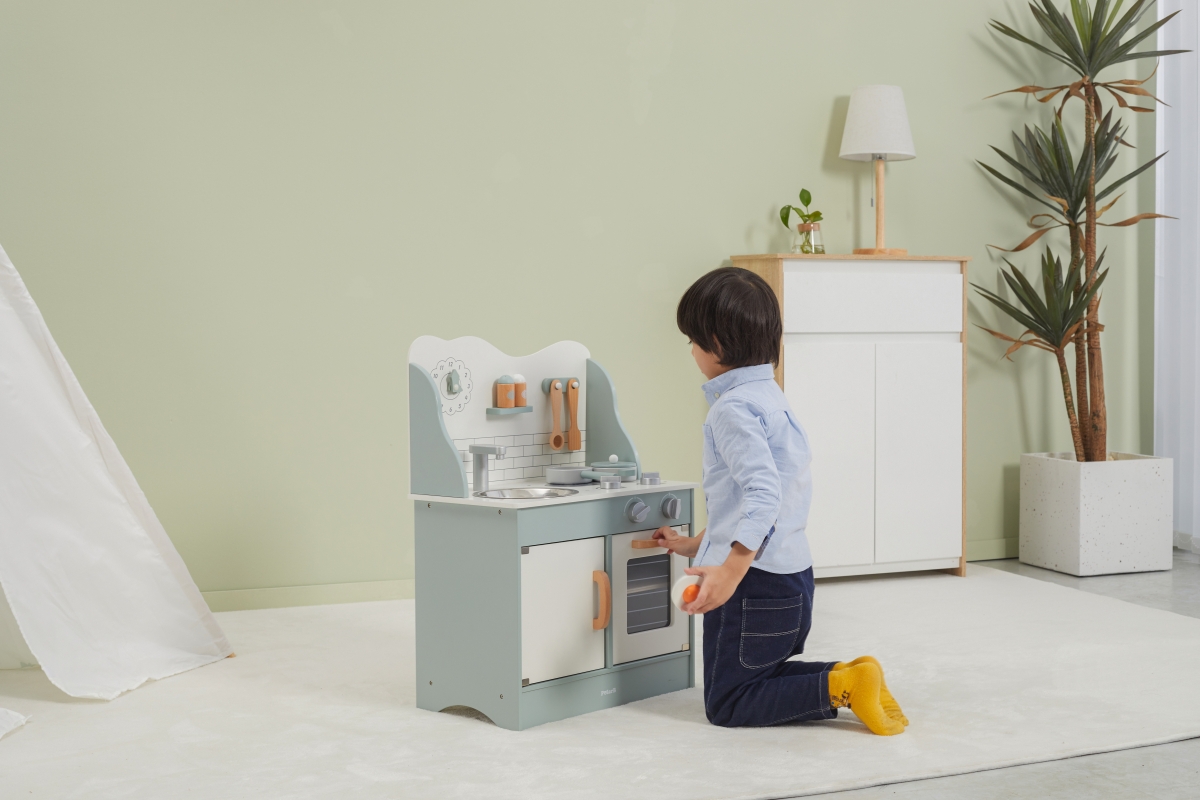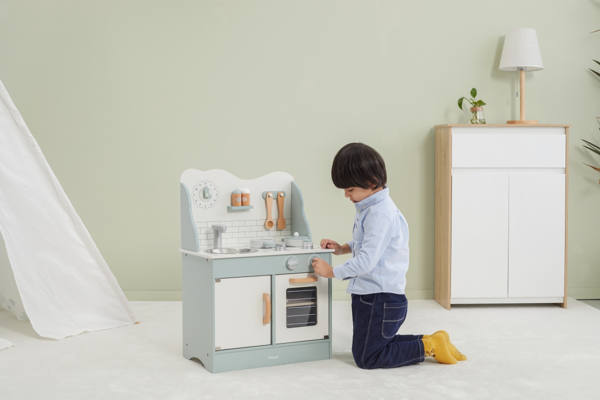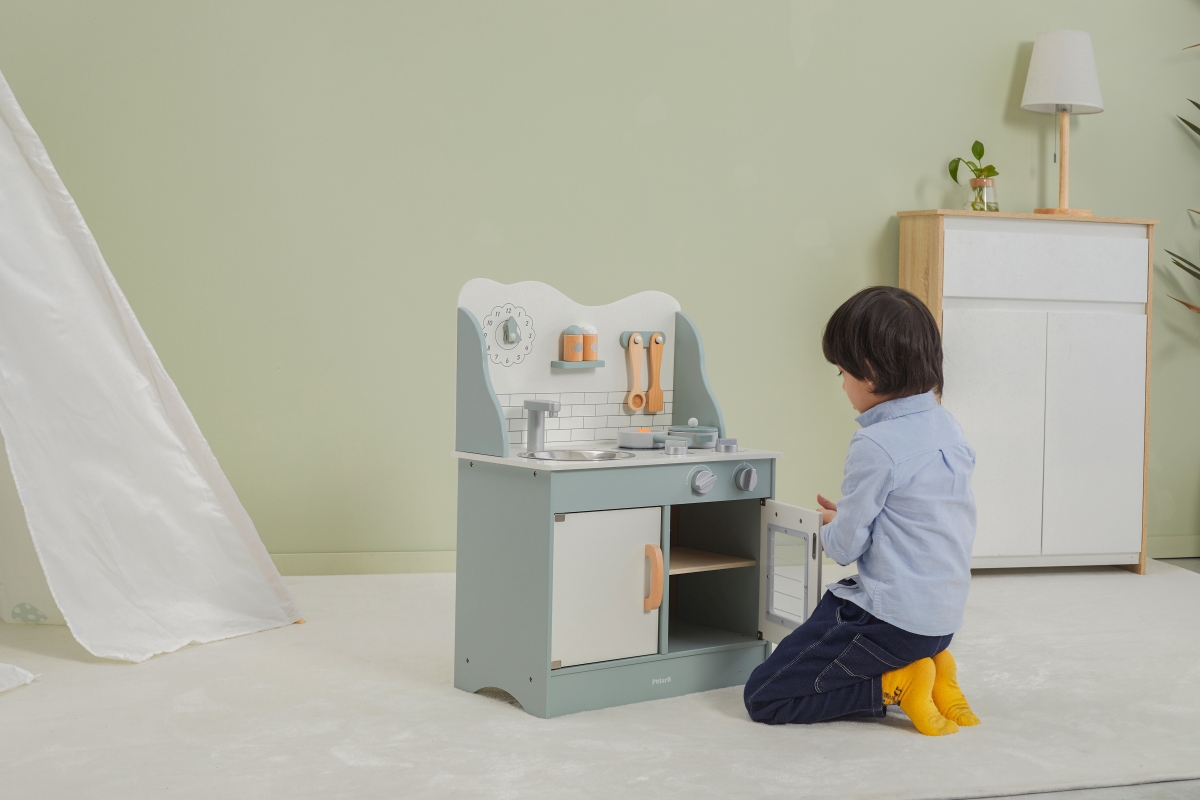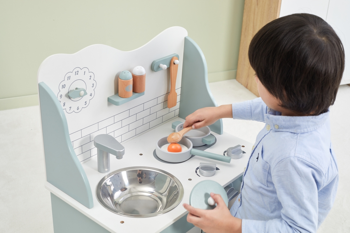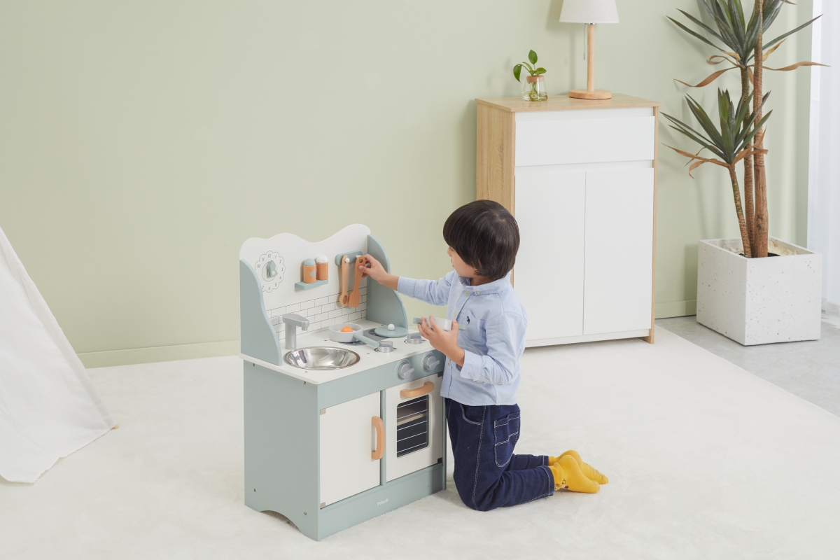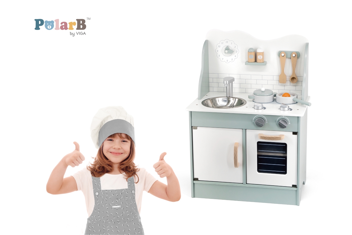 Tato velmi milá dětská kuchyňka v pastelově-zelené barvě jistě potěší všechny malé „kuchaře“. Společná příprava jídel se pro děti stane zábavnou, přičemž se naučí mnohé věci ze světa dospělých zábavnou formou hry. Kuchyňka pro děti je vyrobena ze dřeva, má zabudovaný dřez, pečící troubu a sporák s varnými plotnami. Rozměr balení cca 52,5 x 35,5 x 16,5 cm. Věk 3+