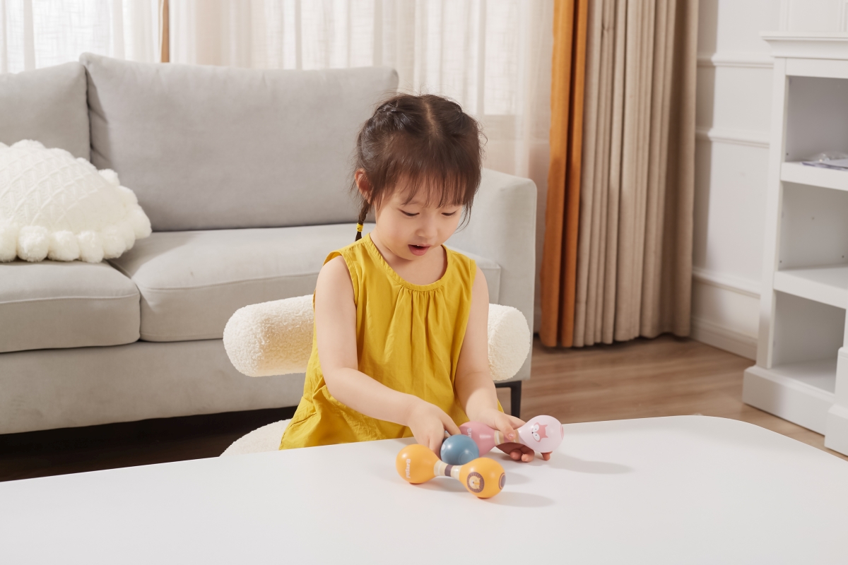 Tyto nádherně vyrobené dvojité dřevěné rumbakoule se snadno uchopují, takže děti mohou cvičit uchopování a třesení a poslouchat nádherný zvuk rumbakou..