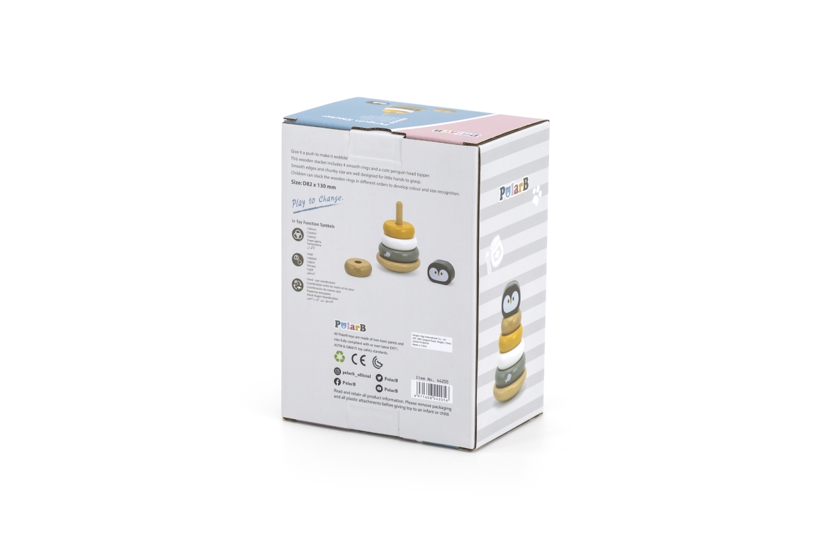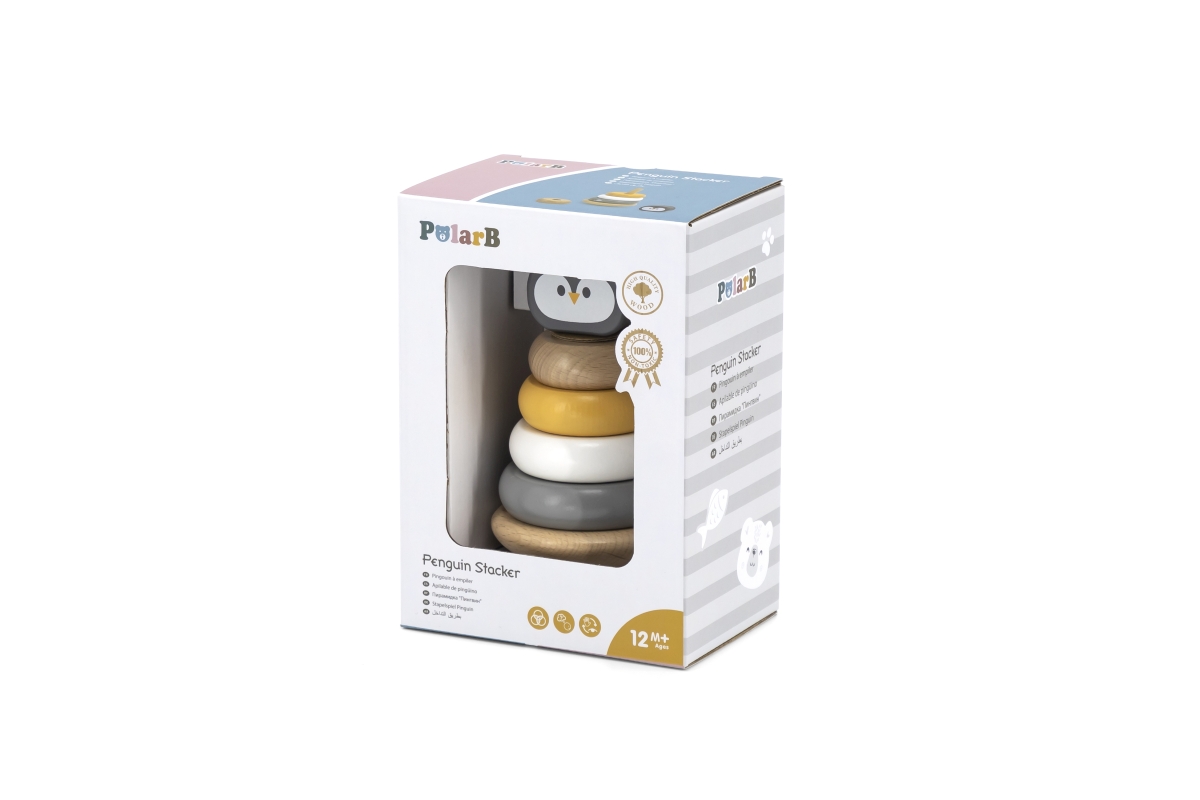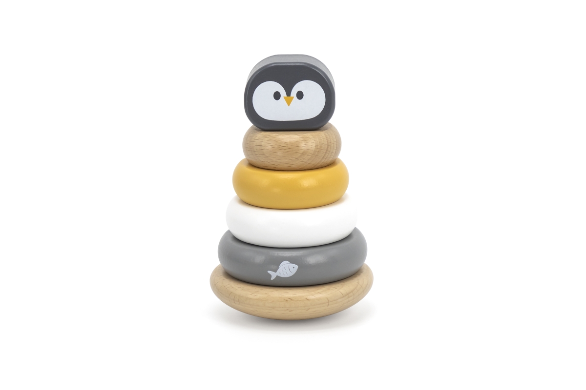 Dřevěná skládací pyramida tučňák o rozměru cca 12 x 7,5 cm. Rozměry balení cca 13 x 18 x 9 cm. Věk 12 měs +..