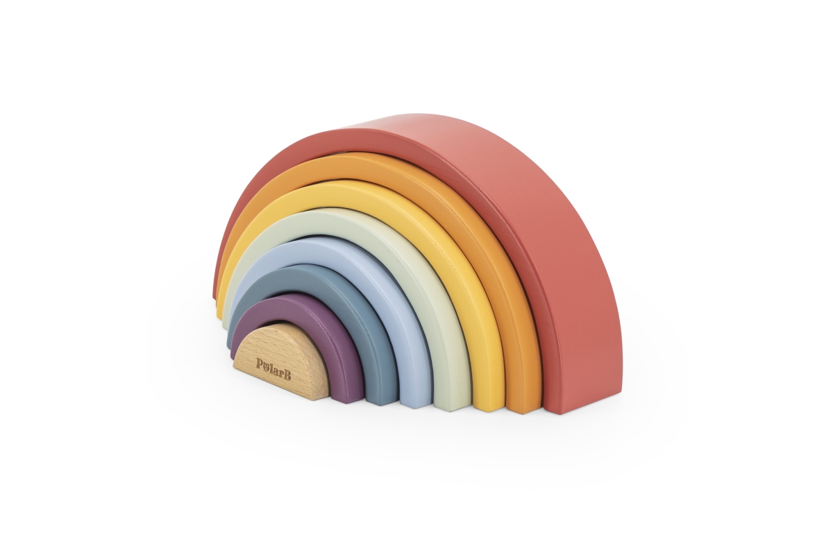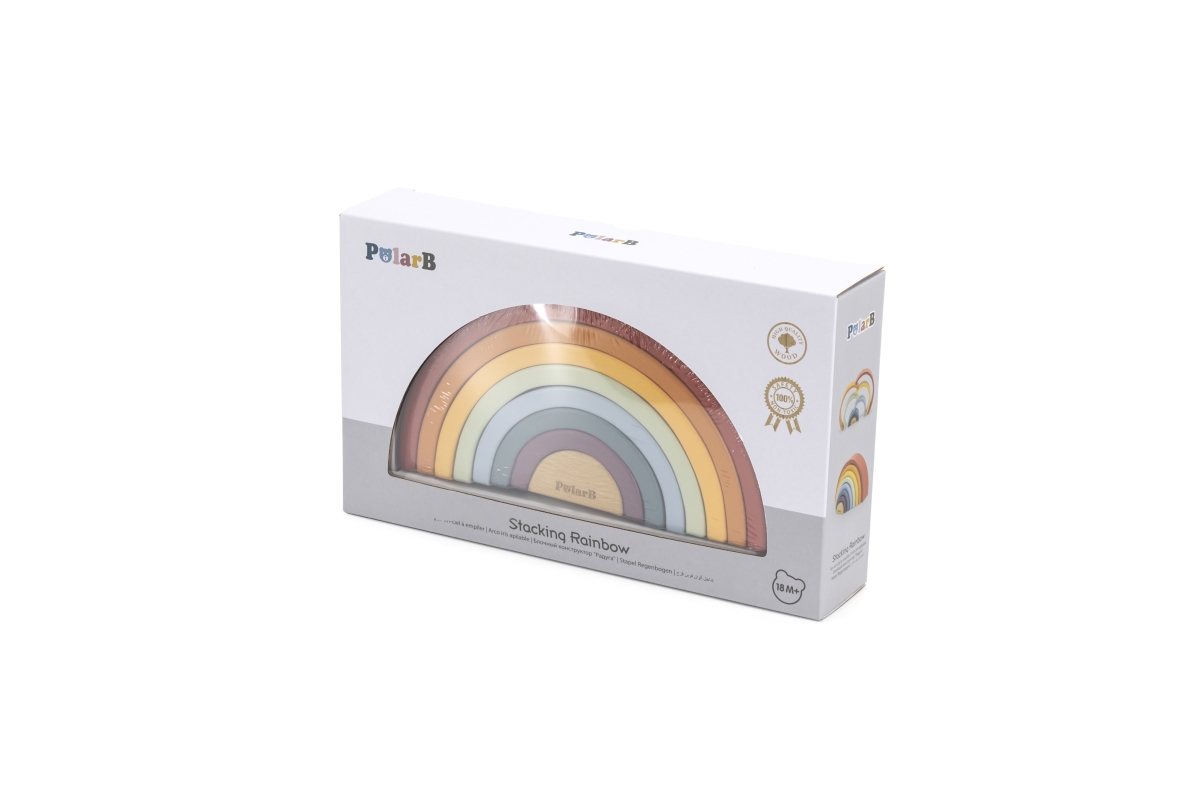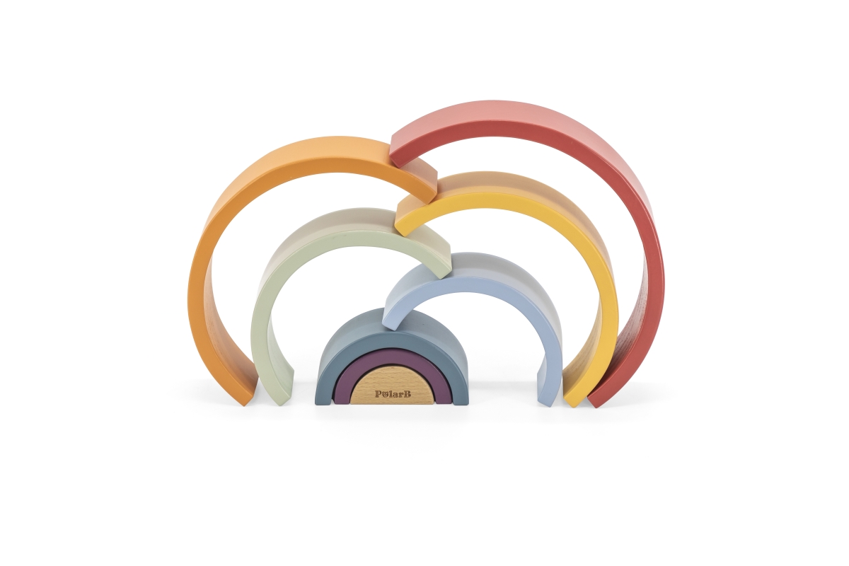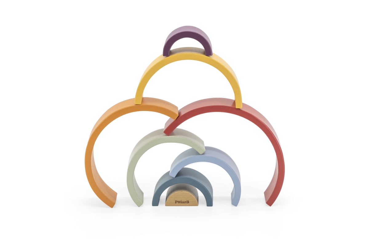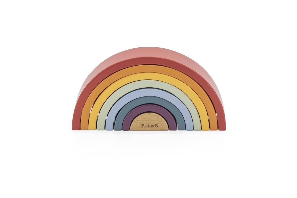 Dřevěná skládačka s motivem duhy. Rozměry 22,4x5x11,2 cm. Rozměry balení cca 28,5x17x6 cm. Věk 18m+..