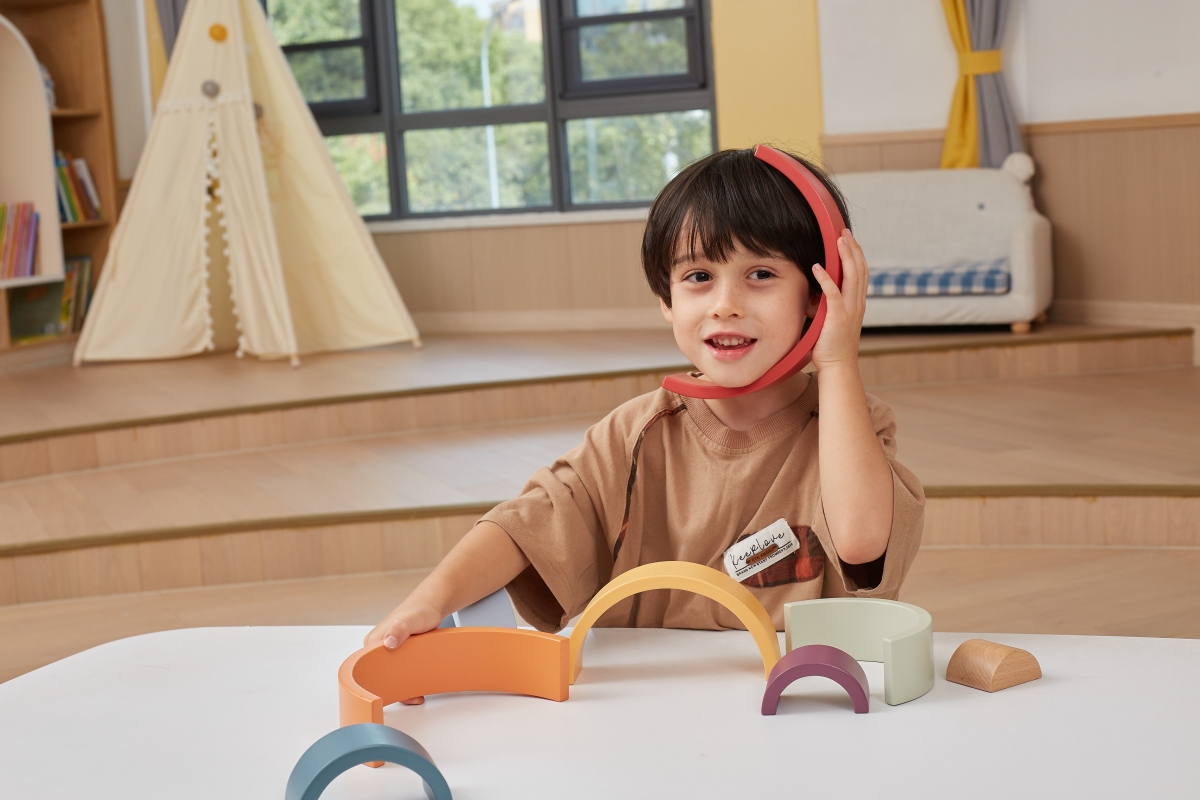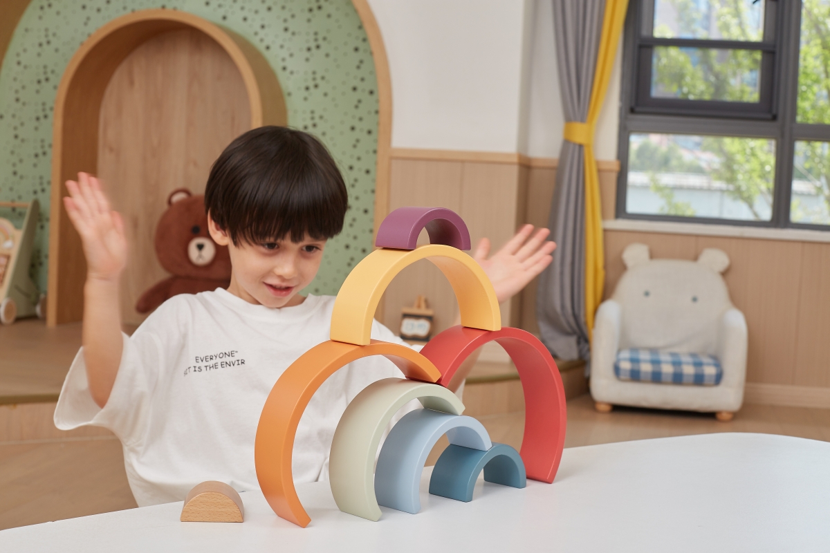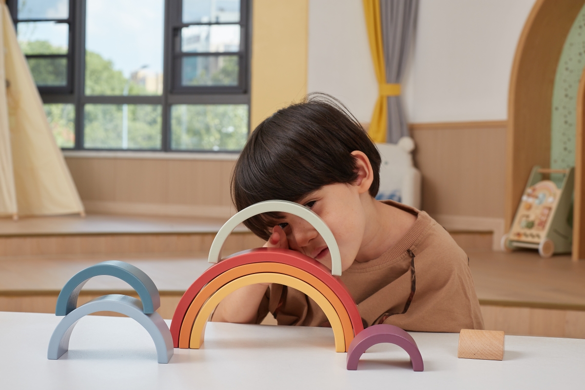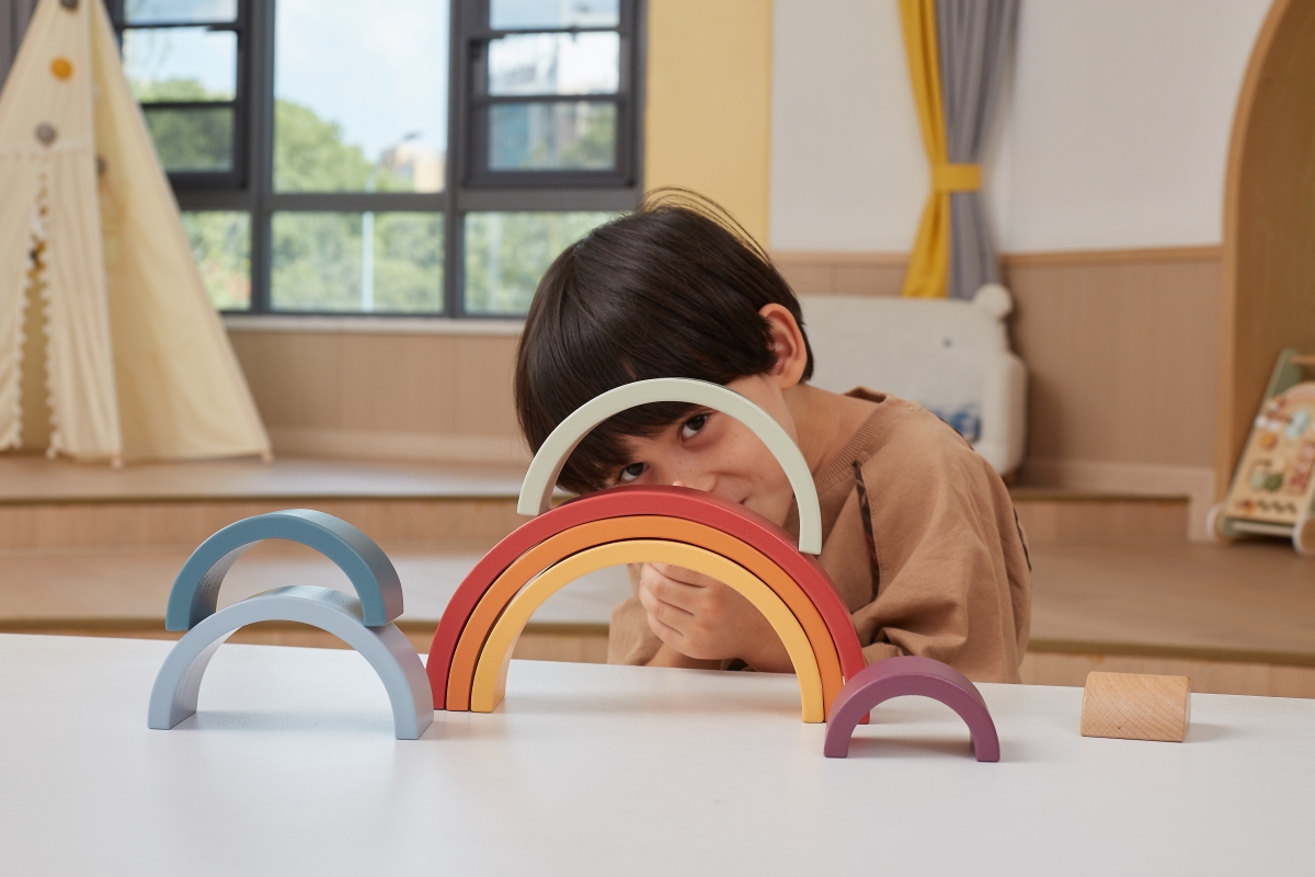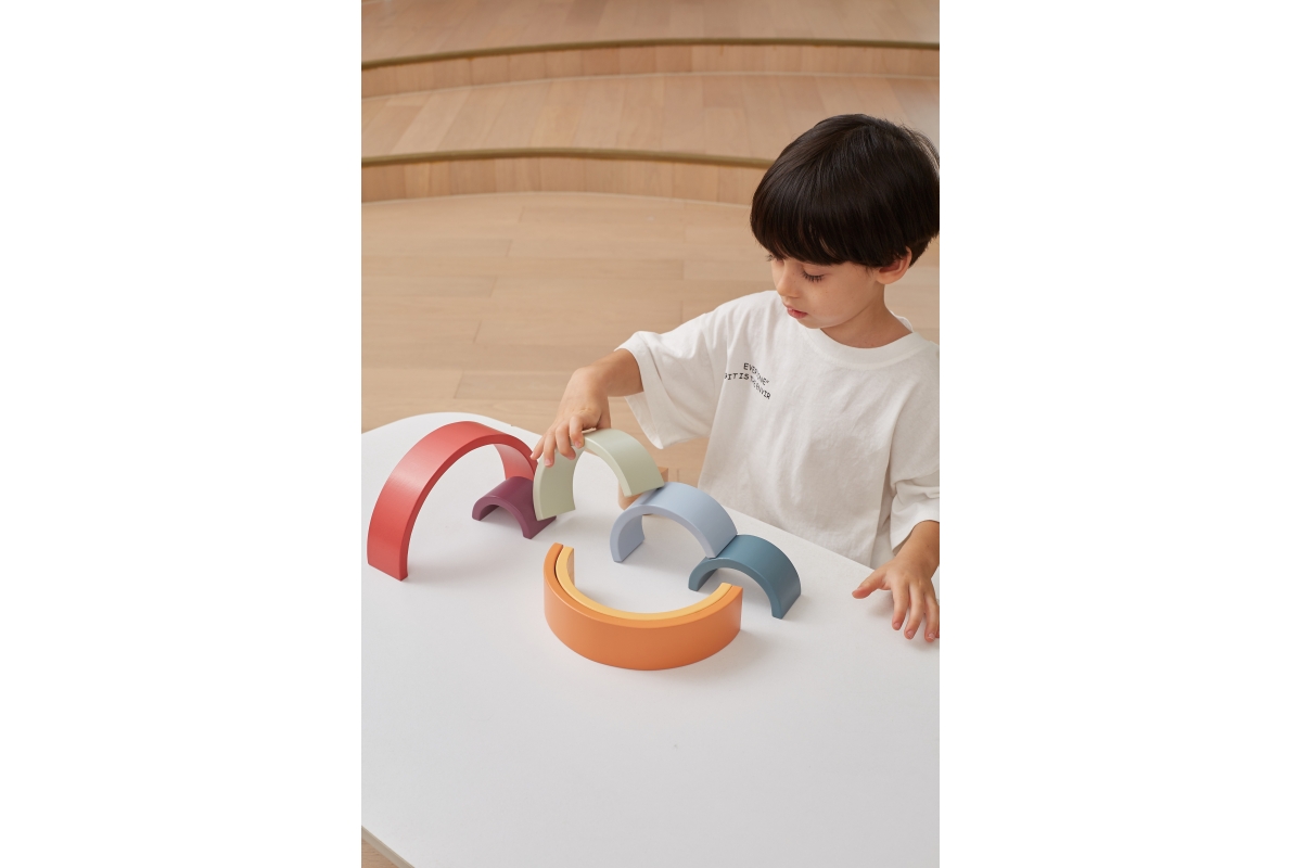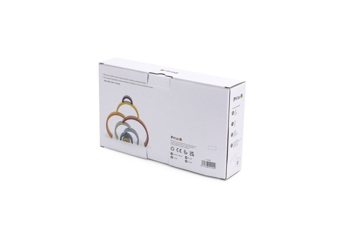 Dřevěná skládačka s motivem duhy. Rozměry 22,4x5x11,2 cm. Rozměry balení cca 28,5x17x6 cm. Věk 18m+..