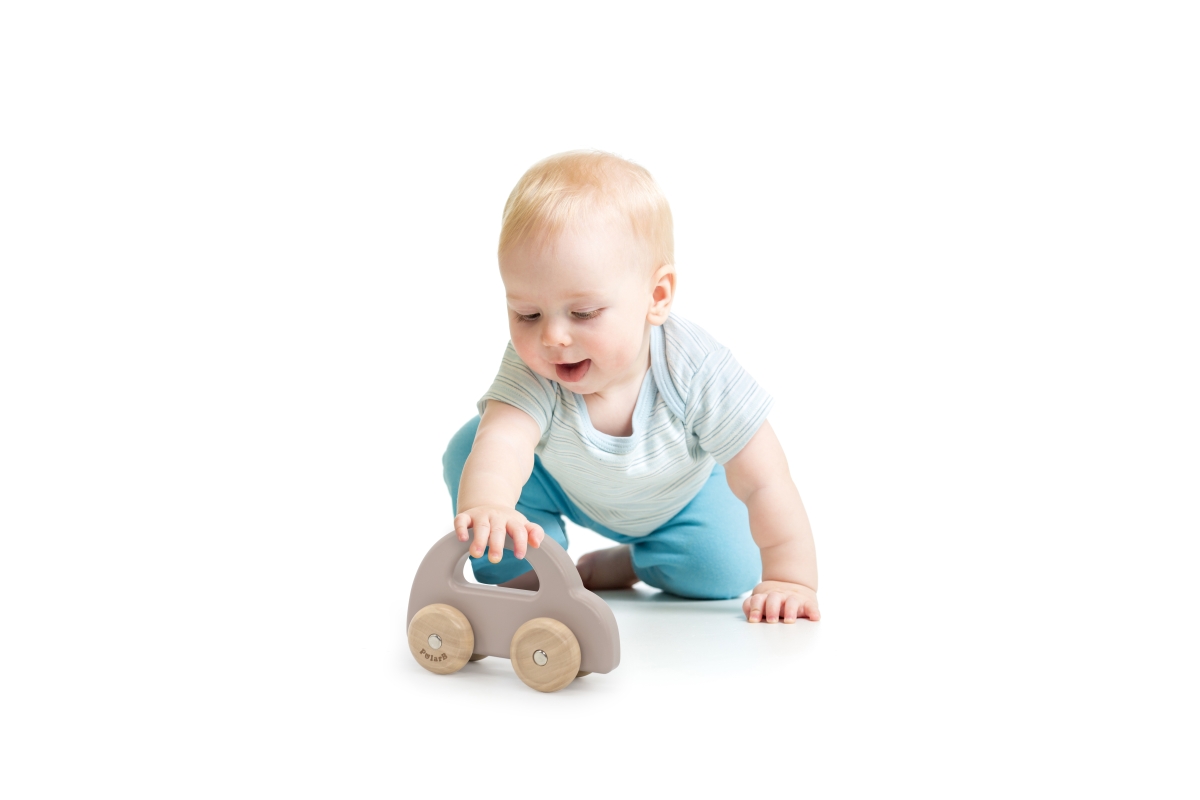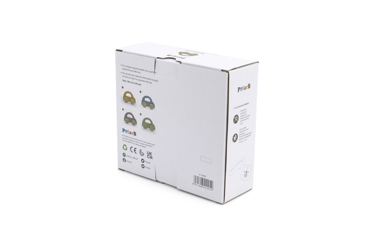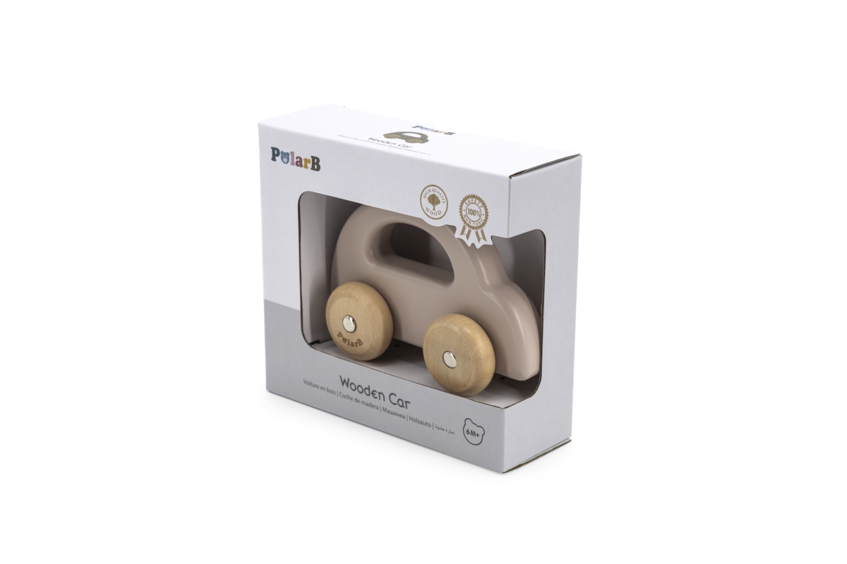 Dřevěné autíčko s pohybujícími se koly pro nejmenší děti. Rozměry 14x5,2x9,5 cm. Rozměry balení cca 17x15,5x6 cm. Věk 6m+..