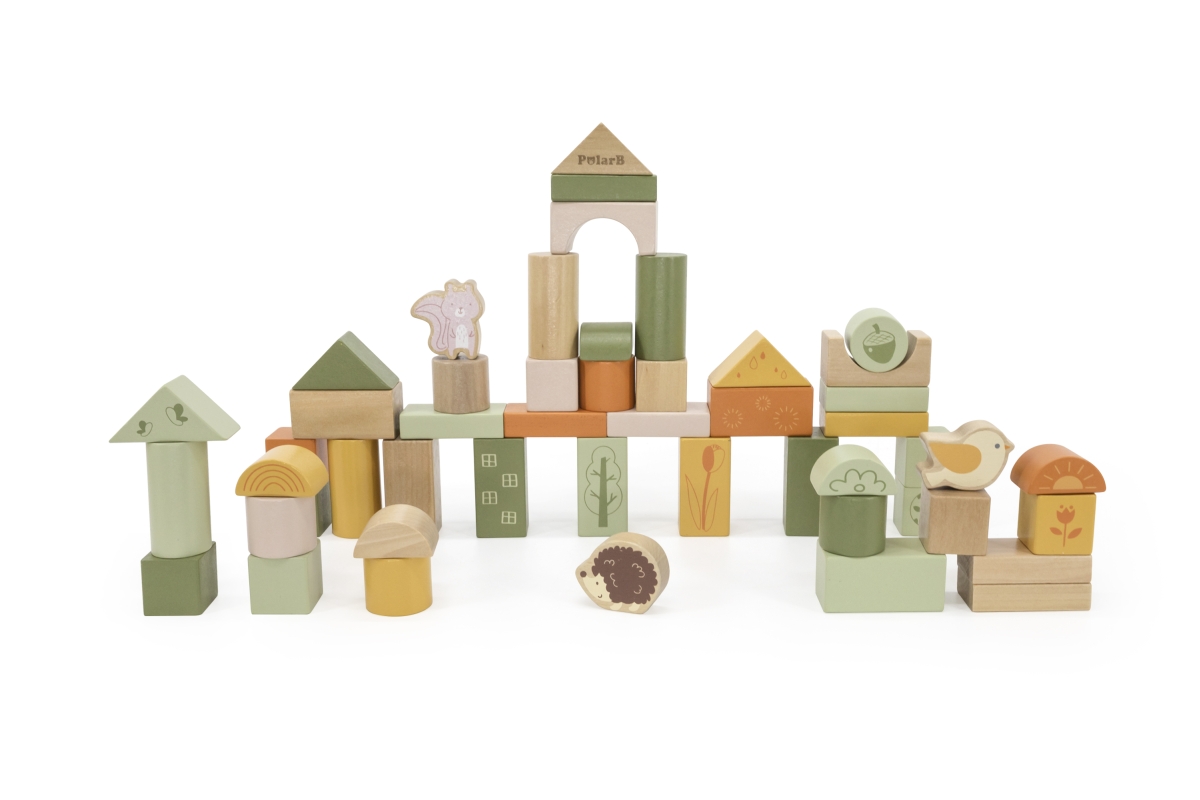 Dřevěná stavebnice se zvířátky. Balení obsahuje 50 dílků různých tvarů. Rozměry balení cca 23x14x6,5 cm. Věk 2+..