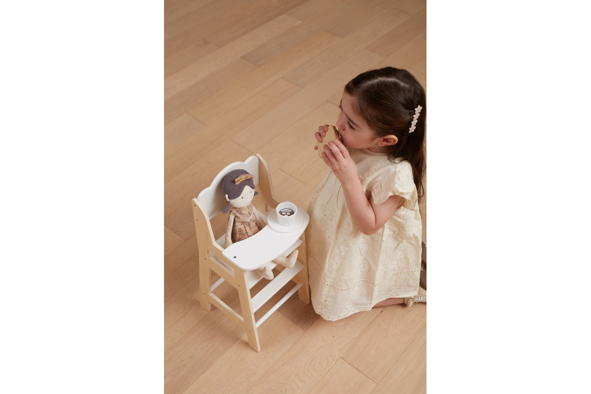 Dřevěná židlička pro panenku do velikosti 38 cm. Rozměry balení cca 25x49x7 cm. Velikost židličky 24x24x51,5 cm. Věk 3+..
