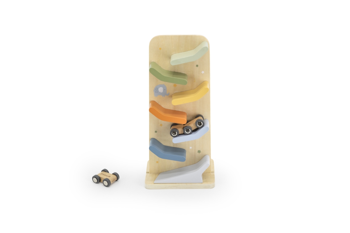 Dřevěné aktivity pro děti 18-24 měsíců. Vše pro rozvoj paměti a jemné motoriky. Sada obsahuje klouzačku s auty, xylofon, šroubky s tvary, knížku, provlékačku a vkládačku s tvary. Rozměry balení 35x29,5x9,5 cm. Věk 18-24m