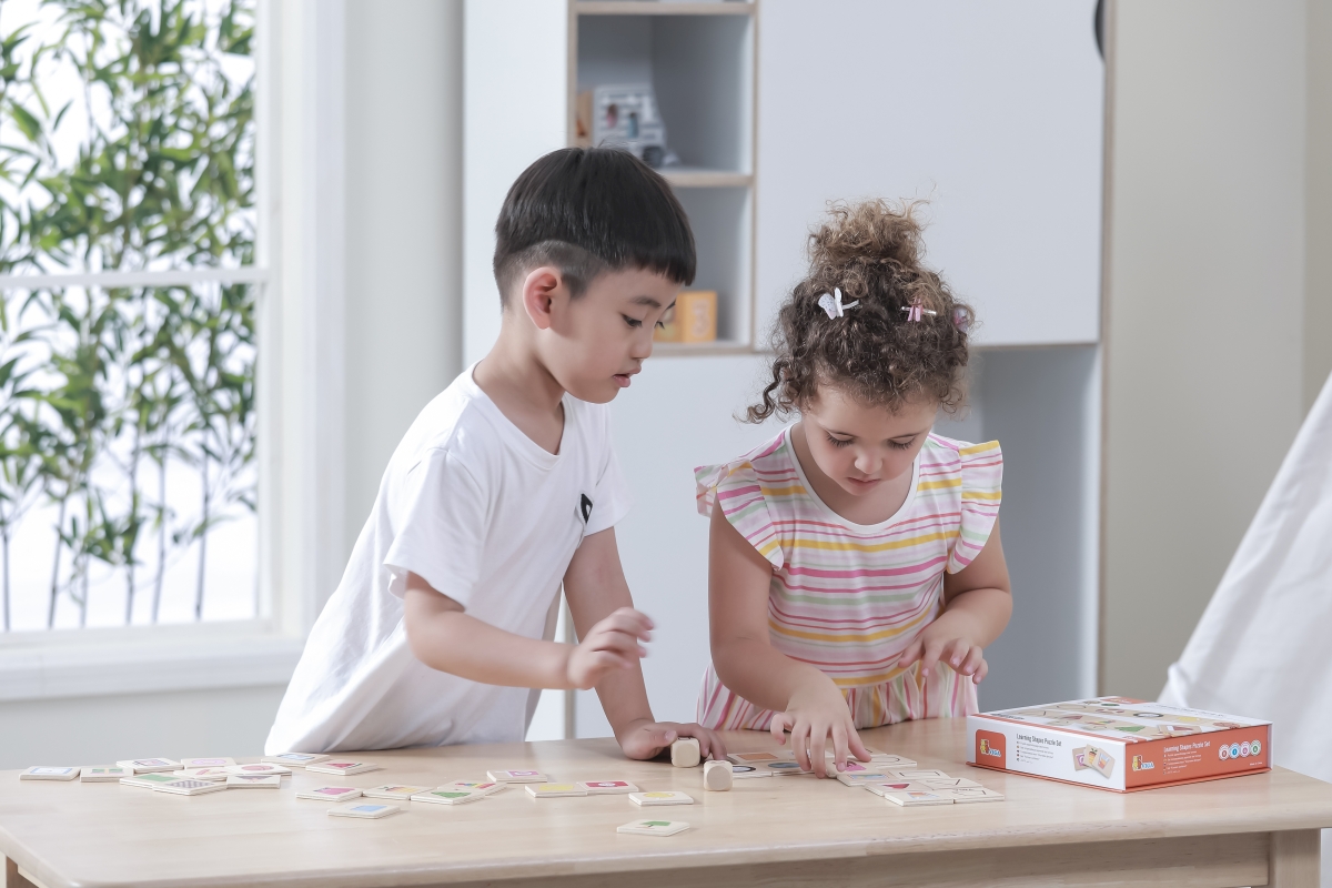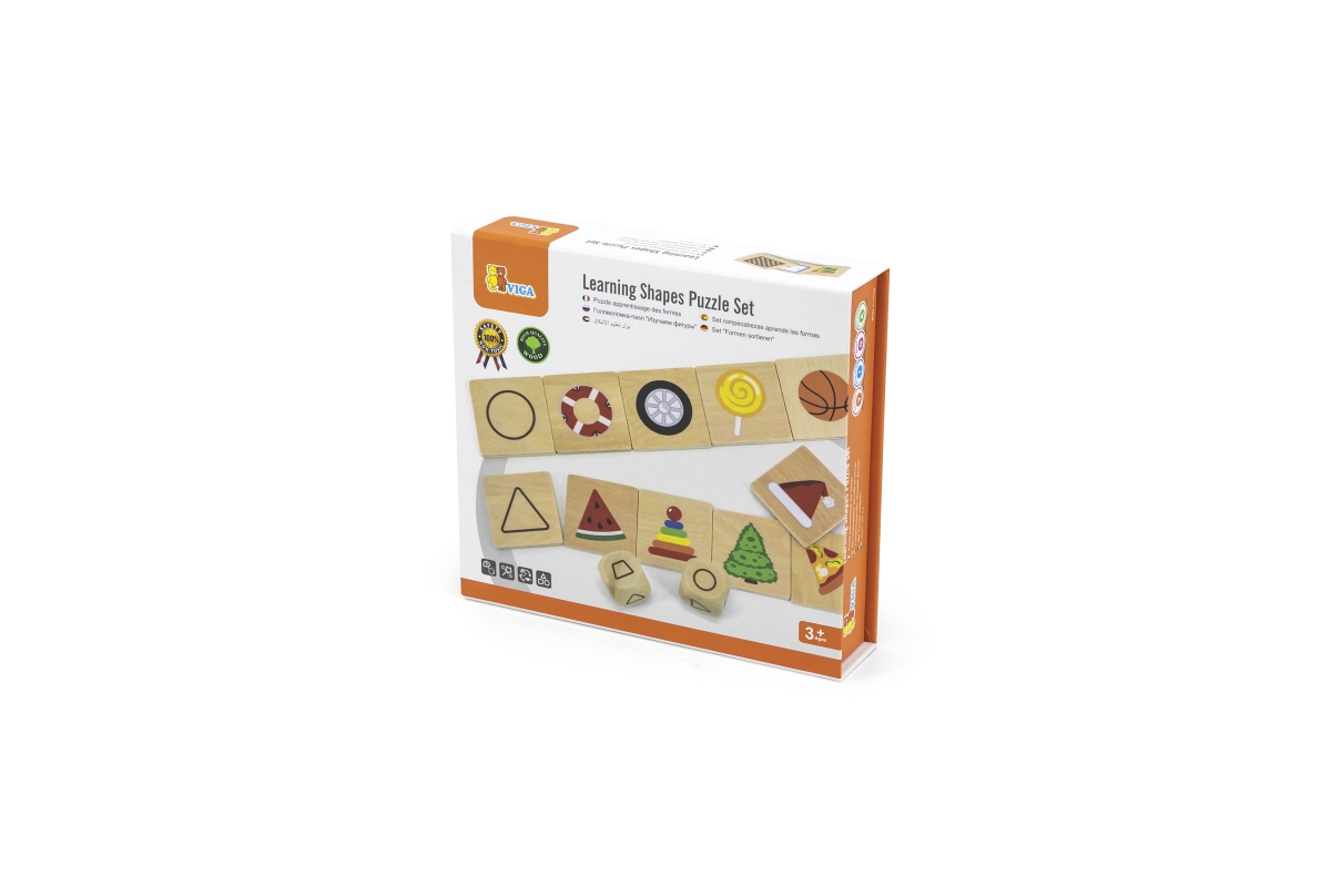 Naučné dřevěné puzzle - tvary. Balení obsahuje 25 dílků. Naučte se základních 5 tvarů tím, že skládáte puzzle se stejnými tvary a roztřídíte věci každ..