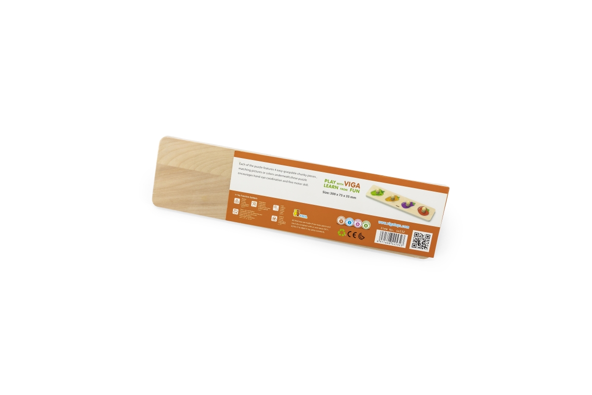Dřevěná vkládačka pro nejmenší s motivem zeleniny. Rozměry balení cca 30x7,5x0,5 cm. Věk 12m+..