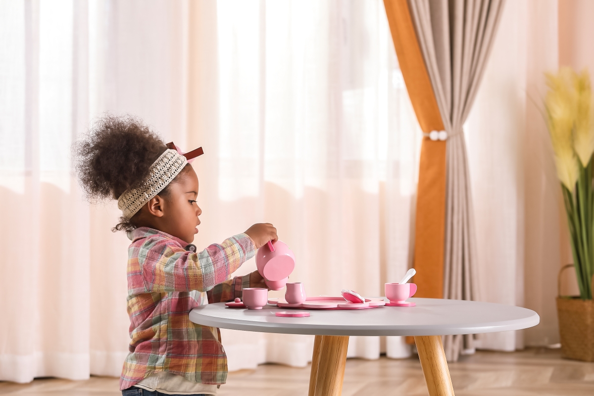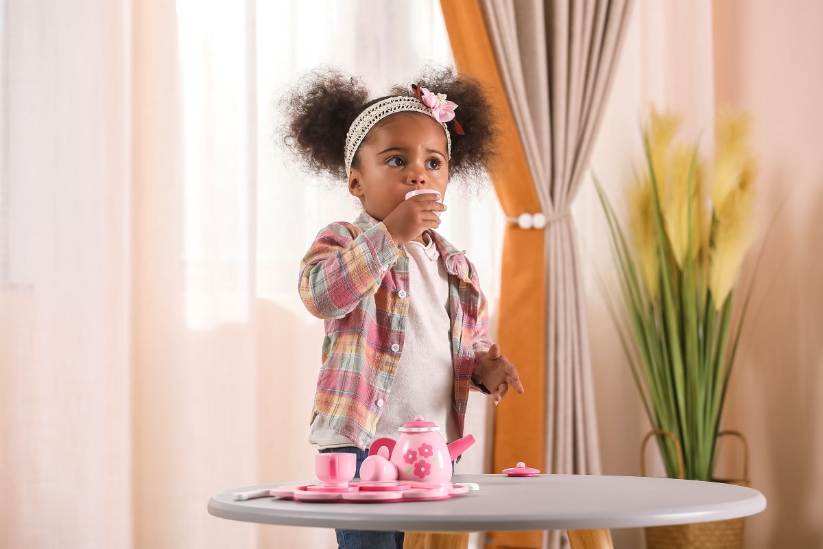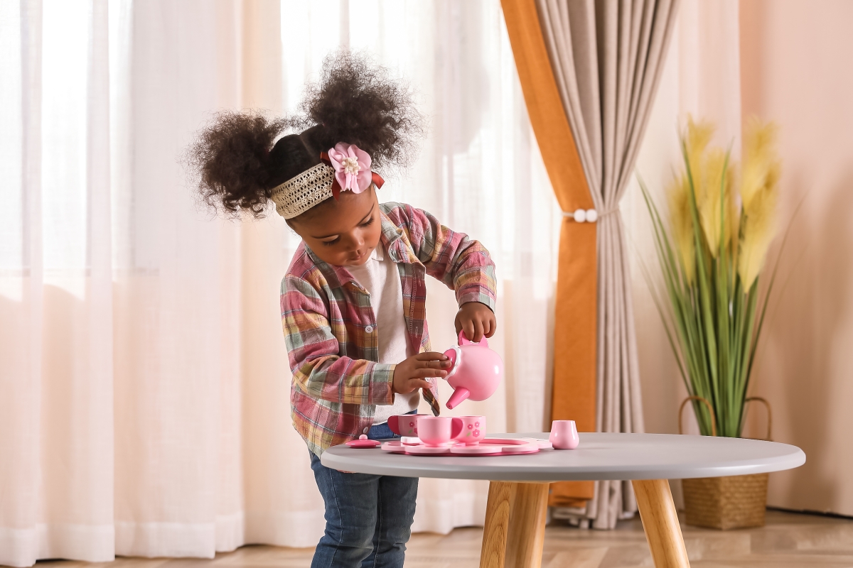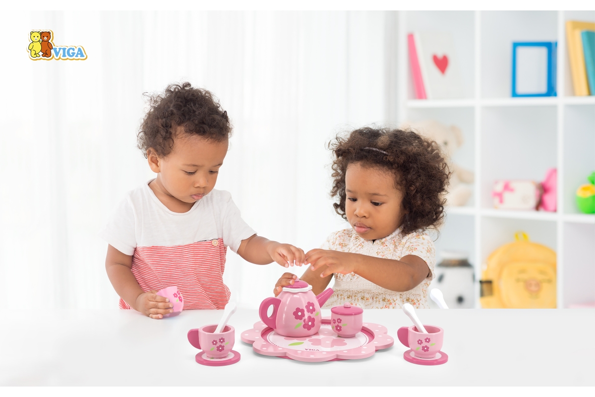 Dřevěný čajový set. Balení obsahuje podnos, konvičku, 2x hrneček, 2x podšálek, 2x lžičku, cukřenku a džbáněk na mléko. Rozměry cca 24 x 24 x 9,5 cm. R..