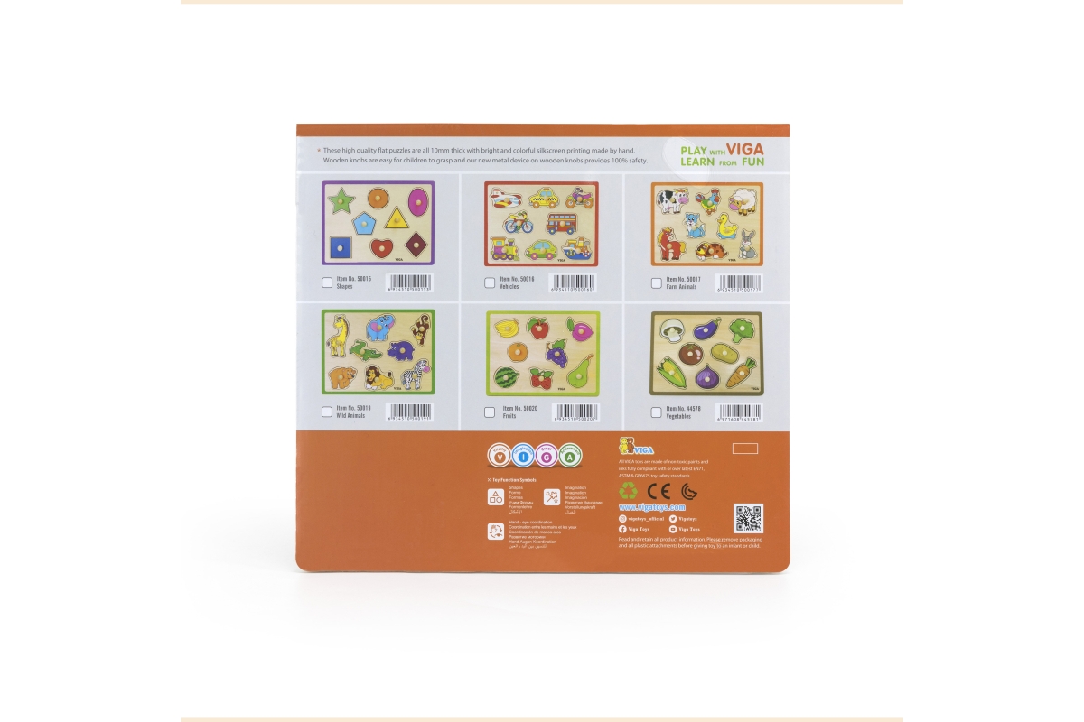 Dřevěná vkládačka se zeleninou Rozměry dřevěné desky cca 30 x 22,5 cm. Rozměry balení cca 30 x 27 x 1 cm. Věk 18m+..