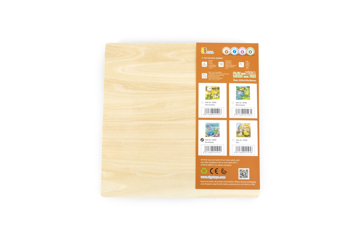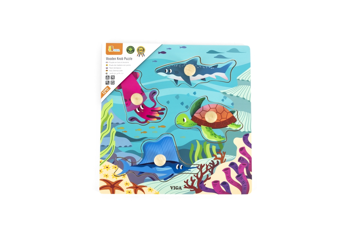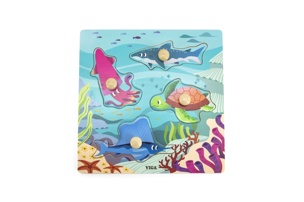 Dřevěná vkládačka moře. Rozměr dřevěné desky cca 22 x 22. Rozměr balení cca 22 x 22 x 2,5 cm. Věk 12m+..
