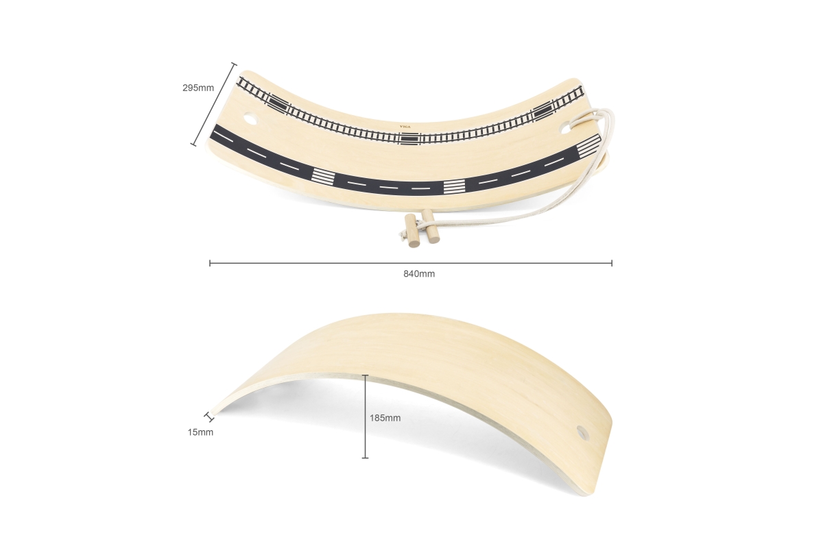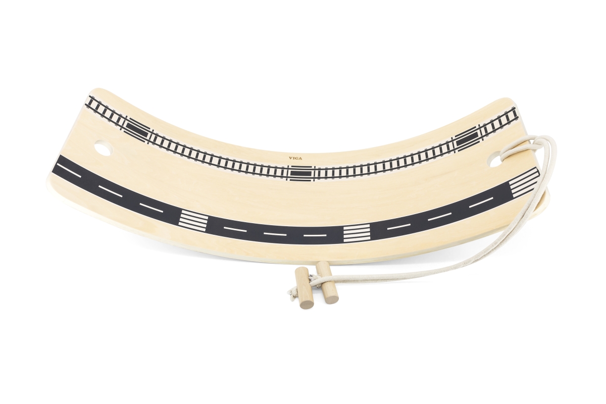 Dřevěné balanční prkno od firmy Viga, které pomáhá rozvíjet rovnováhu a posilovat tělo. Harmonizuje s metodou Montessori, kde kromě prožitkového učení podporuje samostatnost a zapojení dětí do hraček z přírodních materiálů. Jeho jednoduchý design podporuje svobodnou a kreativní hru a zároveň pomáhá dětem dosáhnout klíčových vývojových milníků. Učí se udržovat rovnováhu ve stoji a pózách. Může být použit jako houpačka, závodní autodráha, surf, houpací člun, postel, most, skluzavka a cokoli jiného, ??co si každé dítě představuje, čímž se aktivuje jeho představivost, což je neuvěřitelně důležité! Má stahovací šňůrku, která umožňuje dítěti na ní sedět a pohybovat se. Doprovází ho ve všech jeho vývojových stádiích, od batolete až po dospělce, protože unese až 80 kg. Balení obsahuje 3 proužky, které lze umístit na desku a promění se v autodráhu pro vzrušující rychlostní závody a další způsoby hraní! Rozměry: 84 x 18,5 x 29,5 cm. Rozměr balení cca 84 x 19 x 31 x 19 cm. Věk 3+