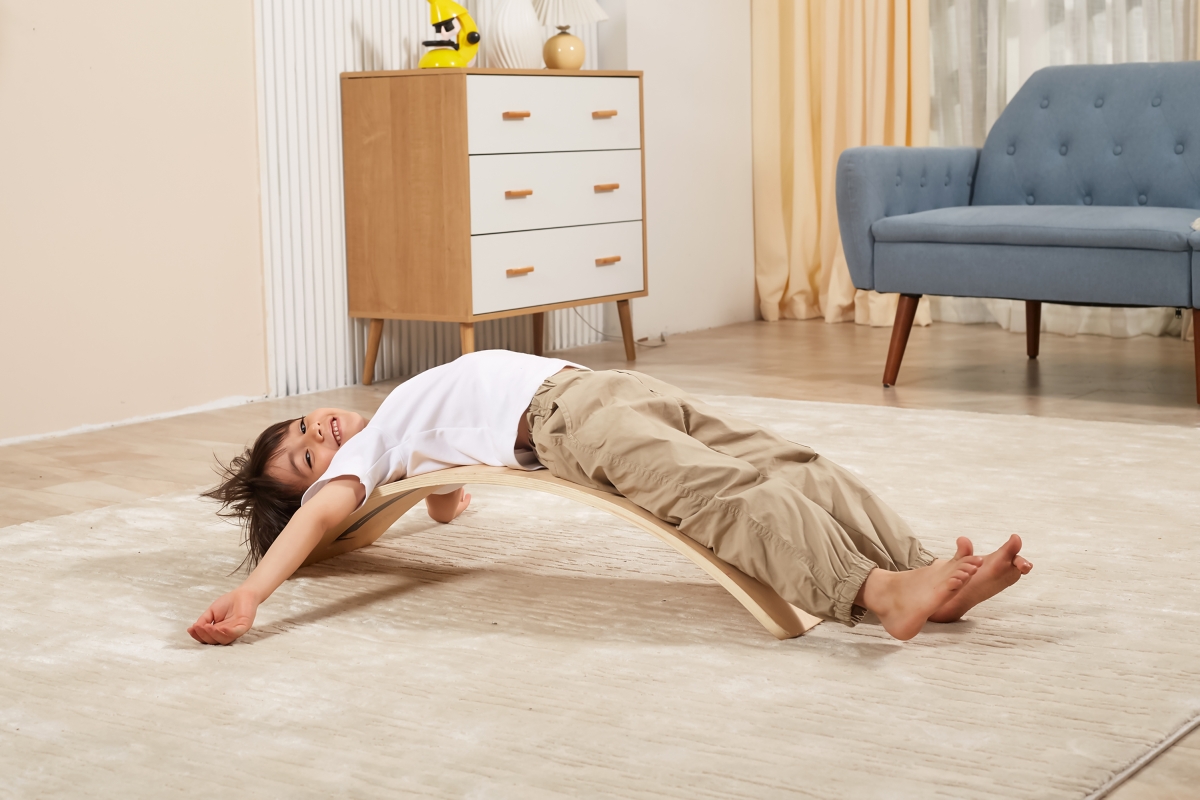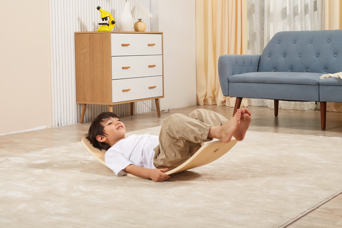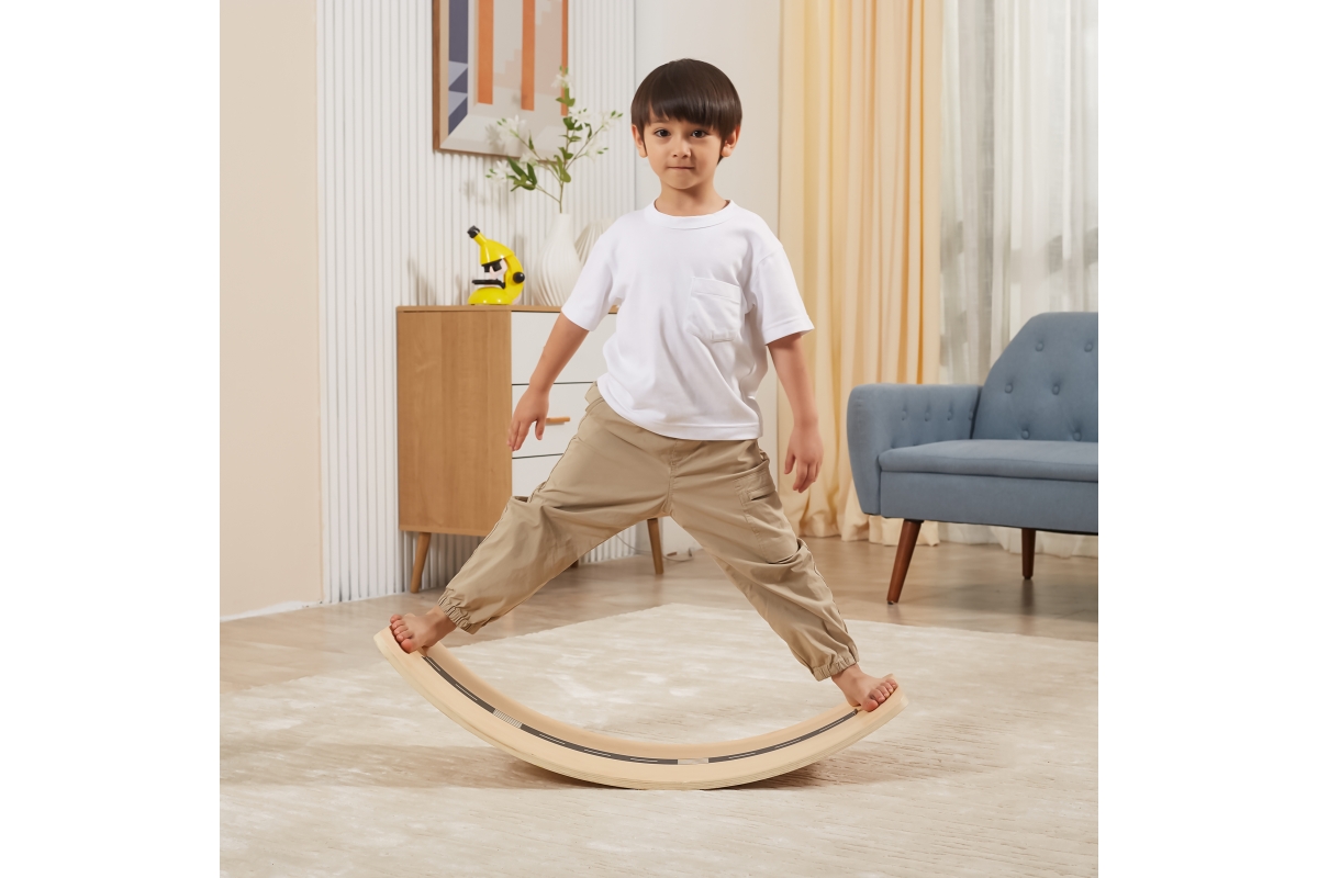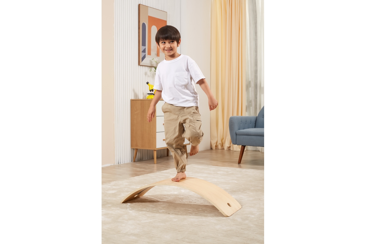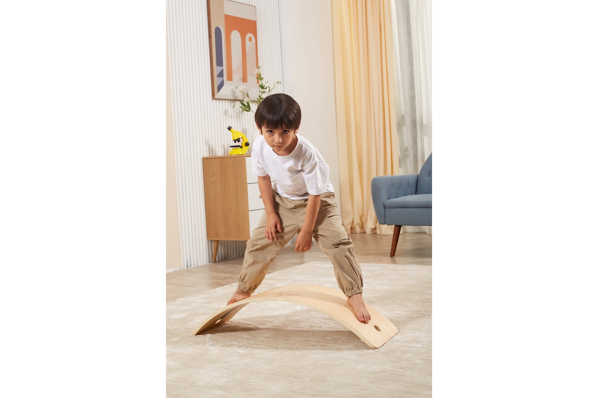 Dřevěné balanční prkno od firmy Viga, které pomáhá rozvíjet rovnováhu a posilovat tělo. Harmonizuje s metodou Montessori, kde kromě prožitkového učení..