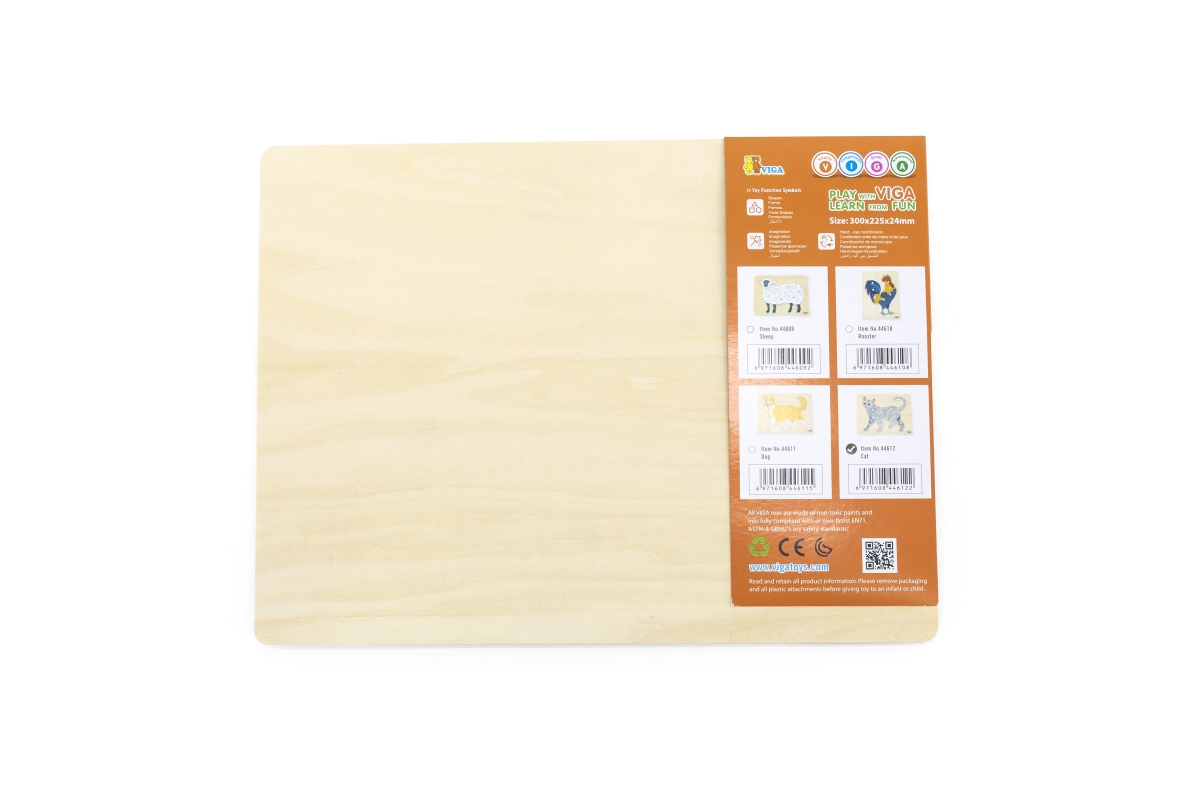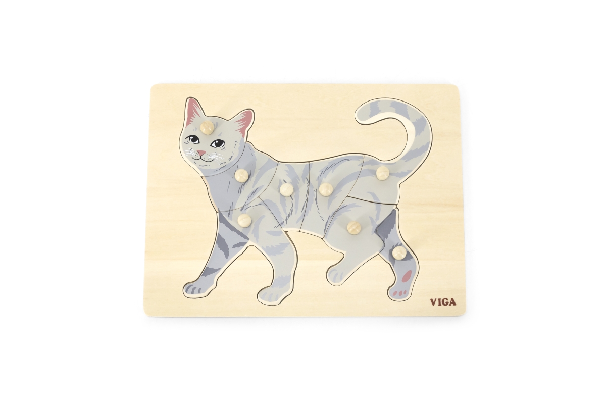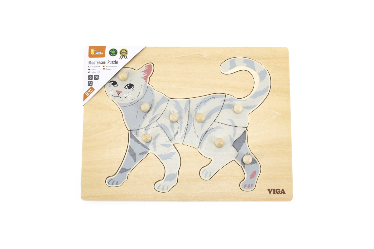 Dřevěná vkládačka s motivem kočky. Rozměr dřevěné desky cca 30 x 22,5 cm. Rozměr balení cca 30 x 22,5 x 2,5 cm. Věk 18m+..
