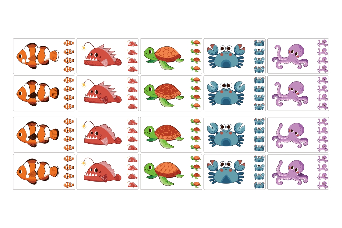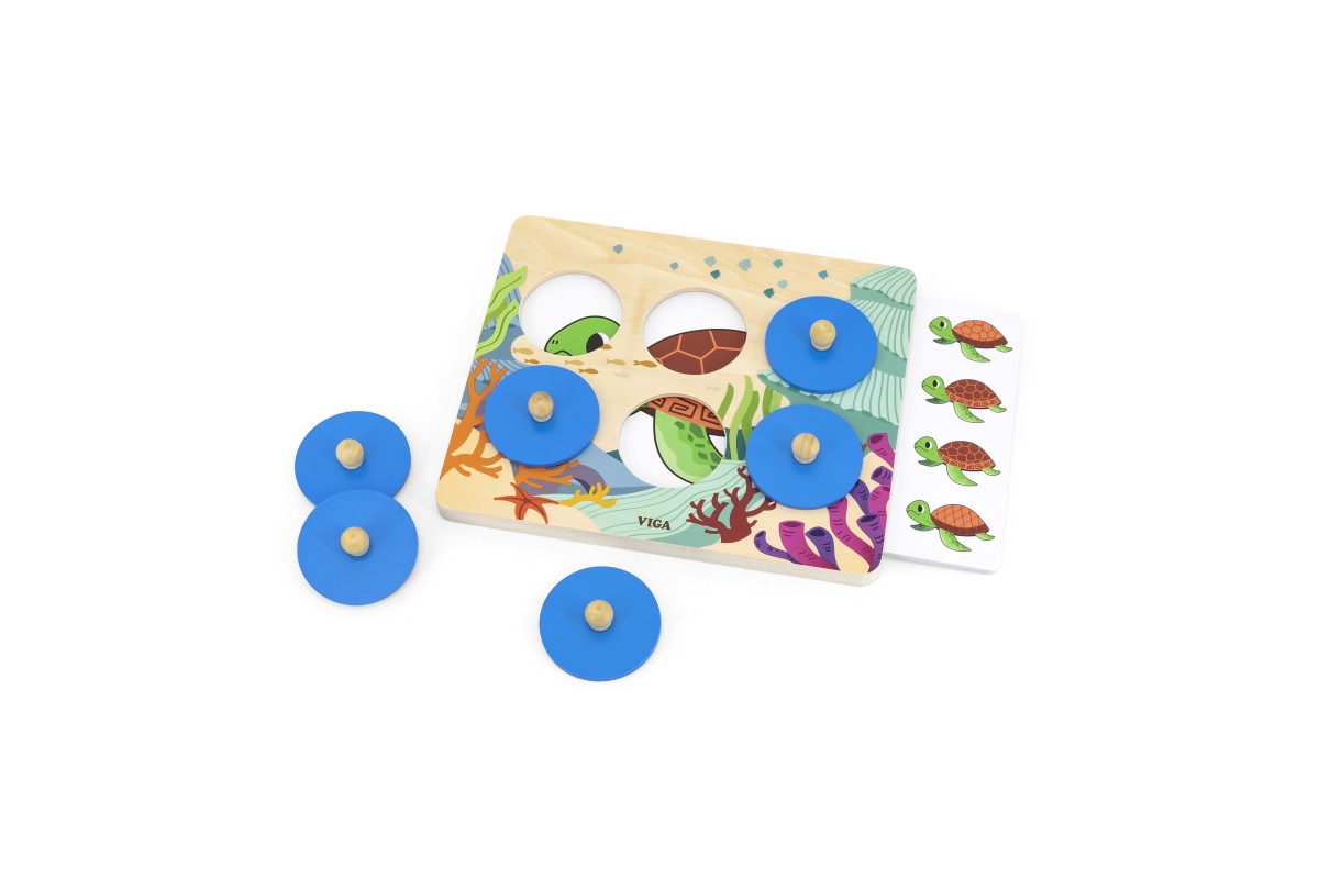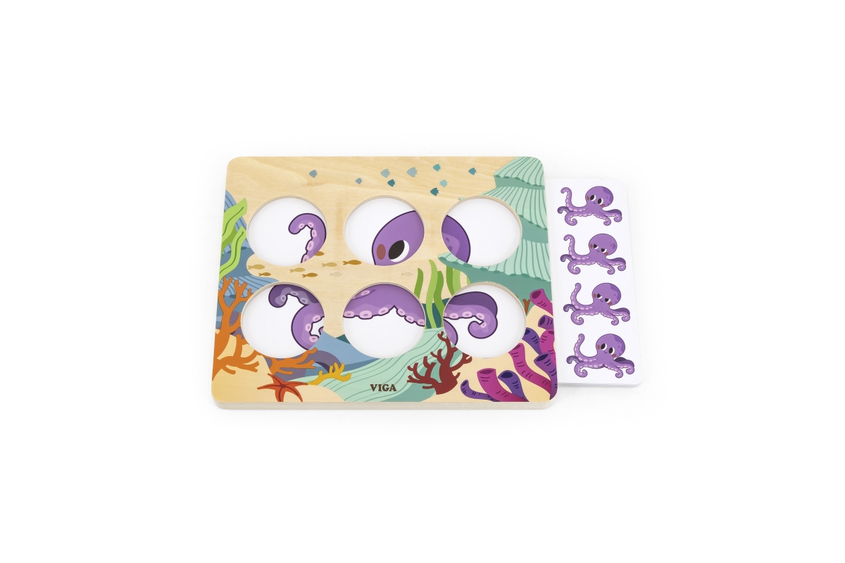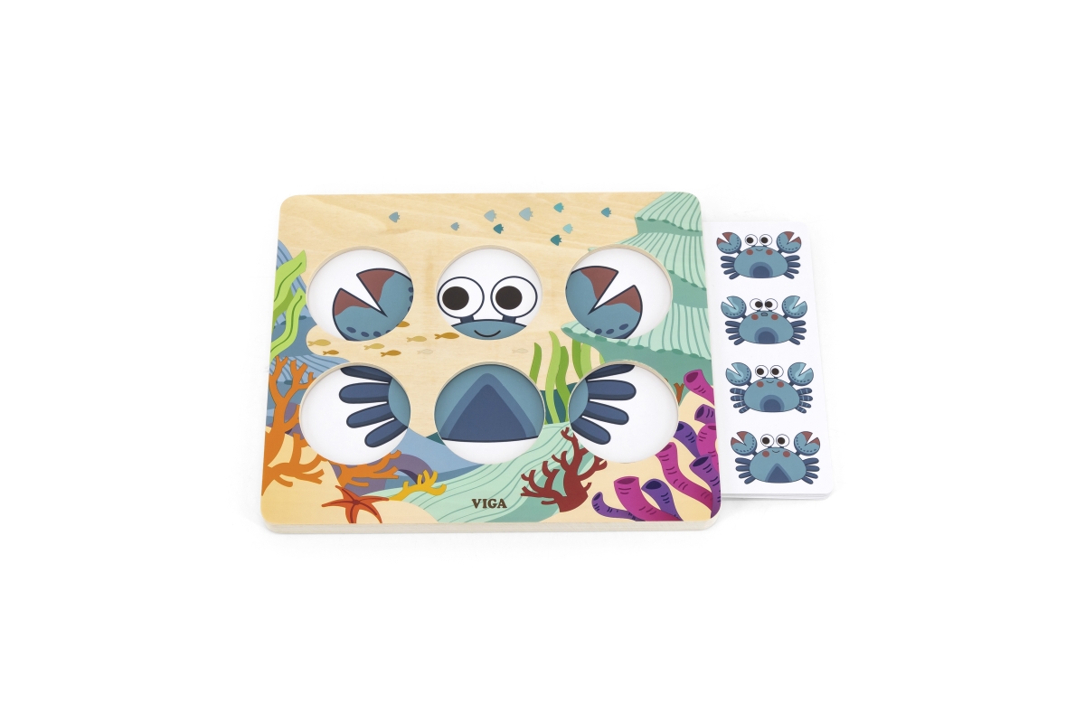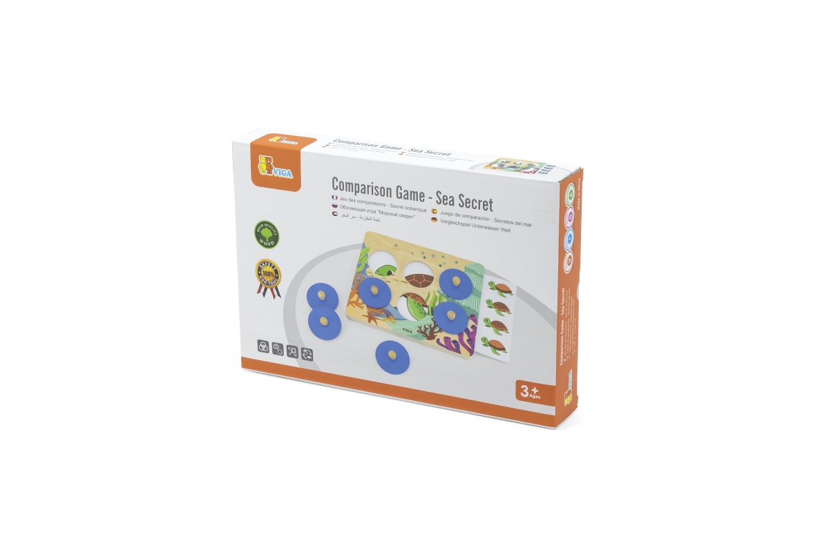 Tato hra na pozorování a srovnávání obsahuje herní plán a 10 oboustranných herních karet. Sundejte dřevěné kryty a zjistěte, který ze čtyř uvedených mořských živočichů se skrývá pod korály! Zvyšte obtížnou úroveň tím, že sundáte méně krytů. Vyzvěte své přátele nebo rodinu, aby zjistili, kdo nejrychleji najde správné zvíře. První hráč, který najde správnou kartu, vyhrává a kdo získá nejvíce karet, vyhrává! Rozvíjí zrakovou ostrost a koncentraci. Rozměr hrací desky cca 28,2 x 18,5 x 3,3 cm. Rozměr balení cca 28 x 20 x 4,5 cm. Věk 3+