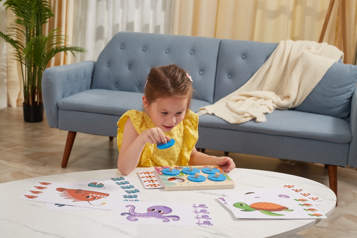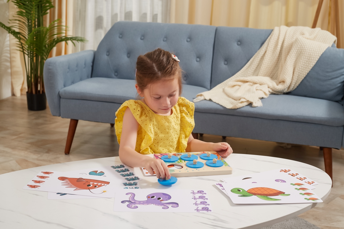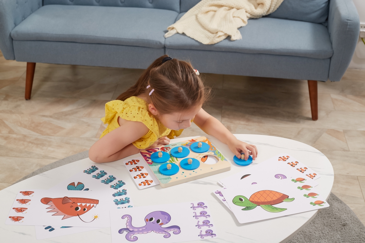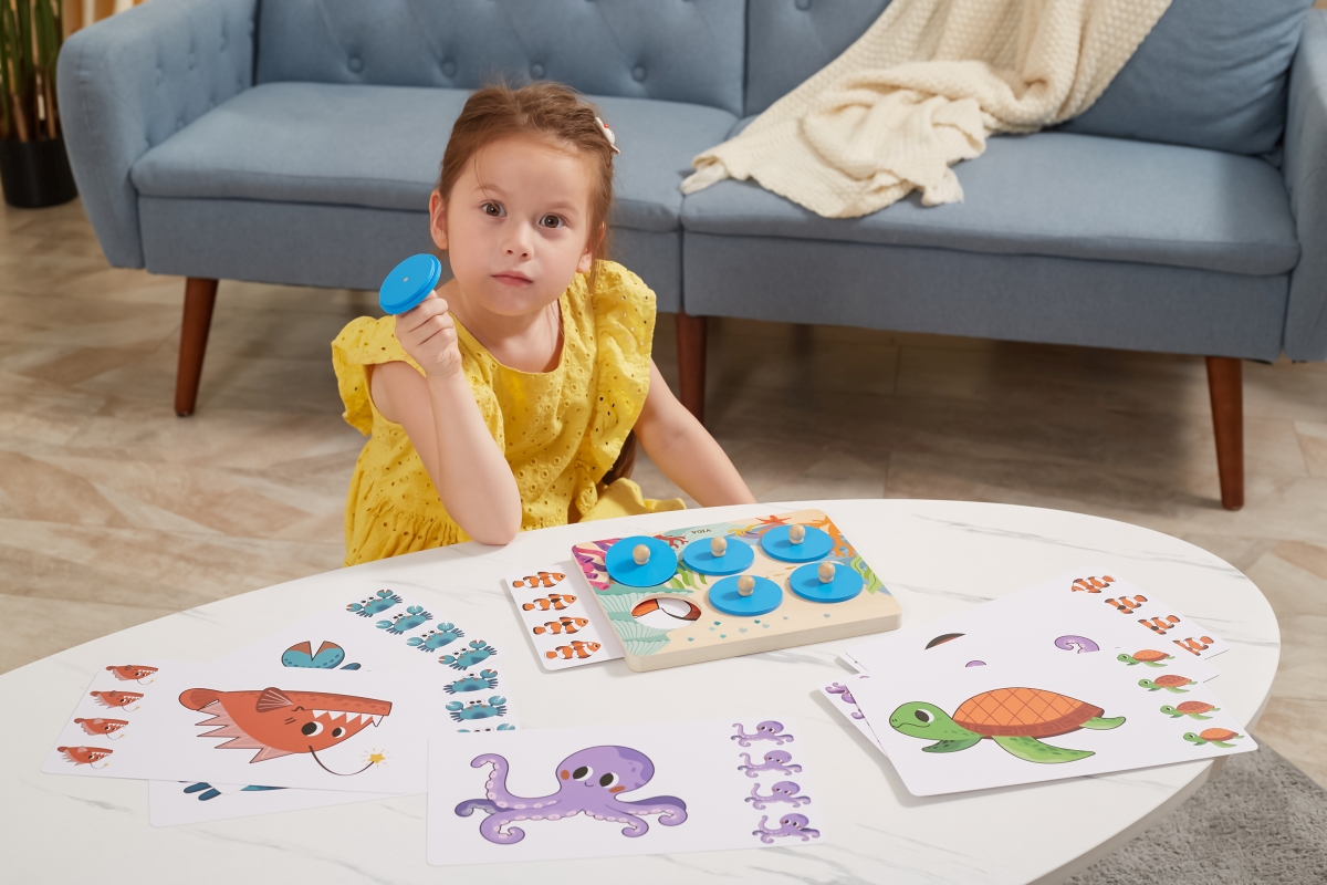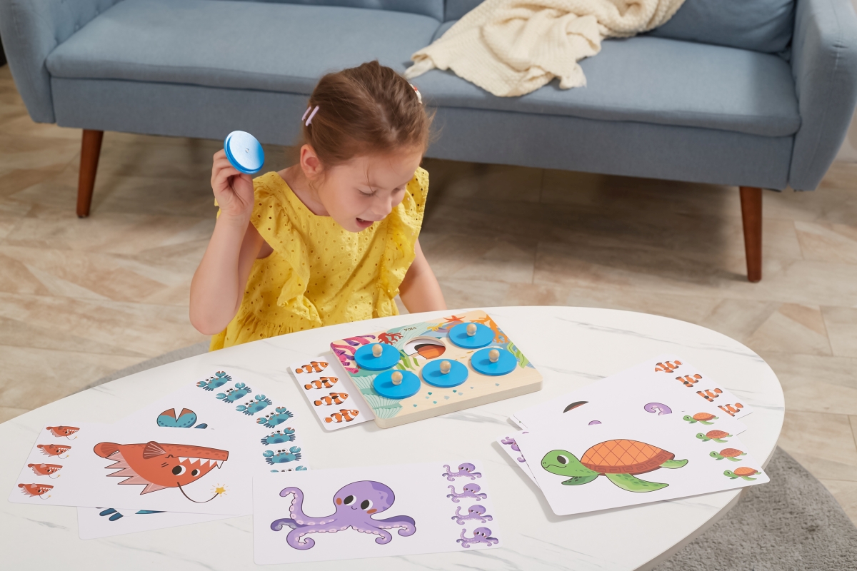 Tato hra na pozorování a srovnávání obsahuje herní plán a 10 oboustranných herních karet. Sundejte dřevěné kryty a zjistěte, který ze čtyř uvedených mořských živočichů se skrývá pod korály! Zvyšte obtížnou úroveň tím, že sundáte méně krytů. Vyzvěte své přátele nebo rodinu, aby zjistili, kdo nejrychleji najde správné zvíře. První hráč, který najde správnou kartu, vyhrává a kdo získá nejvíce karet, vyhrává! Rozvíjí zrakovou ostrost a koncentraci. Rozměr hrací desky cca 28,2 x 18,5 x 3,3 cm. Rozměr balení cca 28 x 20 x 4,5 cm. Věk 3+