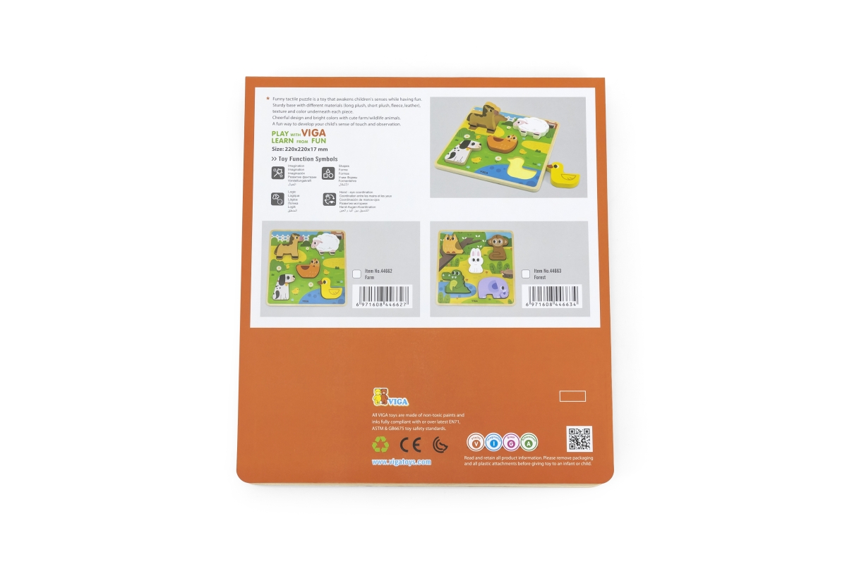 Dřevěná vkládačka se zvířátky. Rozměry dřevěné desky cca 22 x 22 cm. Rozměry balení cca 22 x 25 x 2 cm. Věk 18m+..