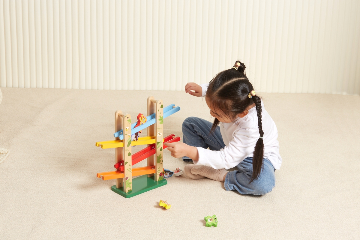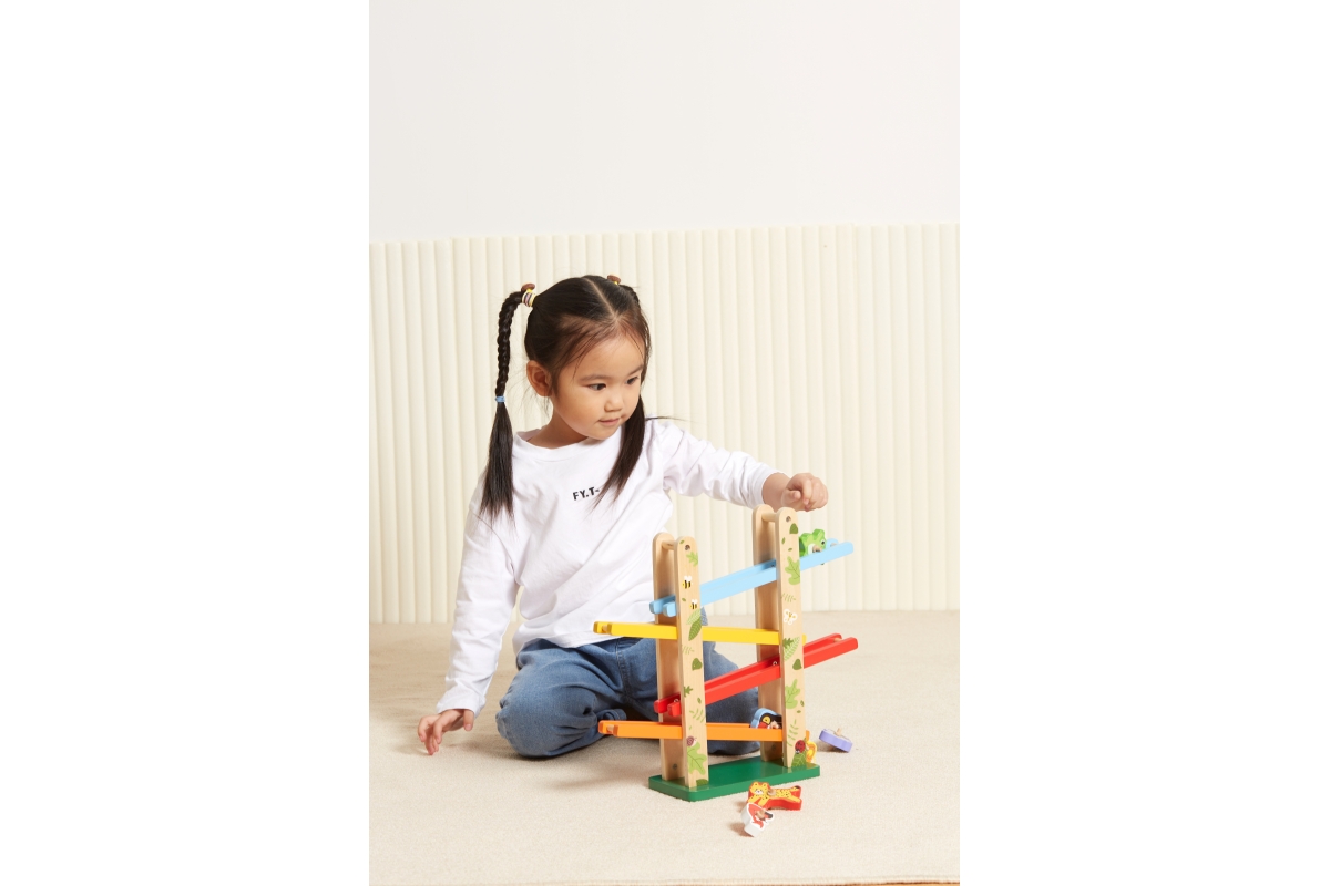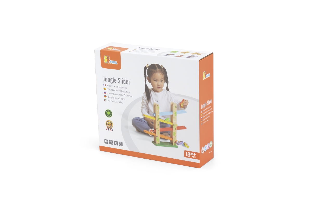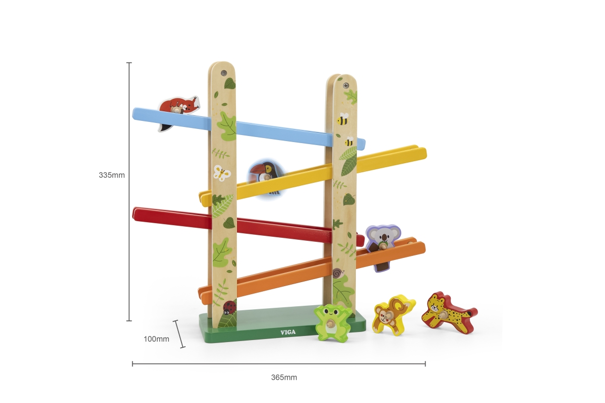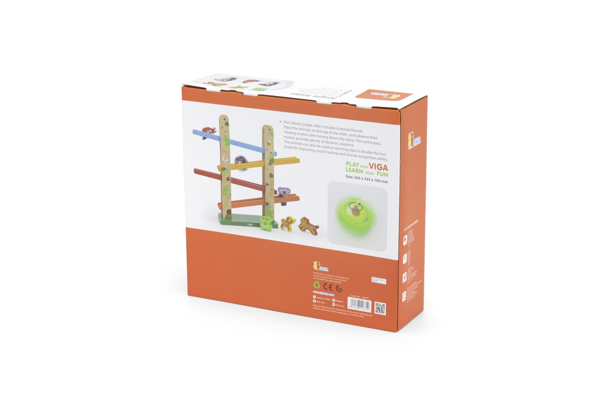Tato barevná skluzavka od značky VIGA obsahuje 6 roztomilých zvířátek přímo z džungle. Umístěte zvířata na vrchol a sledujte, jak se točí po rampě dol..