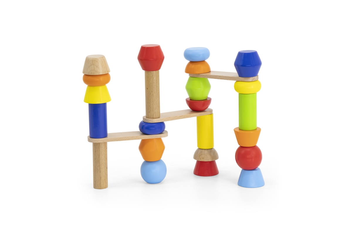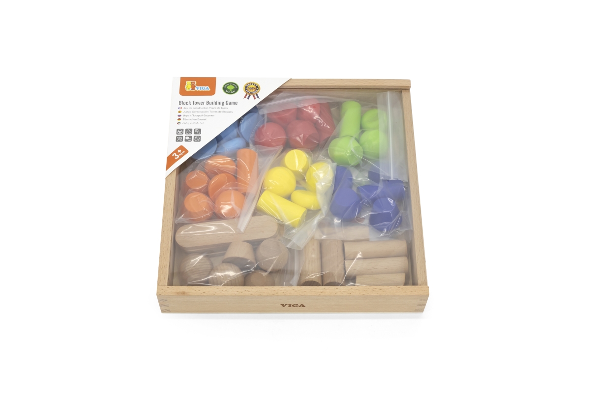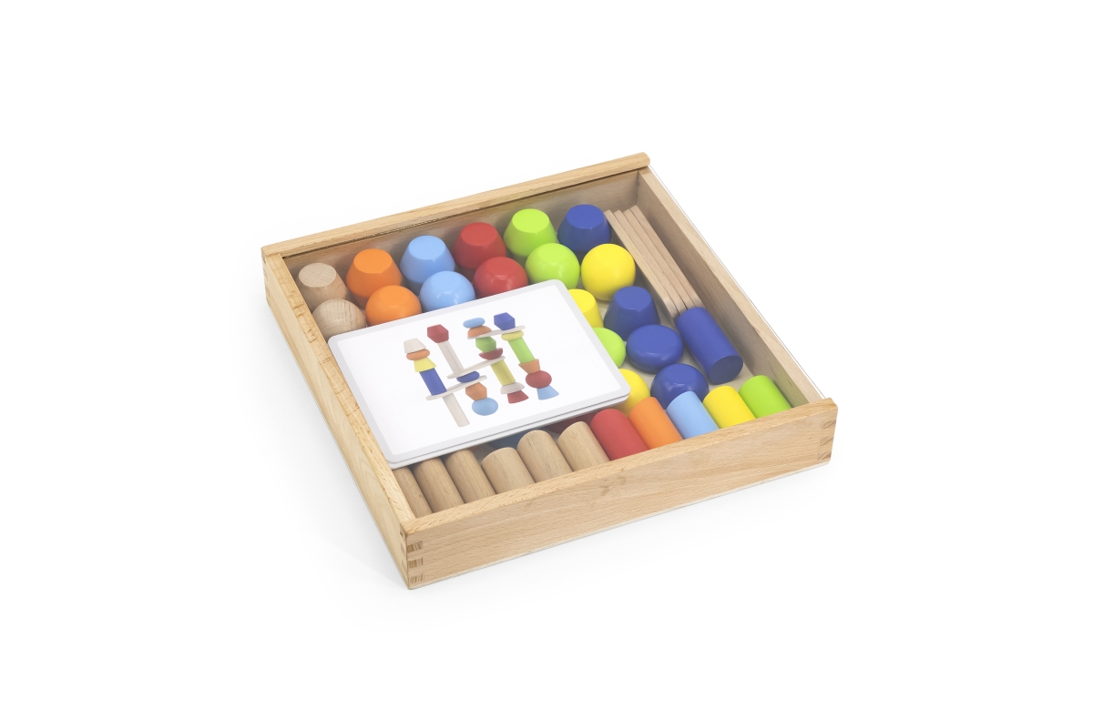 Balení obsahuje 46 dílů různých tvarů a předlohy,podle kterých stavíte různé bloky Uloženo v dřevěné krabici o rozměrech cca 25 x 25 x 4,5 cm.Věk 3+..