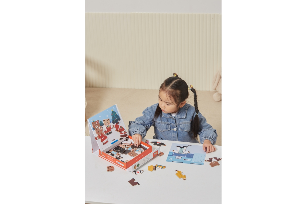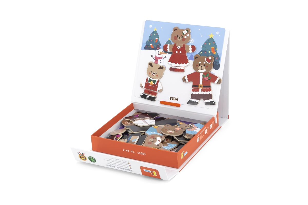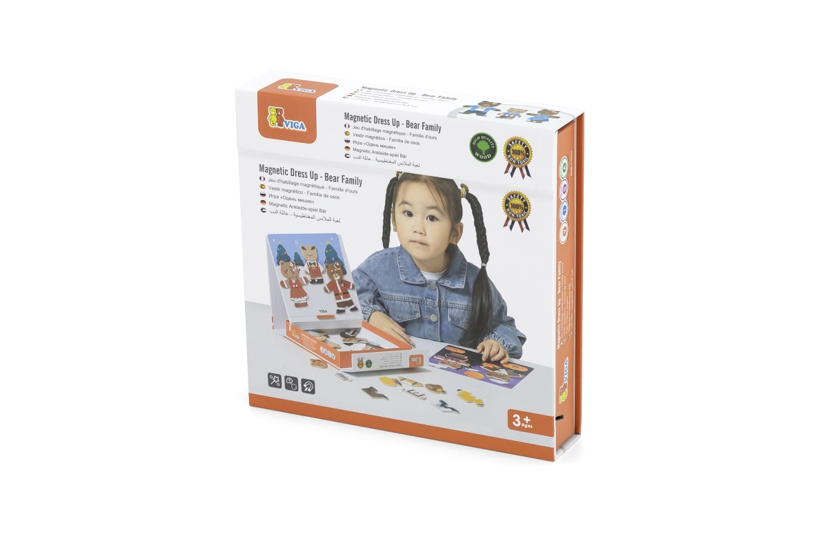 Dřevěné magnetixké oblékání. Sada obsahuje 54 dílků. Rozměry balení cca 21,5x21,5x4,5 cm. Věk 3+..