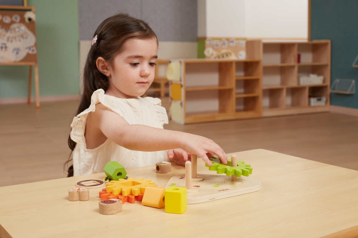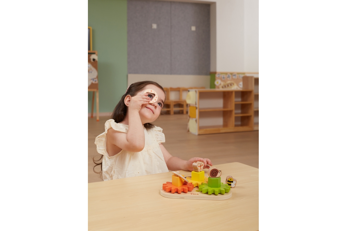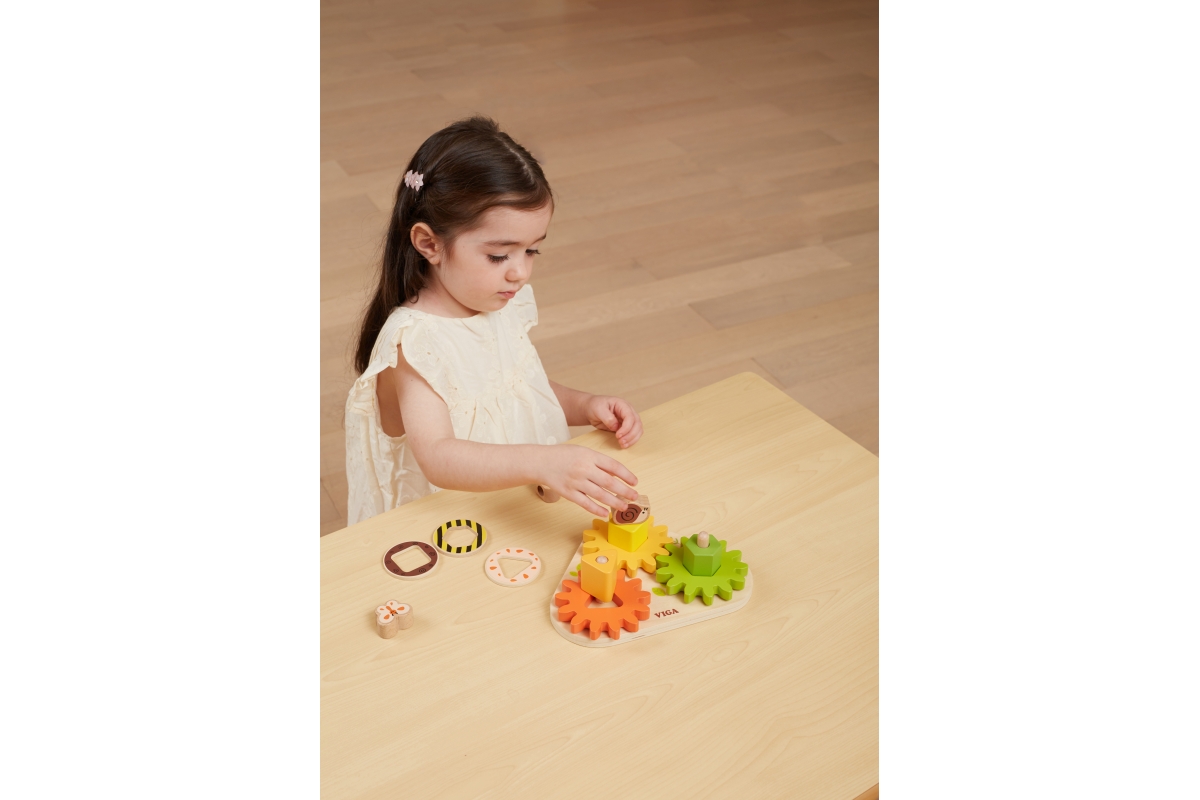 Dřevěná ozubená kolečka s geometrickými tvary. Hra rozvíjí jemnou motoriku dětí a zároveň naučí různé tvary. Rozměry 22x17x8,6 cm. Rozměry balení cca ..
