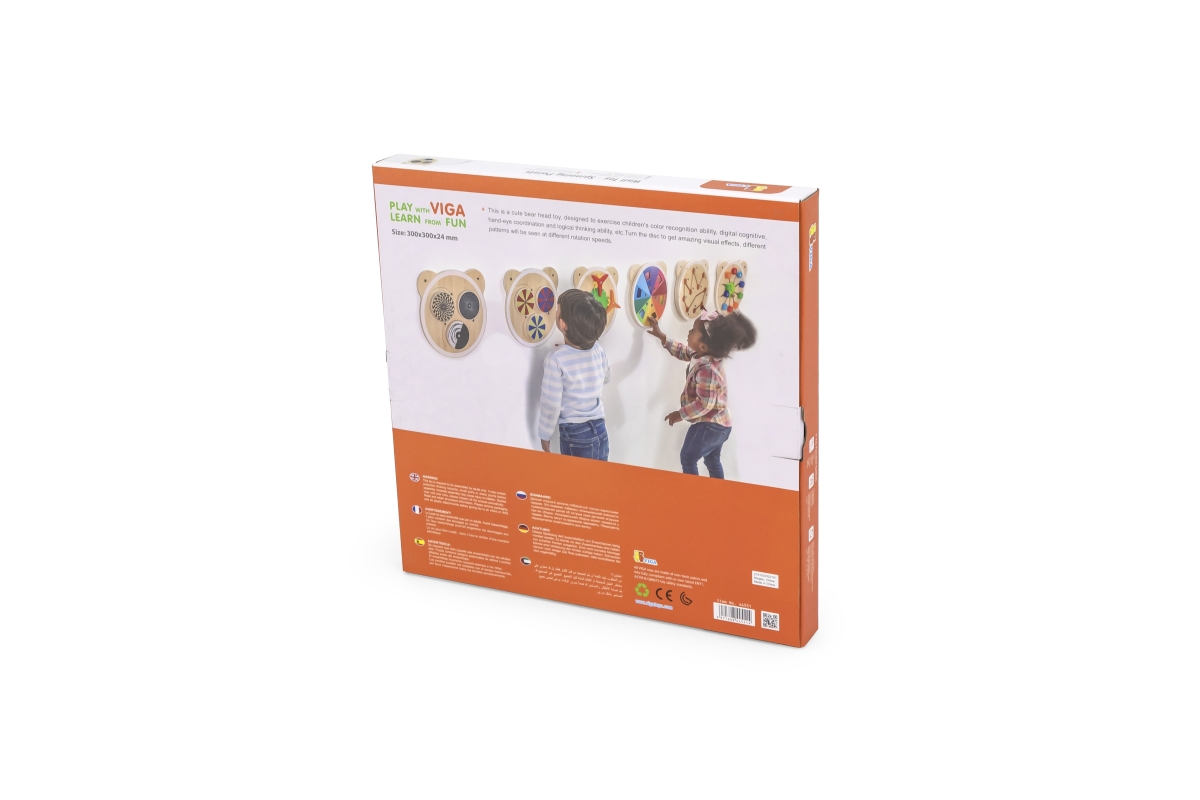 Dřevěná nástěnná hra. Podporuje logické myšlení a manuální zručnost. Baleno v krabici. Rozměry balení 31x31x3 cm. Rozměry hry 30x30x24 cm. Věk 18m+..