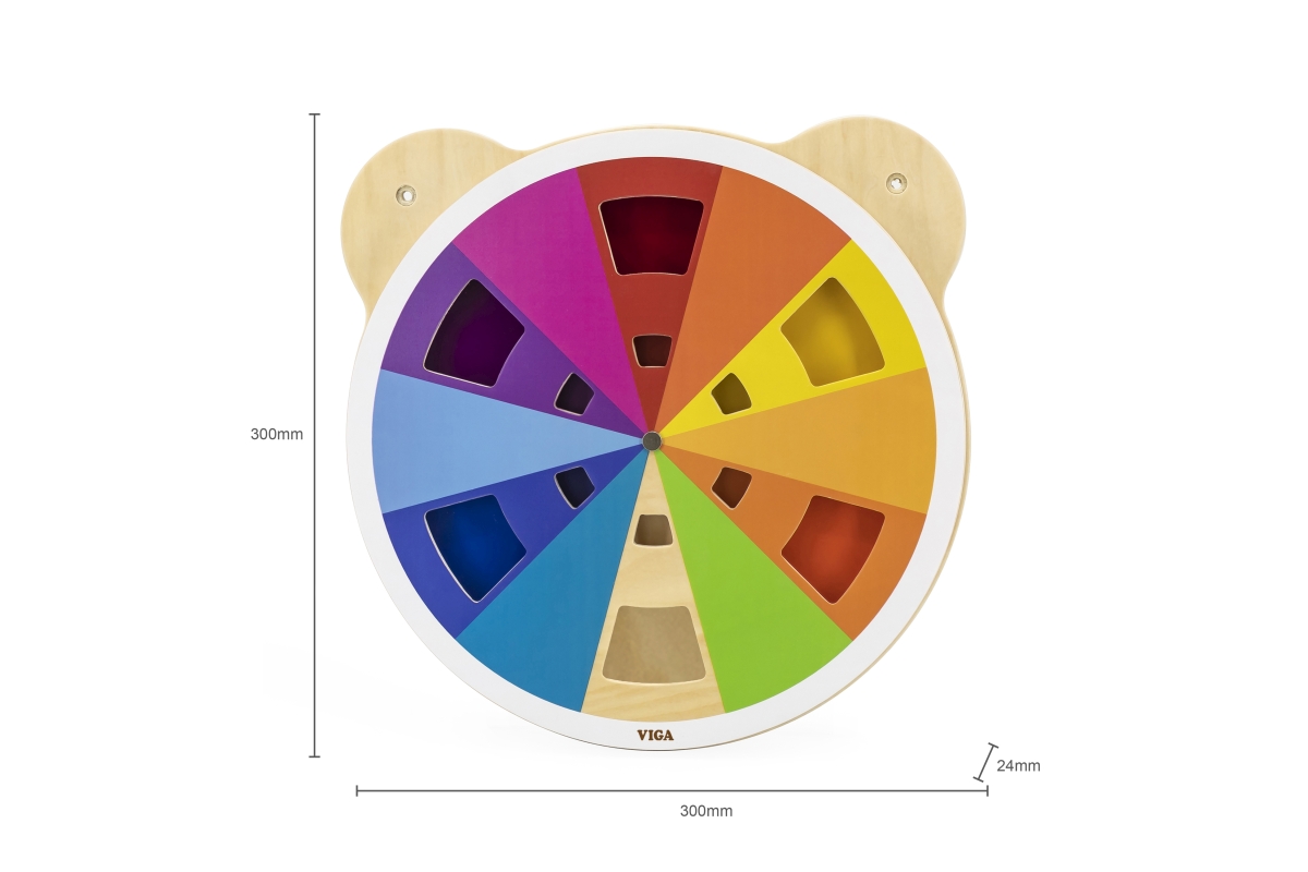 Dřevěná nástěnná hra. Podporuje logické myšlení a manuální zručnost. Baleno v krabici. Rozměry balení 31x31x3 cm. Rozměry hry 30x30x24 cm. Věk 18m+..