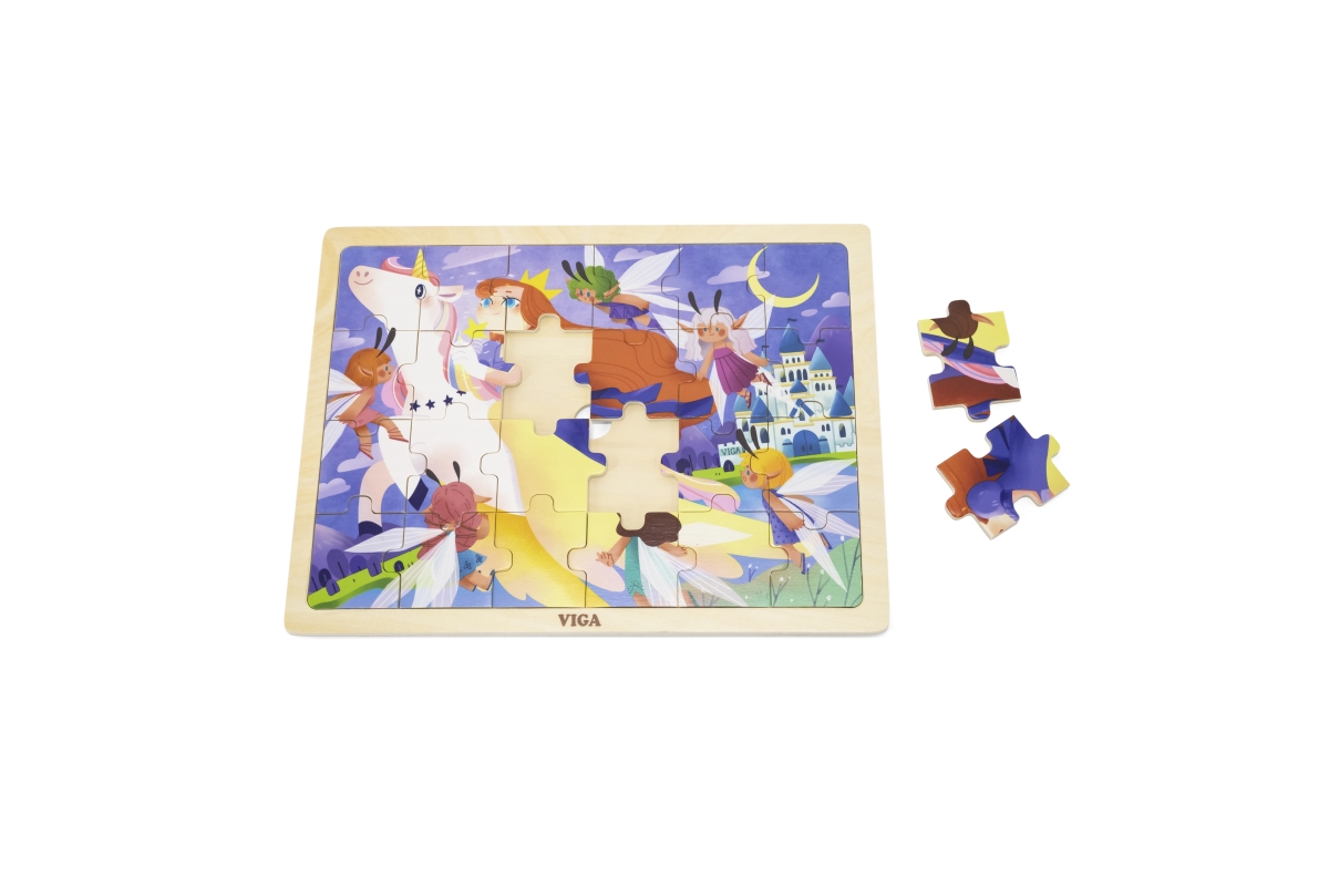 Dřevěné puzzle 24 dílků s pohádkovým motivem. Rozměry 30x22,5x1 cm. Věk 24m+..