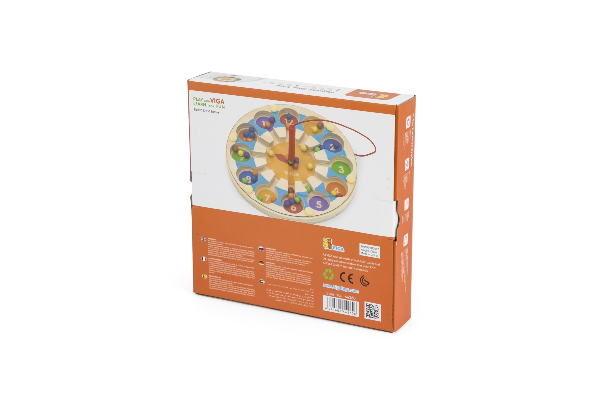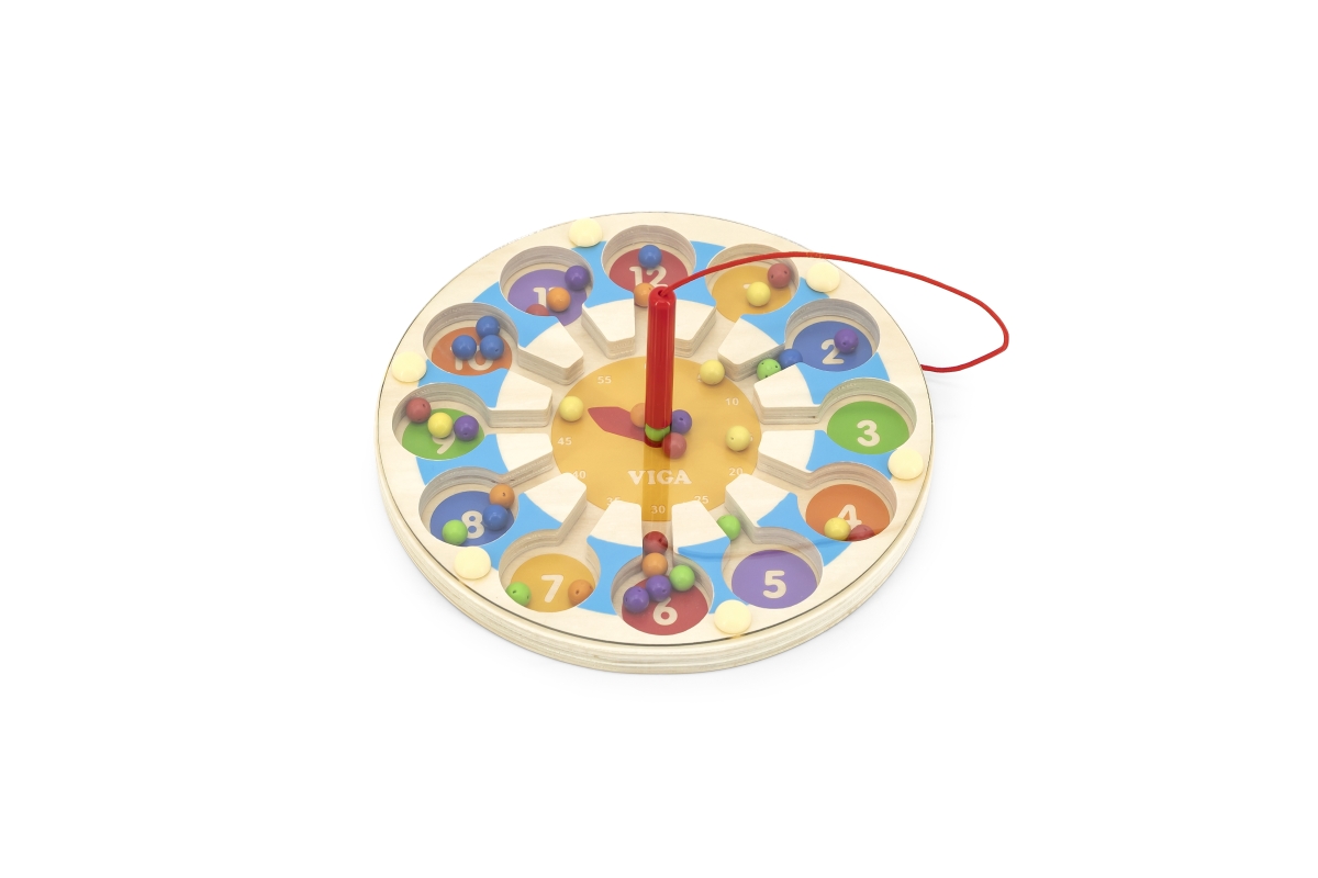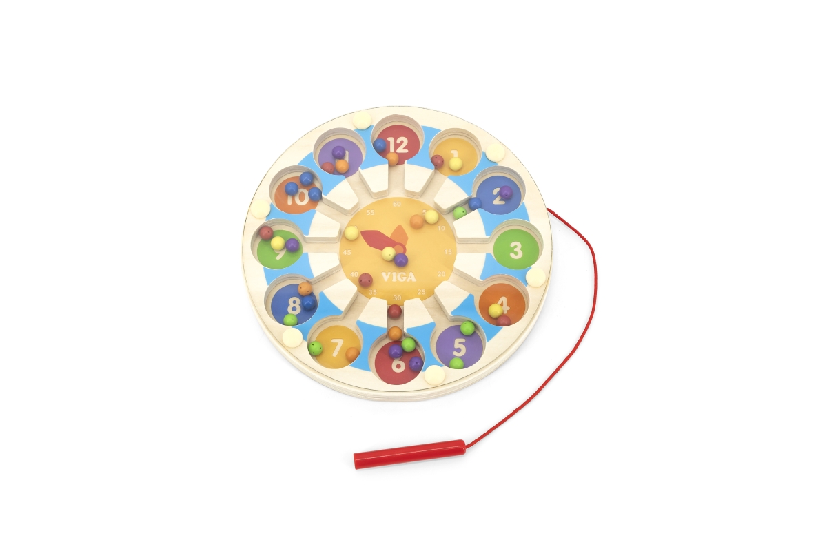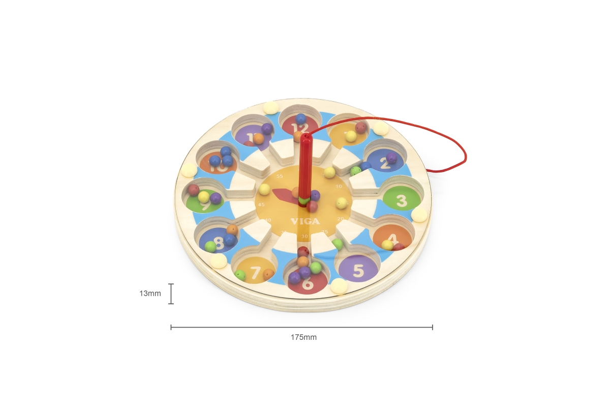 Dřevěná hra - hodiny. pomocí tyčky vkládáte magnetické kuličky na správné pozice. Podporuje učení. Rozměry hodin 17,5x1,5 cm. Rozměry balení 21x21x4 c..