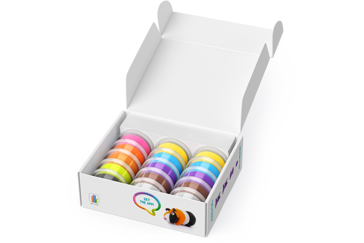 Z modelovací hmoty HEY CLAY si děti mohou vytvořit nepřeberné množství různých postaviček, zvířátek nebo oblíbených hrdinů. Po vymodelování je důležité nechat modely na vzduchu dostatečně zatvrdnout a tím okamžikem se mohou stát součástí dalších her a zábavy. Lze si tak jednoduše vytvořit vlastní figurky a postavičky, nebo schovat Hey Clay opět do kelímku pro další tvorbu. S mobilní aplikací Hey Clay (iOS, Android), kterou si zdarma stáhnete, a která nabídne dětem další možnosti rozvíjení fantazie, barev a kouzlení s vytvářením nových postaviček – kód v hodnotě 5USD pro otevření aplikace, najdete v každém balení Sada Hey Clay obsahuje 15 nádobek s měkkou, jemnou a voňavou modelínou a přístupový kód do aplikace pro zakoupenou řadu. Barvy nacházející se v balení Vám umožní vytvořit 6 postaviček - 2 pejsky, 2 kočičky, morče a myš. Věk 3+