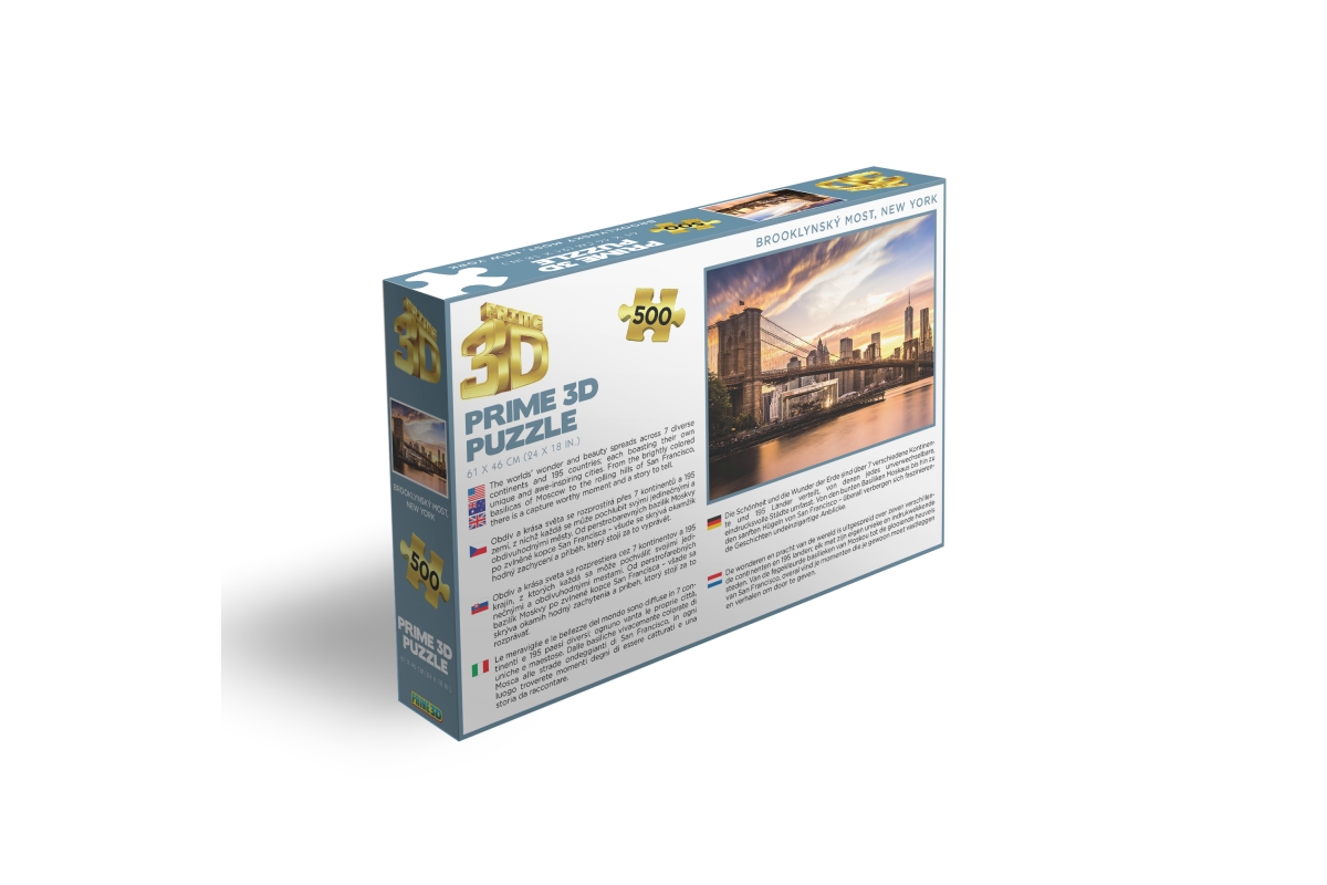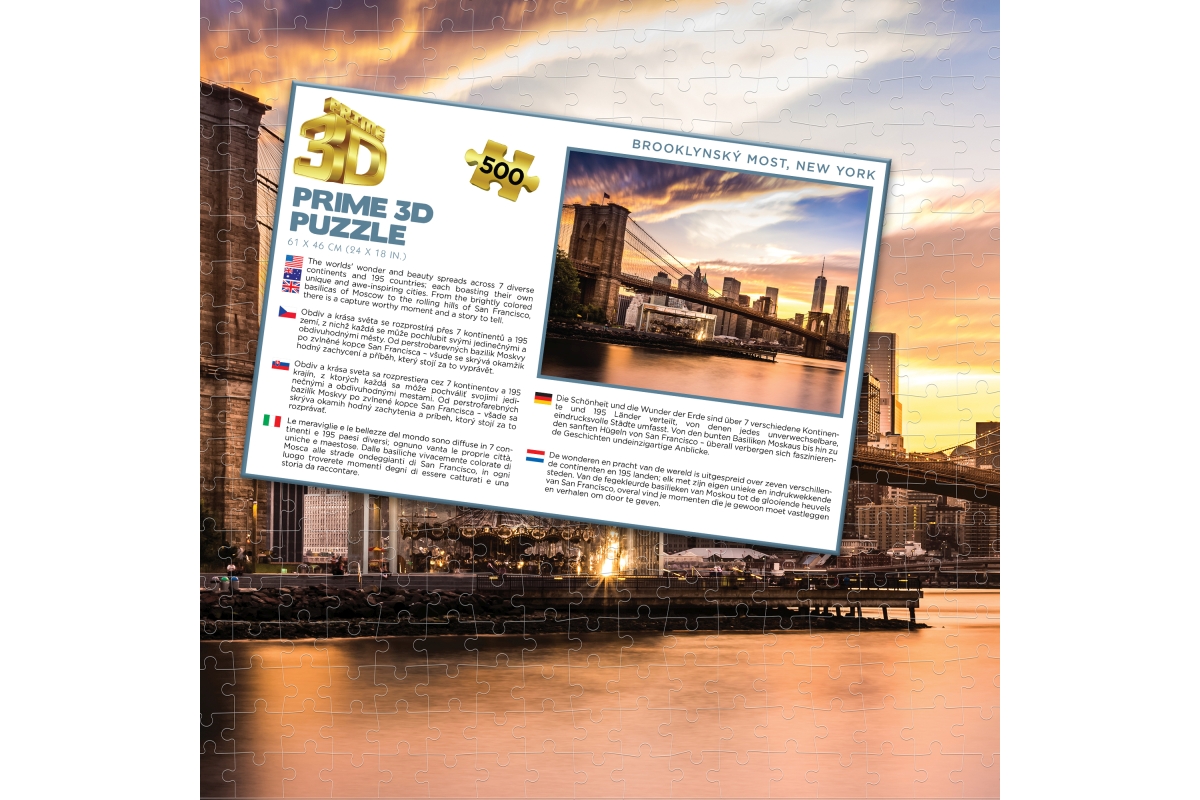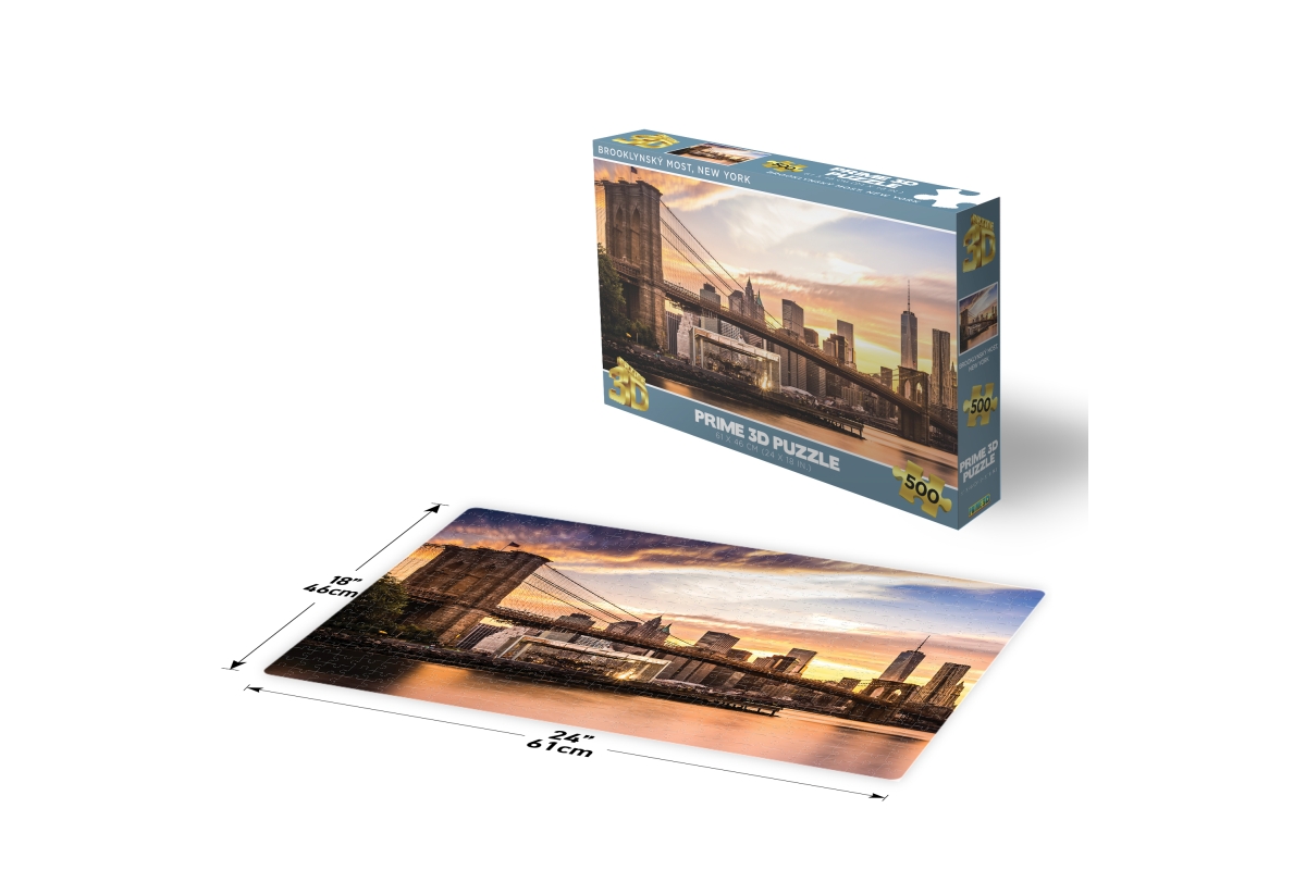 3D puzzle s motivem Brooklynského mostu v New Yorku. Balení obsahuje 500 dílků. Rozměry balení 31x20,3x5 cm. Rozměry složeného obrázku 61x46 cm. Věk 6..