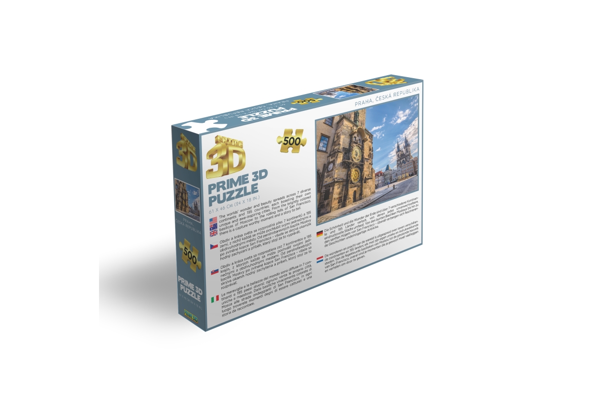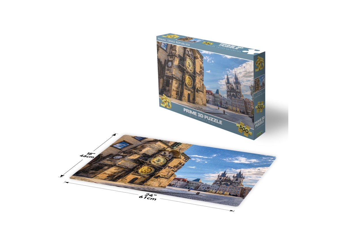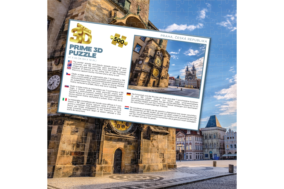 3D puzzle s motivem Prahy. Balení obsahuje 500 dílků. Rozměry balení 31x20,3x5 cm. Rozměry složeného obrázku 61x46 cm. Věk 6+..