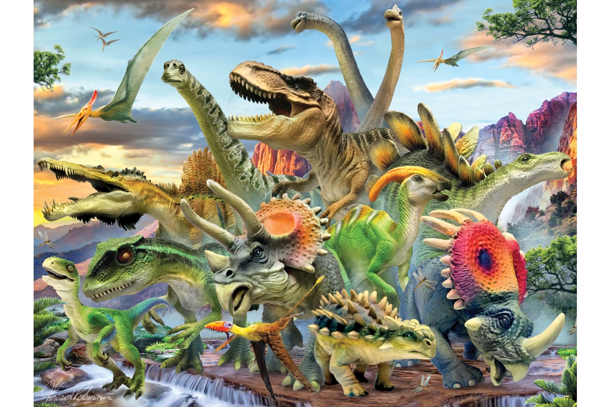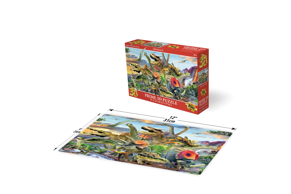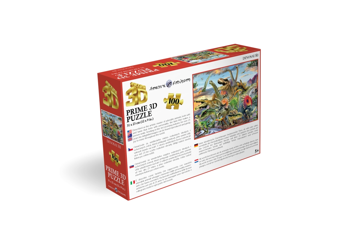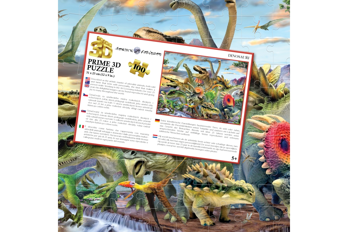 3D puzzle s motivem dinosaurů. Balení obsahuje 100 dílků. Rozměry balení 23x15x5 cm. Rozměry složeného obrázku 31x23 cm. Věk 5+..