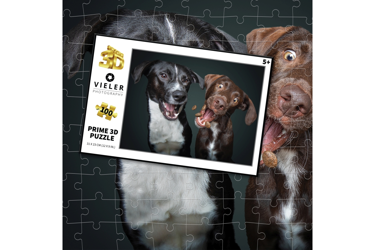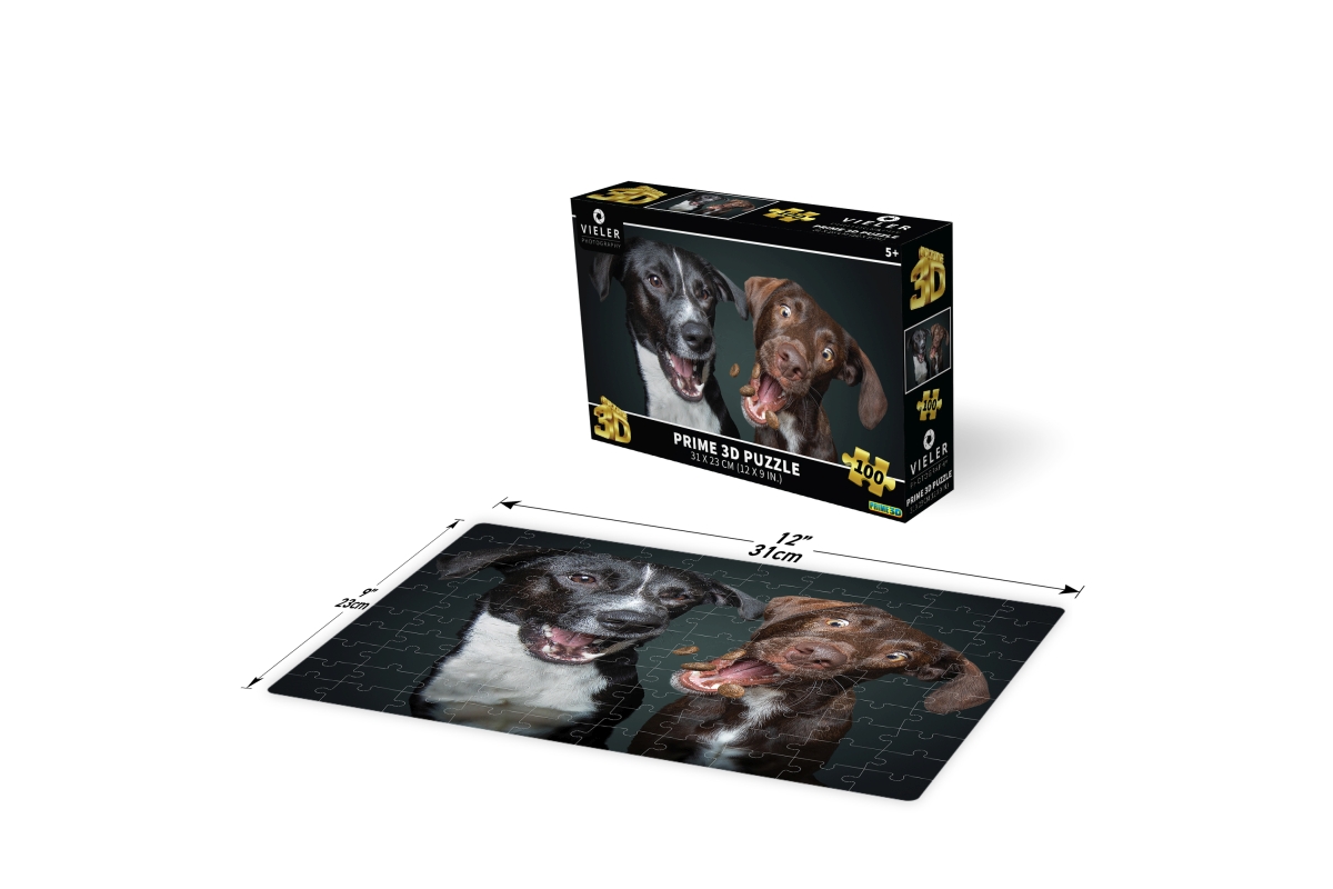 3D puzzle s motivem psů. Balení obsahuje 100 dílků. Rozměry balení 23x15x5 cm. Rozměry složeného obrázku 31x23 cm. Věk 5+..