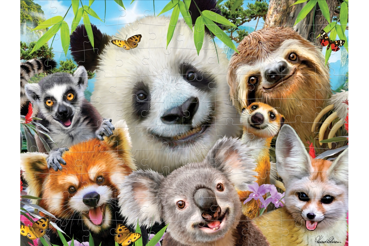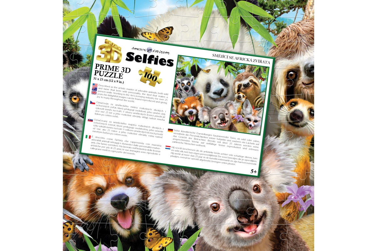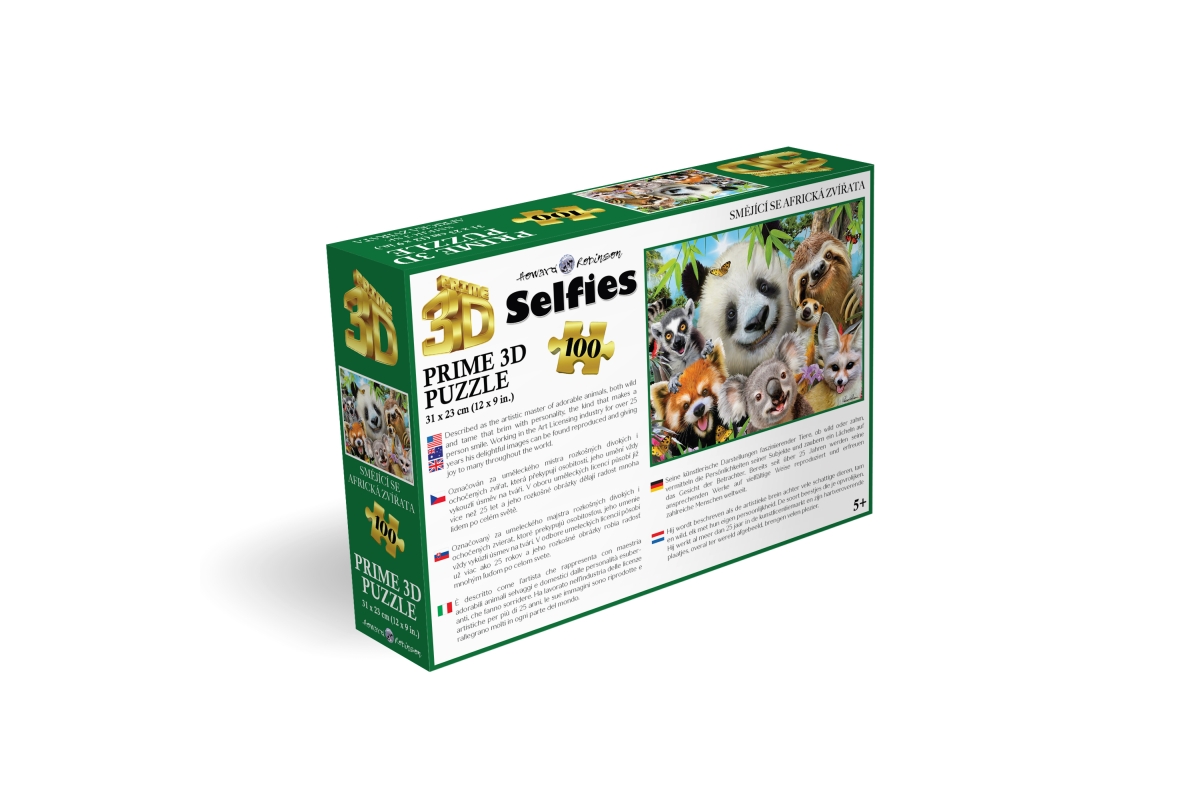 3D puzzle s motivem smějících se afrických zvířat. Balení obsahuje 100 dílků. Rozměry balení 23x15x5 cm. Rozměry složeného obrázku 31x23 cm. Věk 5+..