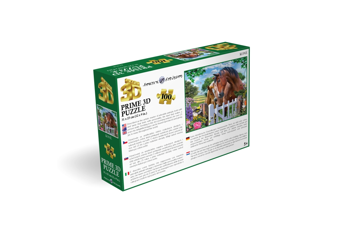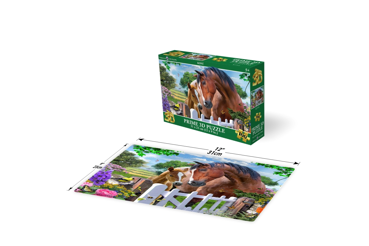 3D puzzle s motivem koní. Balení obsahuje 100 dílků. Rozměry balení 23x15x5 cm. Rozměry složeného obrázku 31x23 cm. Věk 5+..