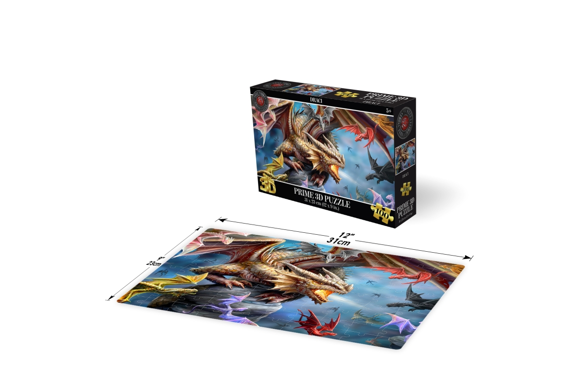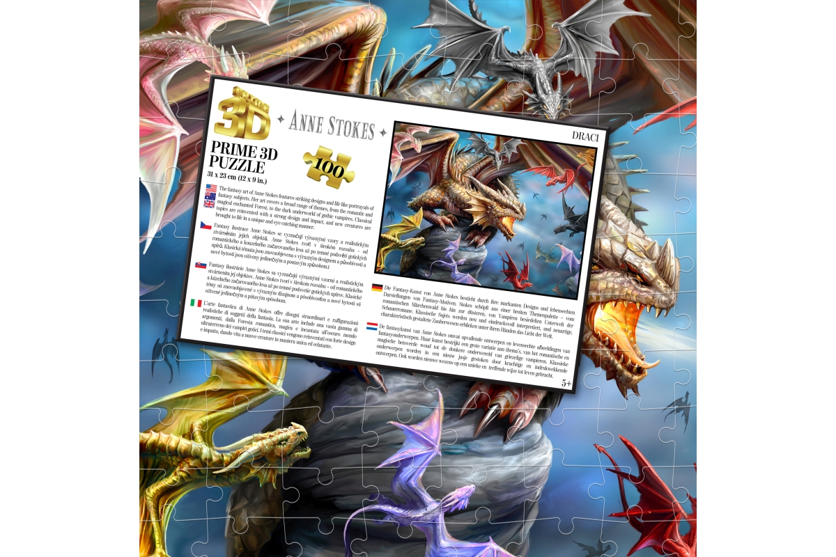 3D puzzle s motivem draků. Balení obsahuje 100 dílků. Rozměry balení 23x15x5 cm. Rozměry složeného obrázku 31x23 cm. Věk 5+..