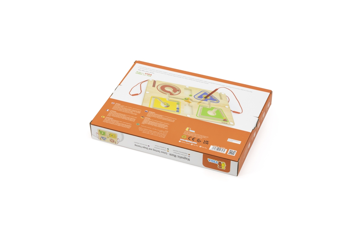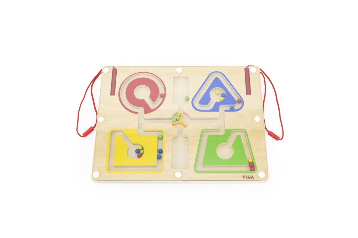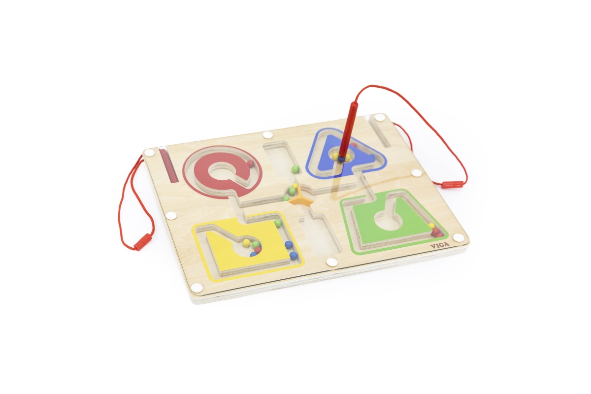 Dřevěná magnetická hra-labyrint. Pomocí magnetického pera se posouvají kuličky v labyrintu. Rozvíjí dětskou zručnost a učí barvy. Rozměry balení cca 3..