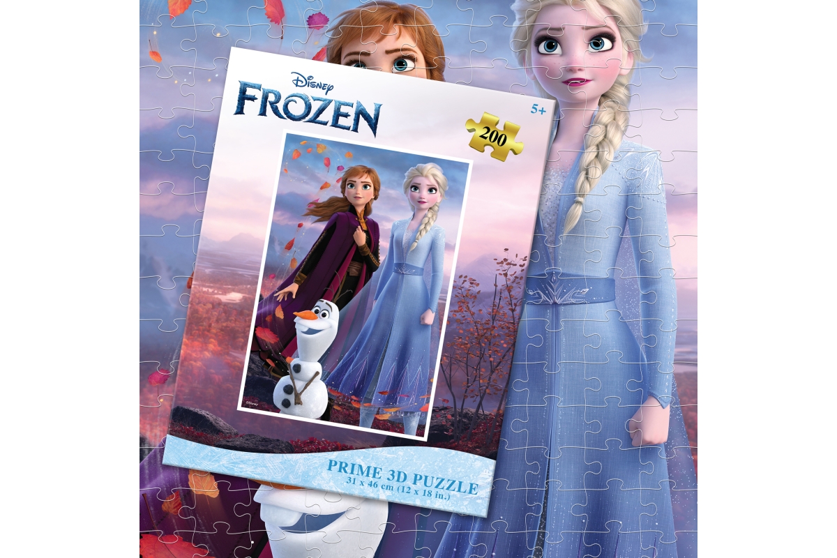3D puzzle s motivem Frozen - Ledového Království. Balení obsahuje 200 dílků. Rozměry balení 23x17,8x5 cm. Rozměry složeného obrázku 46x31 cm. Věk 5+..