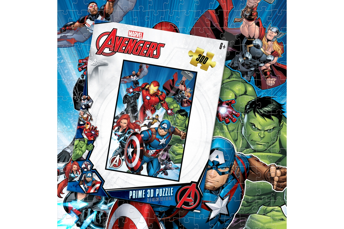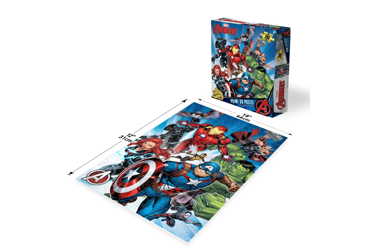 3D puzzle s motivem Avengers. Balení obsahuje 300 dílků. Rozměry balení 23x17,8x5 cm. Rozměry složeného obrázku 46x31 cm. Věk 6+..