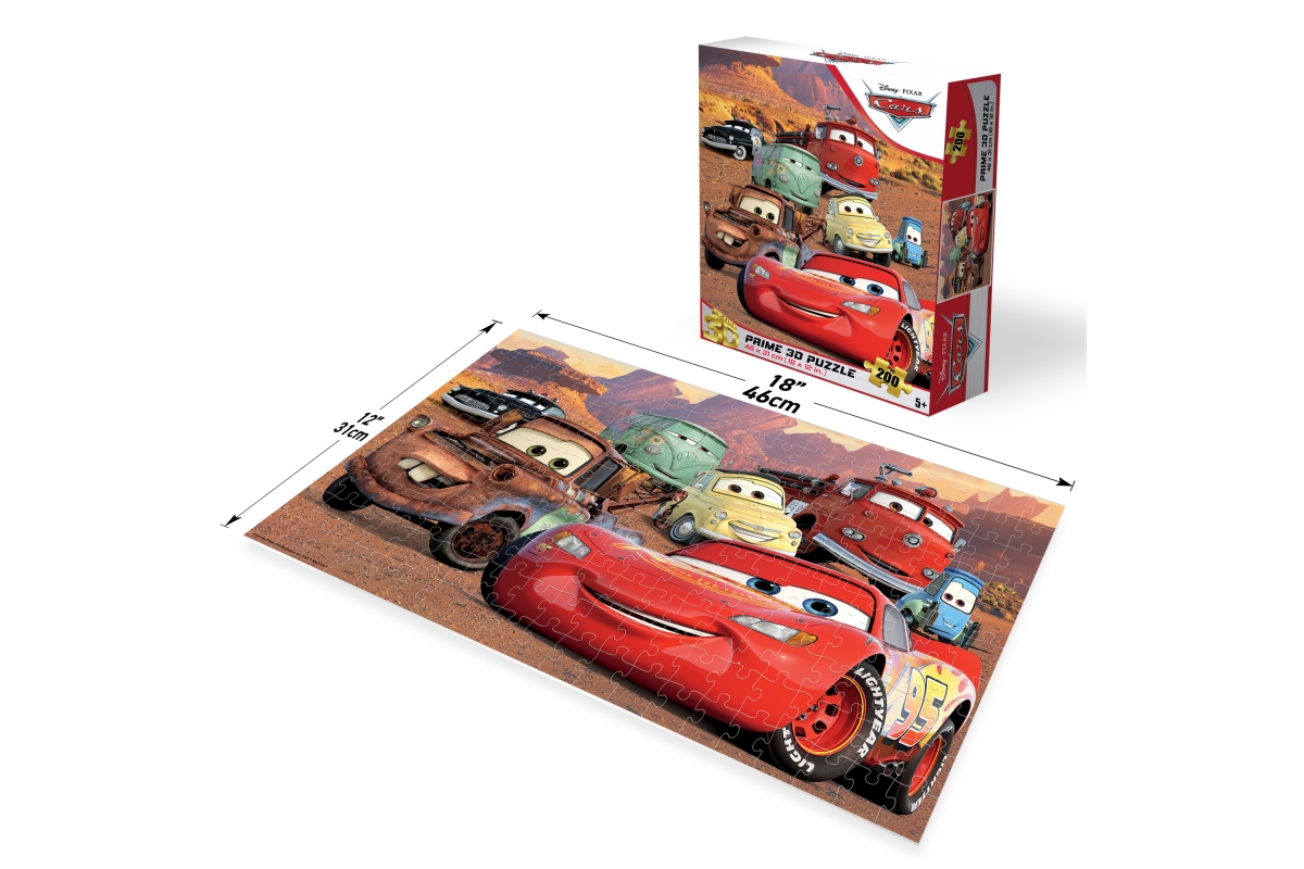 3D puzzle s motivem Cars. Balení obsahuje 200 dílků. Rozměry balení 23x17,8x5 cm. Rozměry složeného obrázku 46x31 cm. Věk 5+..