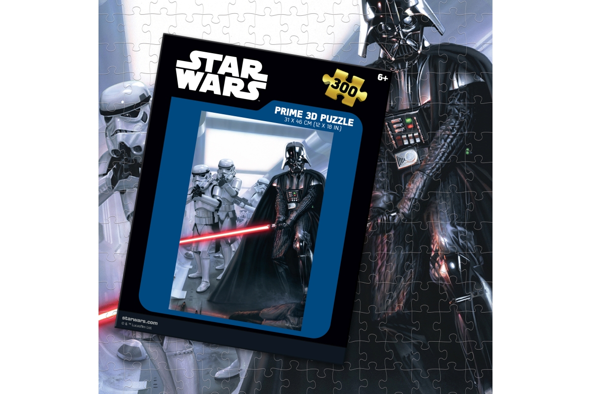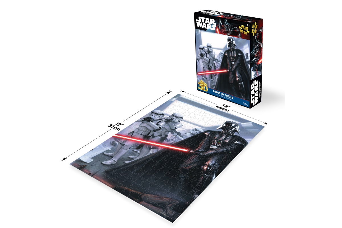 3D puzzle s motivem Star Wars. Balení obsahuje 300 dílků. Rozměry balení 23x17,8x5 cm. Rozměry složeného obrázku 46x31 cm. Věk 6+..