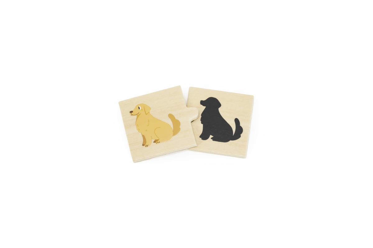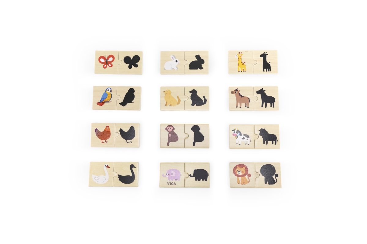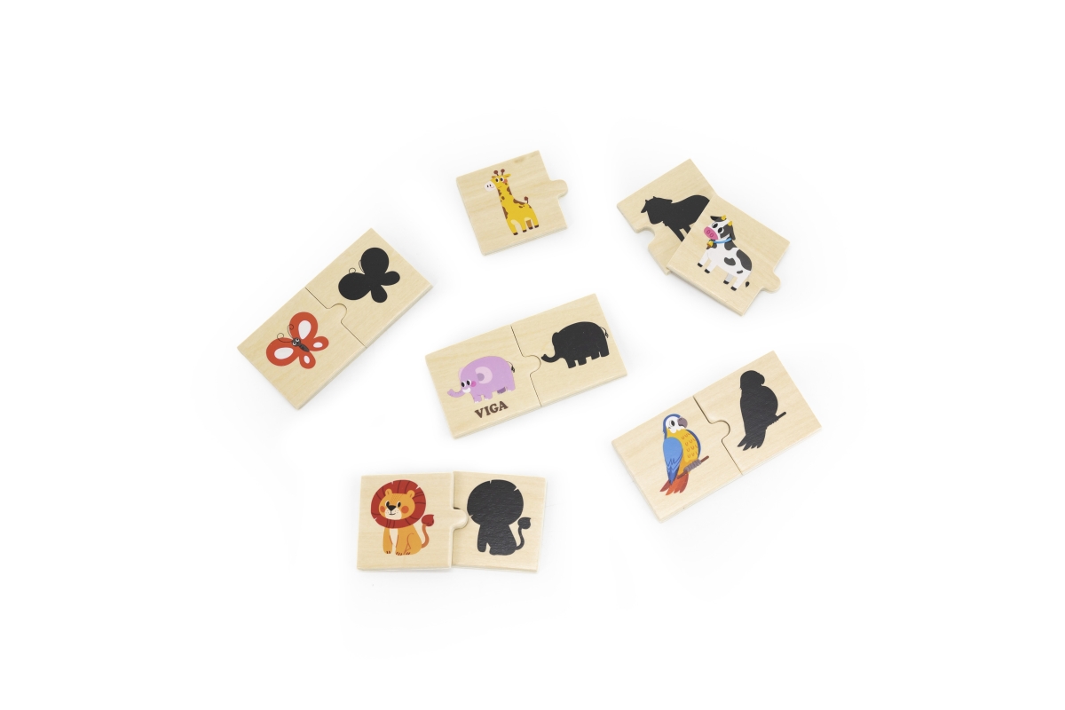 Dřevěné pexeso. Cílem hry je najít obrázek zvířátka a k tomu stín. Rozměry balení cca 20,5x19x4,5 cm. Věk 18m+..