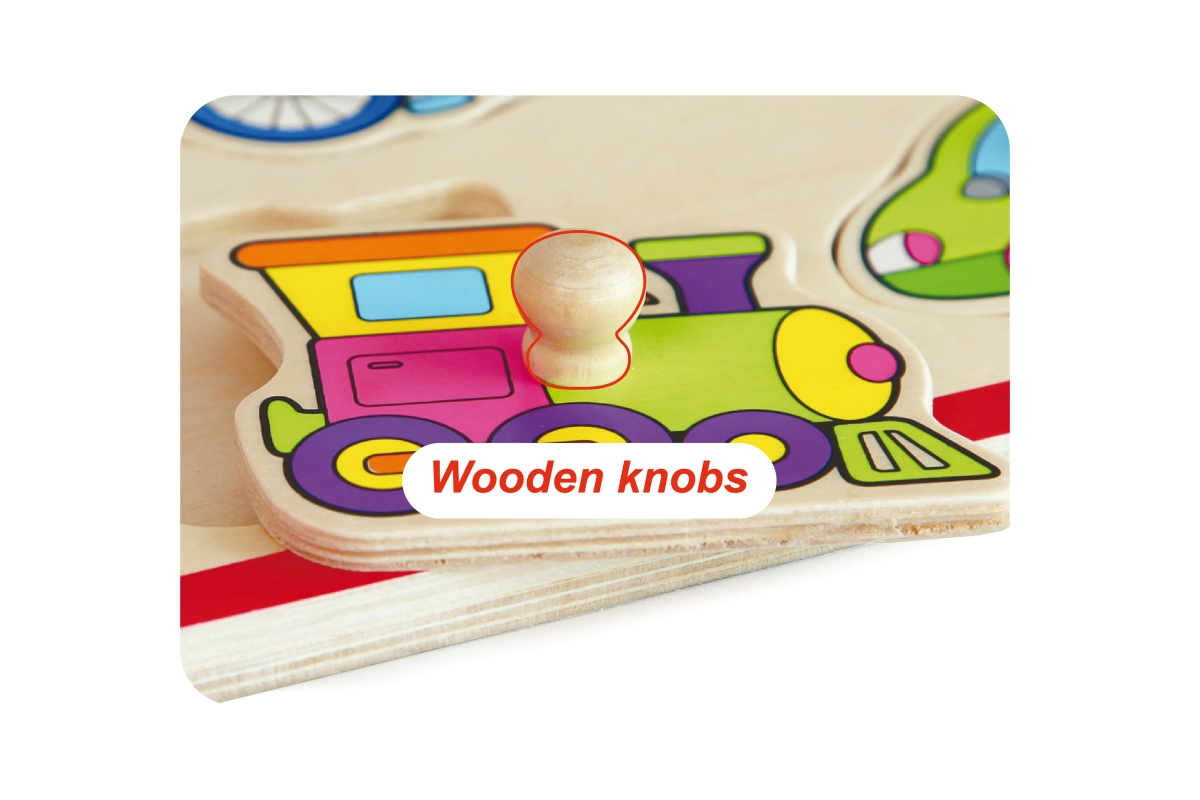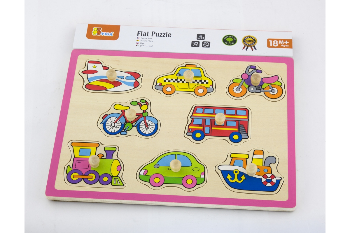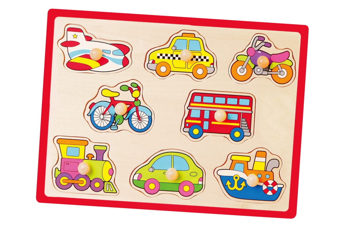 Dřevěná vkládačka s dopravními prostředky . Rozměry dřevěné desky cca 30 x 22,5 cm. Rozměry balení cca 30 x 27 x 1 cm. Věk 18m+..